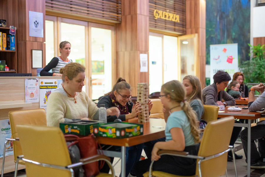 A társasjáték Ünnep ideje alatt a Művelődési Központ szabadulószobája, az Auroom éjszakai játék lehetőségét kínálta játékosainak. A társasjátékvásár a Somi Játék támogatásával valósulhatott meg.