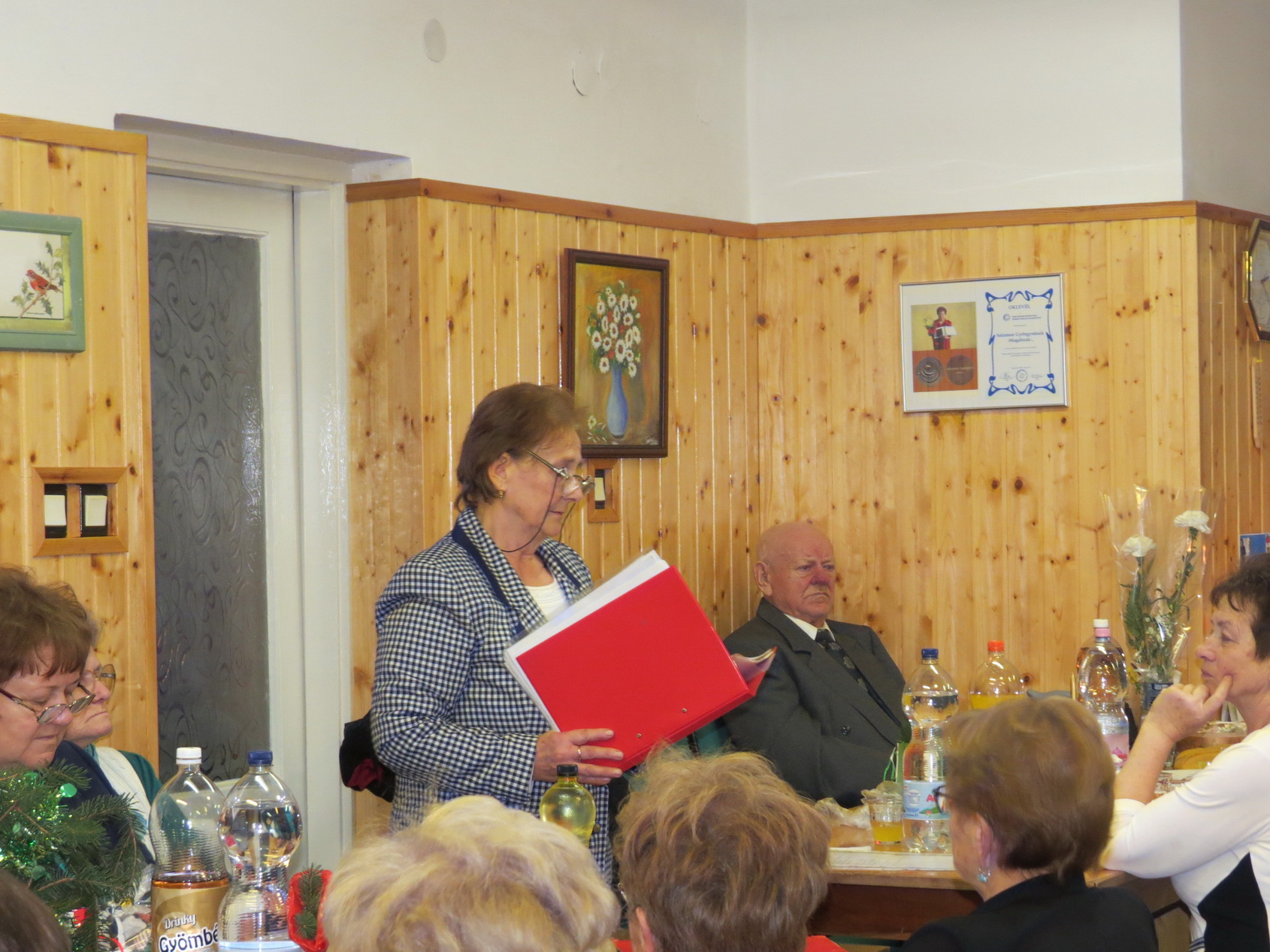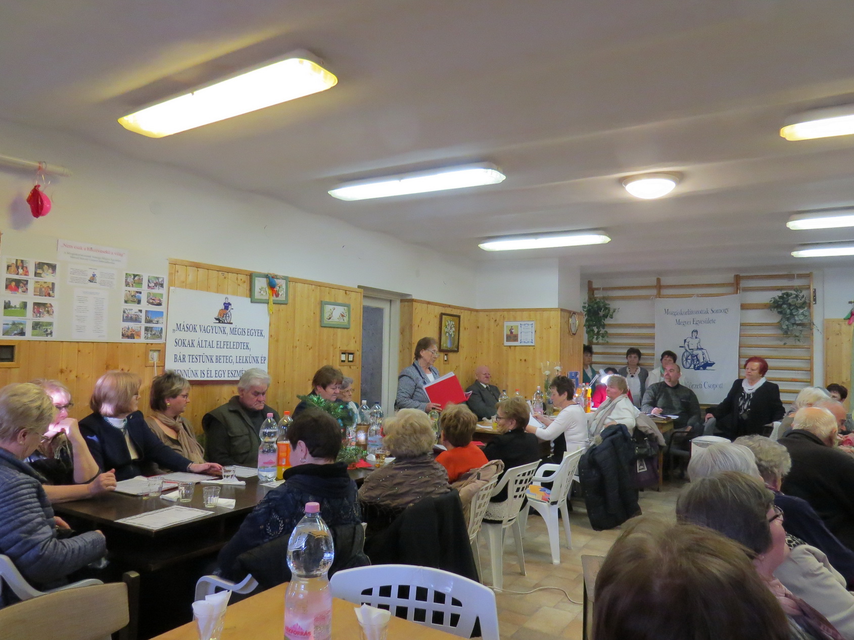 Elsőként Salamon Györgyné, Magdika köszöntötte kedves vendégeinket és a nagy számban megjelent tagságot. Ezt követően a kaposvári vendégeink emelkedtek szólásra, melyben viszont köszöntötték Csoportunkat és további folyamatos támogatásukról biztosították közösségünket, majd részletes tájékoztatást adtak az Egyesületünket aktuálisan érintő és jövőre várható pályázatokról, érdekvédelmi és mozgalmi ügyekről. Központunk mindenkinek egy mézeskalács dísszel és szaloncukorral töltött ajándékcsomaggal kedveskedett, melyet Bajzik Richárd adott át. Málovics Józsefné, Klárika szintén ajándékkal lepte meg a tagságot, melyet pár kedves szó kíséretében személyesen adott át a megjelenteknek.
