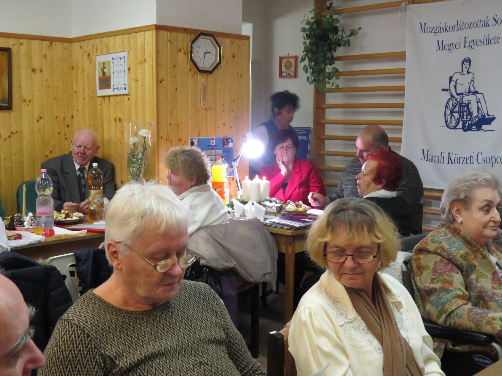 A Mozgáskorlátozottak Somogy Megyei Egyesület Marcali Körzeti Csoportja december 17-én tartotta Adventi rendezvényét és egyben a 2019-es év utolsó klubnapját a megújult Civilek házába. Ünnepségünket megtisztelte jelenlétével: Egyesületünk központjának munkatársai közül Sárdi Ágota és Bajzik Richárd, továbbá együtt ünnepelt a tagsággal Málovics Józsefné az „Egerszegi Alapítvány” elnöke.