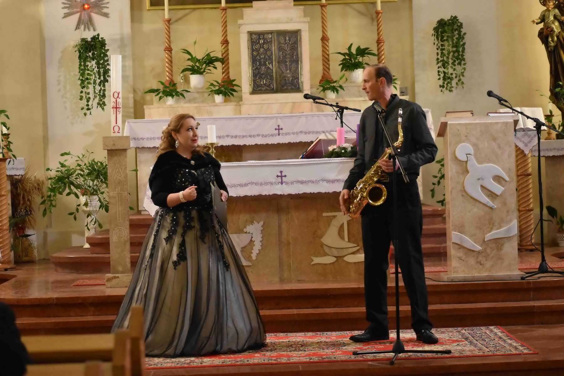 Budai Róbert szaxofonos és Palotás Ágnes énekművész  karácsonyi dalokkal tették meghitté az adventi időszakot.