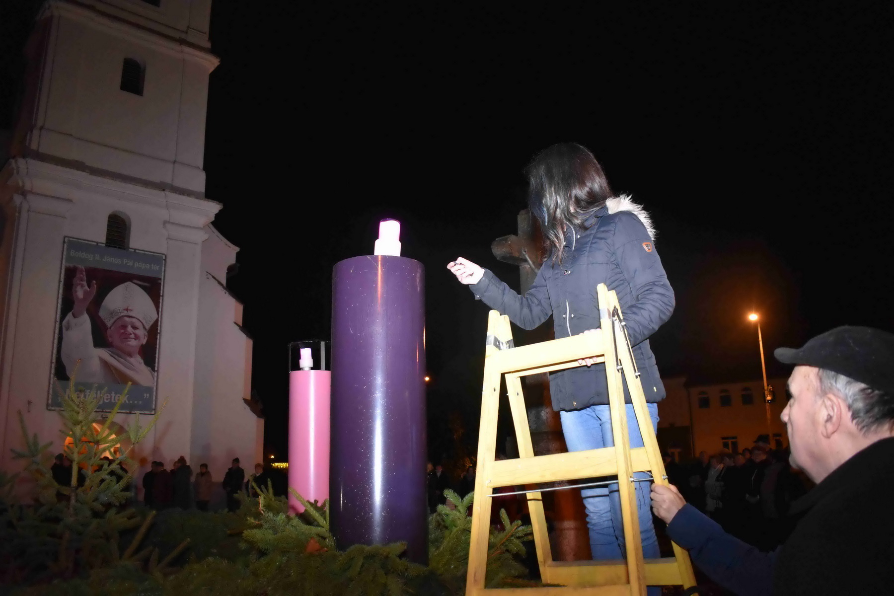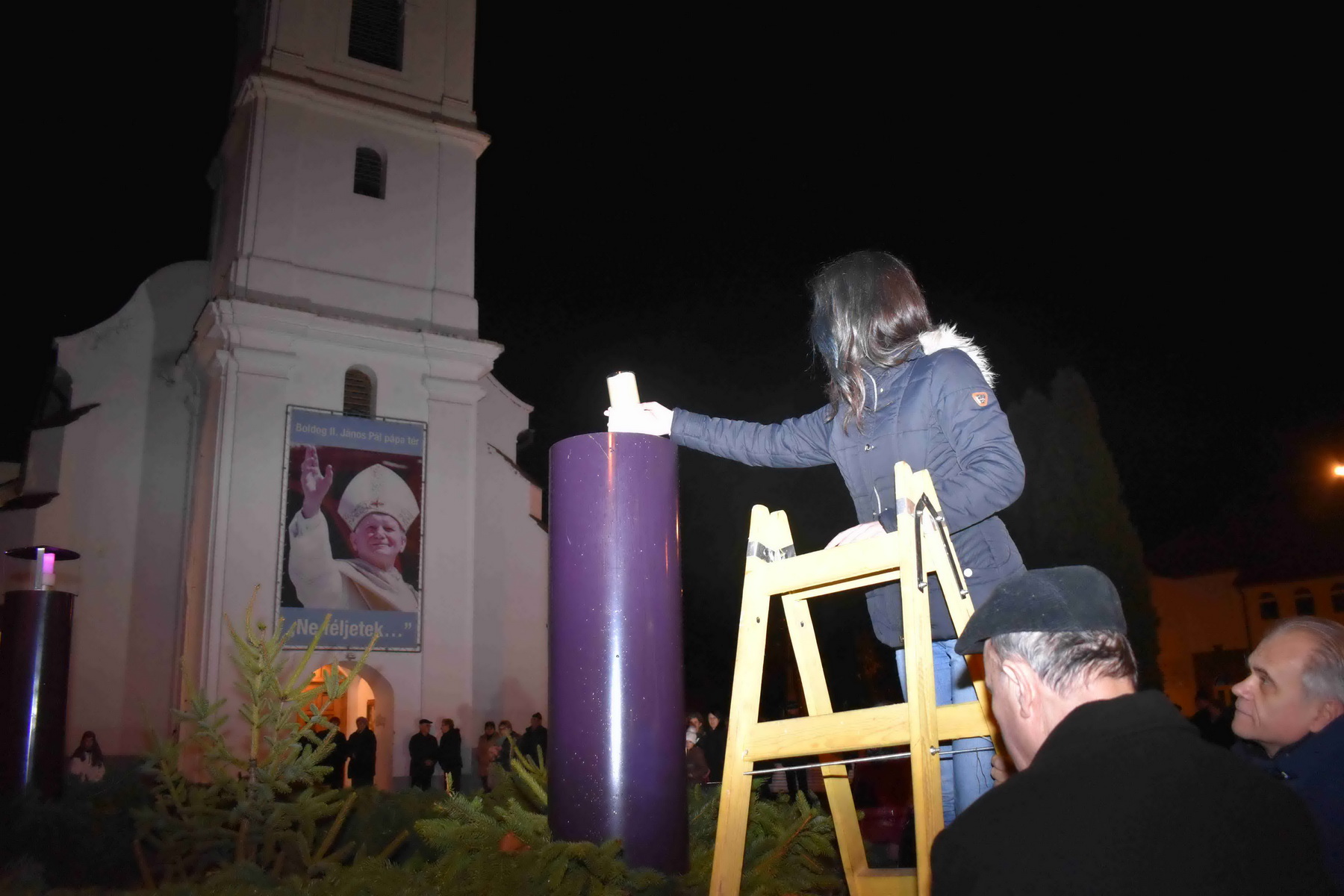 Szombat este meggyújtották a negyedik gyertyát is a Boldog II. János Pál pápa téren felállított adventi koszorún. Ünnepi műsort adtak a marcali hittanosok.