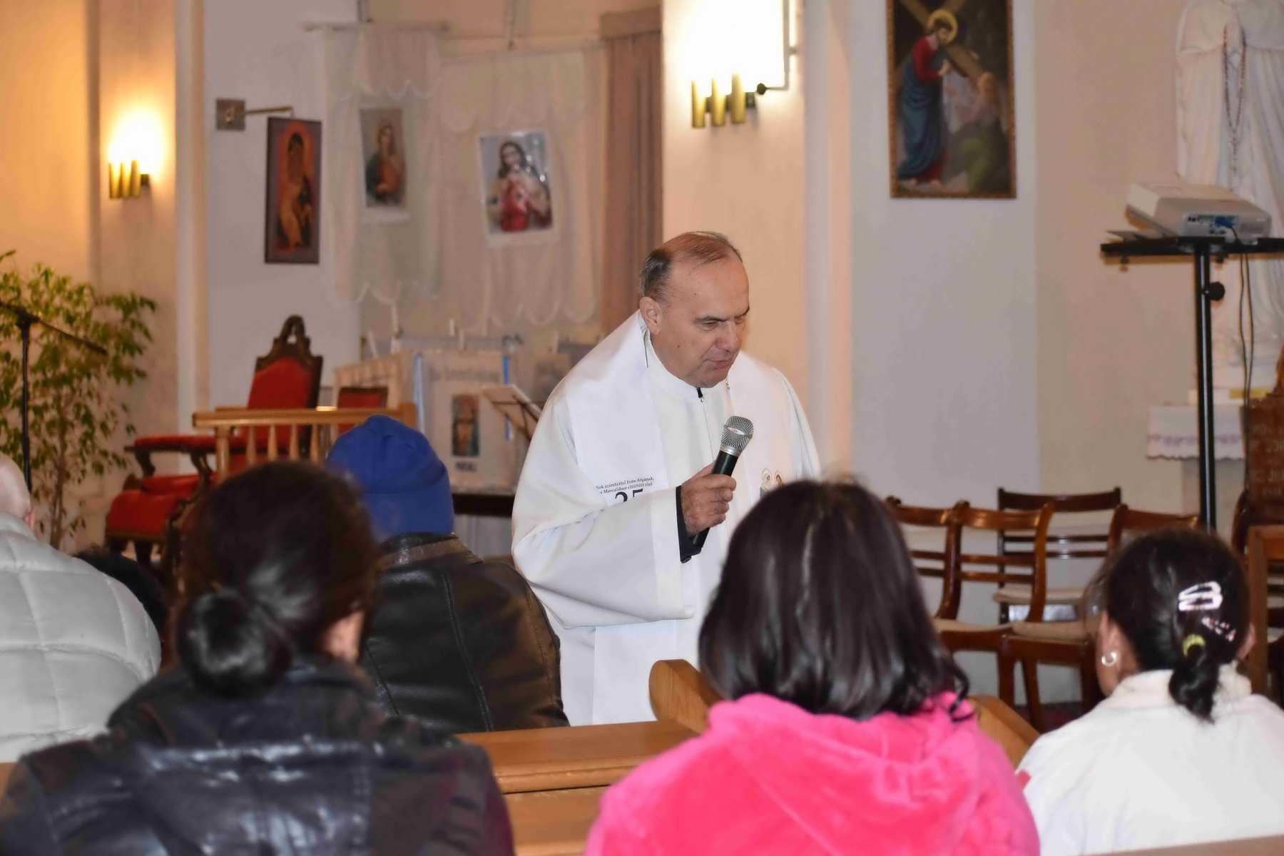 A meghívottakat Kiss Iván c. prépost, esperes-plébános fogadta, aki egy közös imádság és ének elhangzása után beszélt nekik Karácsony ünnepéről, majd szentképeket adott a jelenlévőknek. Ezután Sávoly Andrea, a Karitász Csoport vezetője és Szabó Gyula, a GAMESZ képviseletében köszöntötte a rászorulókat és kívánt mindenkinek áldott ünnepeket. Majd pedig az önkéntes segítők közreműködésével kiosztották az adományokat, melyet a katolikus hívek adtak össze, zömében az Erzsébet-napi gyűjtés során.