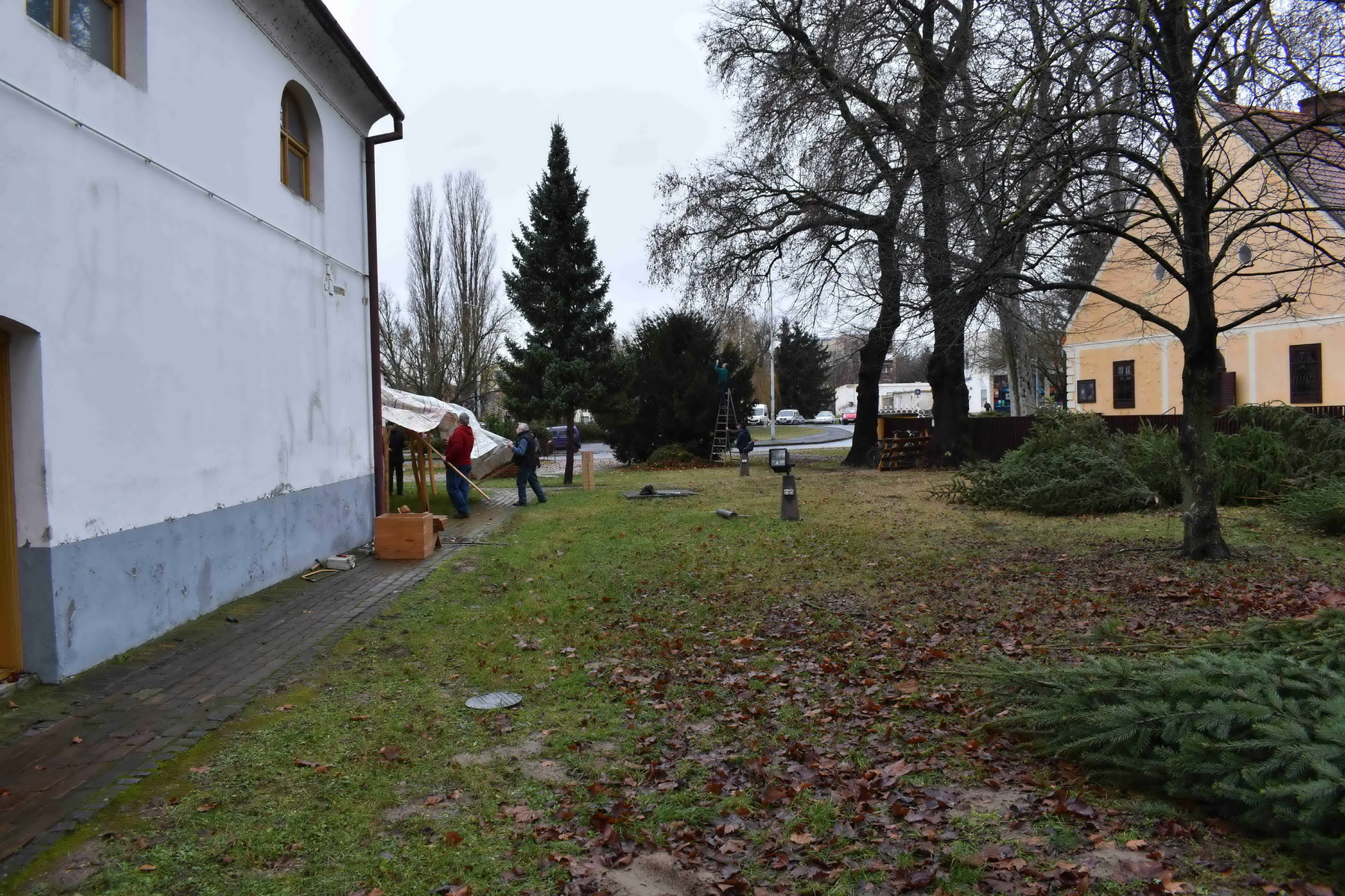 Ezalatt a templomban is helyükre kerültek a fenyőfák és a kültéri díszkivilágítás is elkészült. Az idei esztendőben a jól összeszokott csapat mellett újabb segítők érkeztek, köztük fiatal gyermekek is. A templomi díszítést az imaköri tagok végezték.