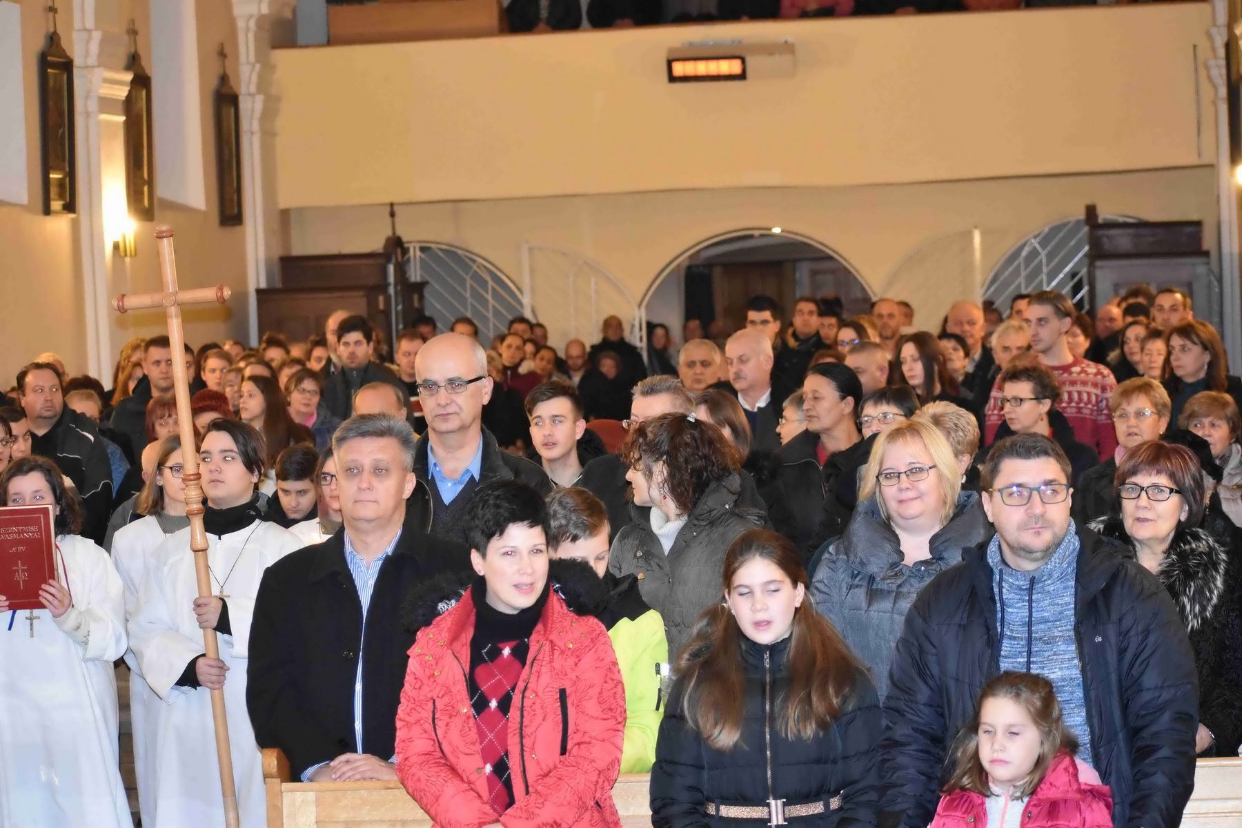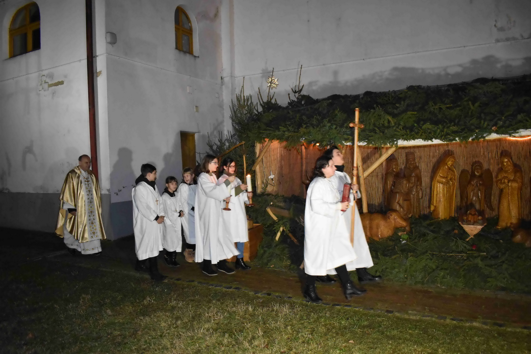 Eztán vette kezdetét az éjféli szentmise, melyet Kiss Iván c. prépost, esperes-plébános celebrált, aki szentbeszédében kiemelte, hogy Jézus Krisztus születésének napja örömünnep. Ennek az örömnek a befogadására mi az ádventi időben készülünk, míg az egykori pásztorokat váratlanul érte az angyal megjelenése és az örömhír hallatán keltek útra, hogy elsők között keressék fel a világ Megváltóját.