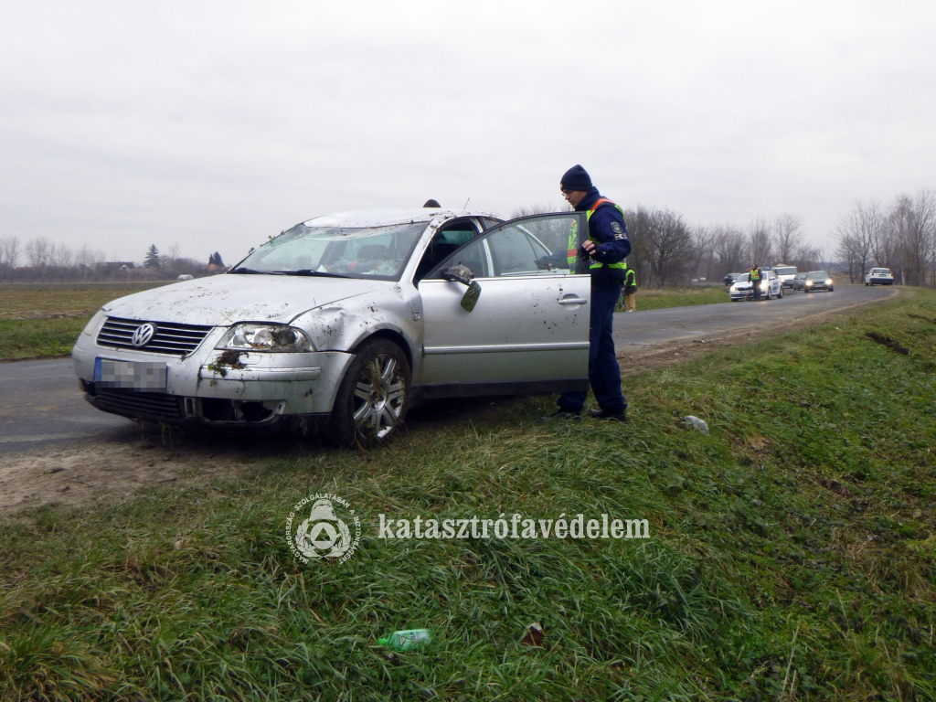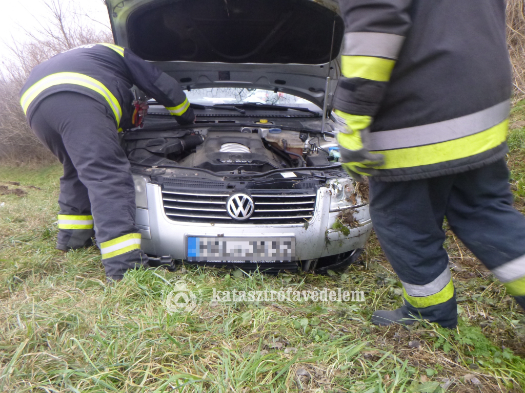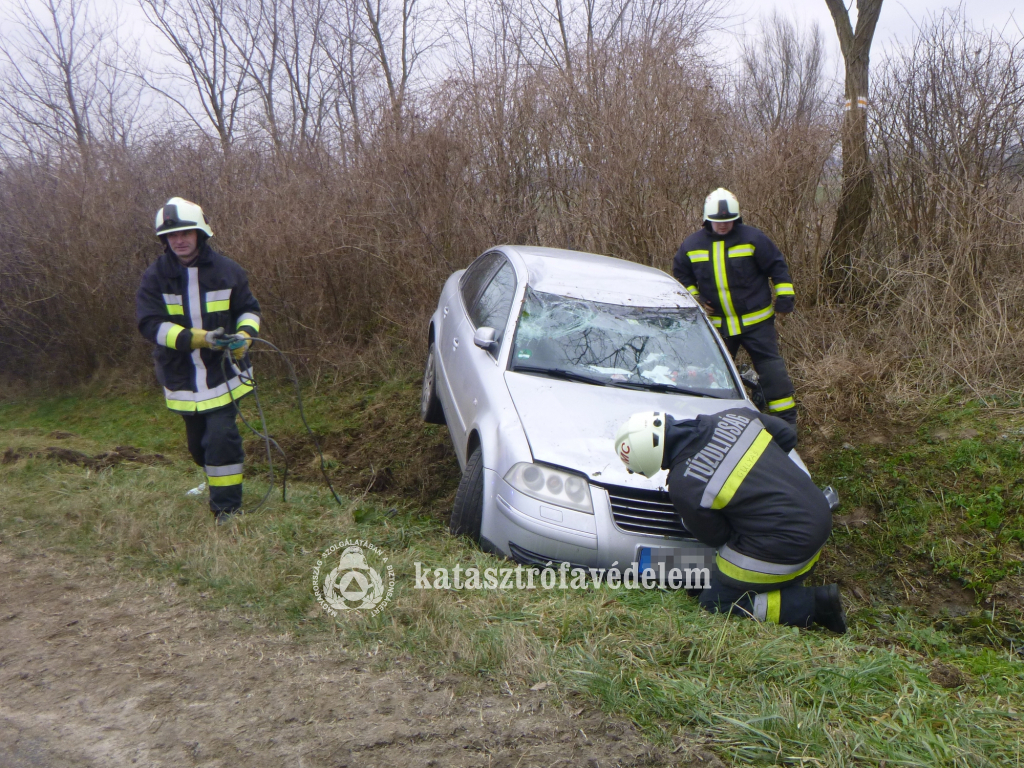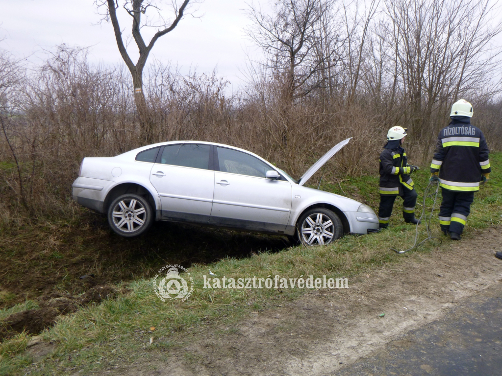 Lesodródott az úttestről és az út menti árokban fejtetőre borult egy személyautó szerdán délelőtt a Somogyfajsz és Pusztakovácsi közötti útszakaszon.