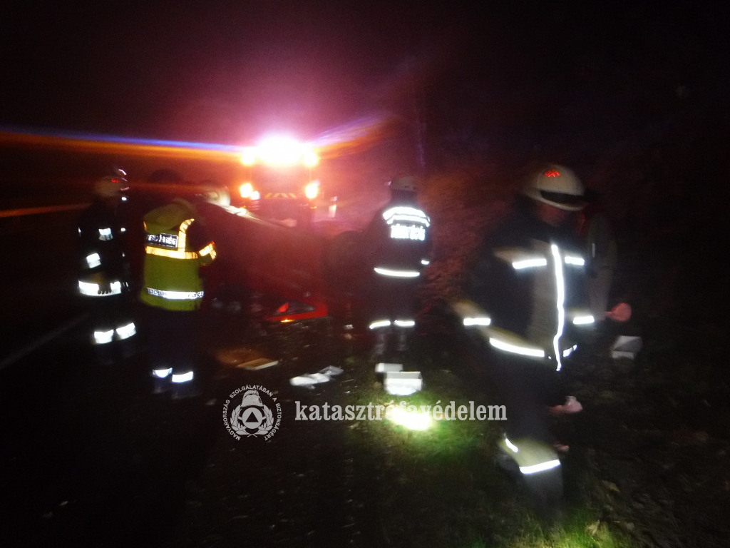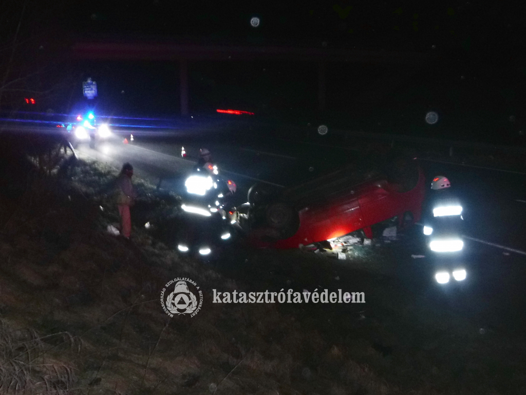 Kedden kora hajnalban az M7-es autópálya Siófok és Zamárdi közötti szakaszán, a Budapest felé vezető oldalon egy személyautó felborult és a leállósávban fejtetőn állt meg.