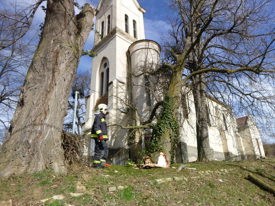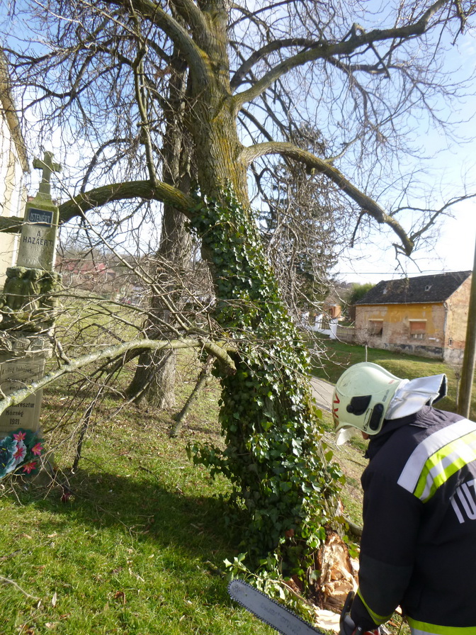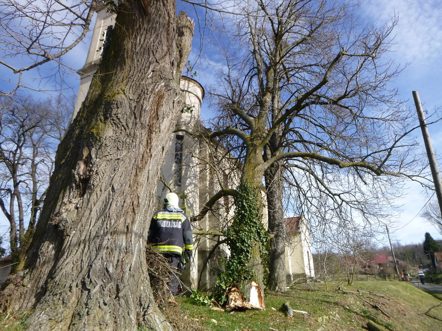 Kaposkeresztúron, a Szabadság téren pénteken délelőtt egy nagyméretű fa körülbelül tizenöt méteres ága letört és rádőlt a szomszédos fára, és a templom épületére. A leszakadt faág veszélyeztette a gyalogos- és járműforgalmat, az templomépületet, valamint egy műemlék keresztet is. A kiérkező kaposvári hivatásos tűzoltók magasból mentőről motorfűrészekkel darabolták le a kisebb ágakat. A beavatkozó egységek ezután csörlővel elhúzták a templom közeléből a fatörzs vastagságú ágat, majd feldarabolták azt.