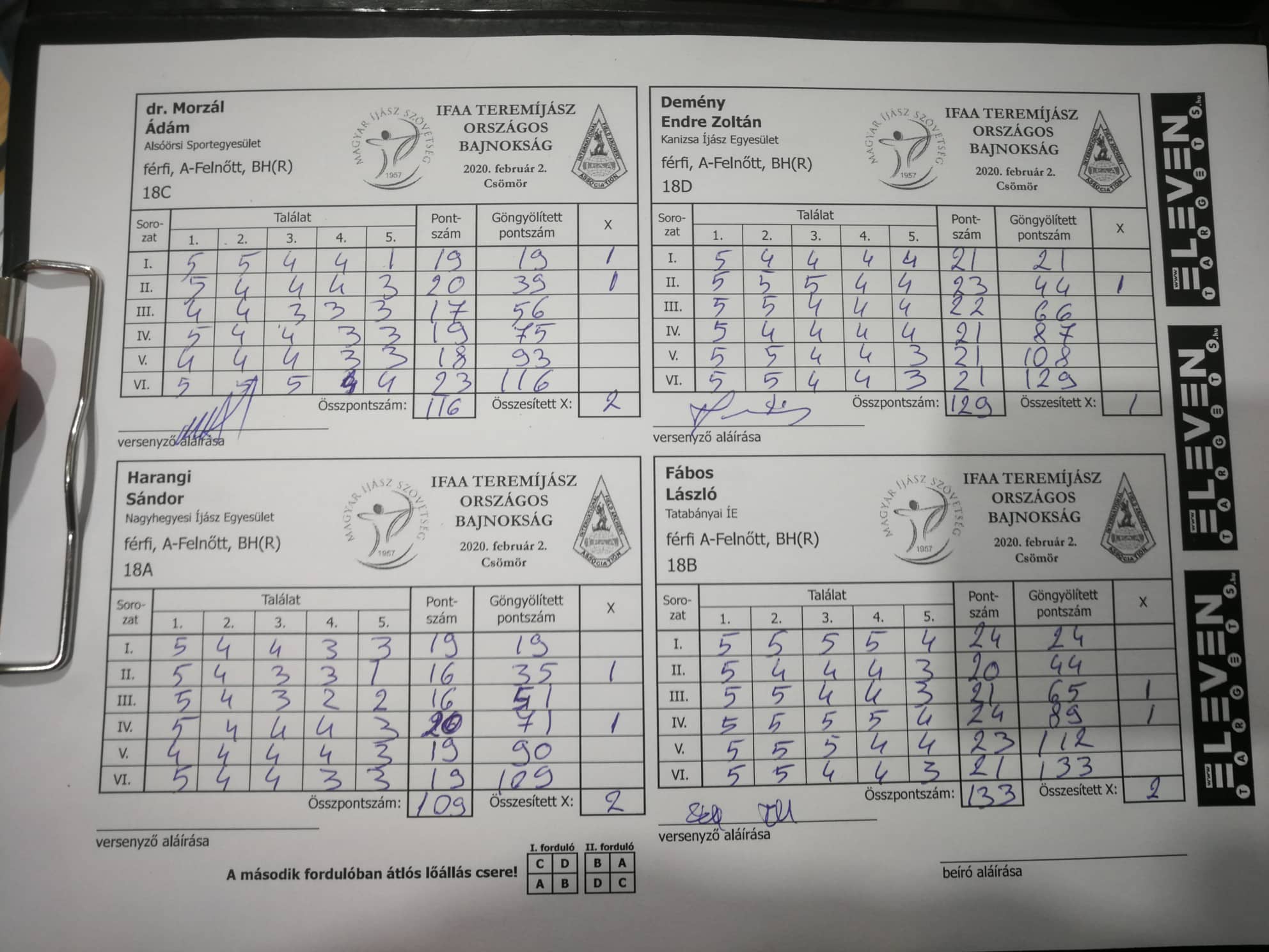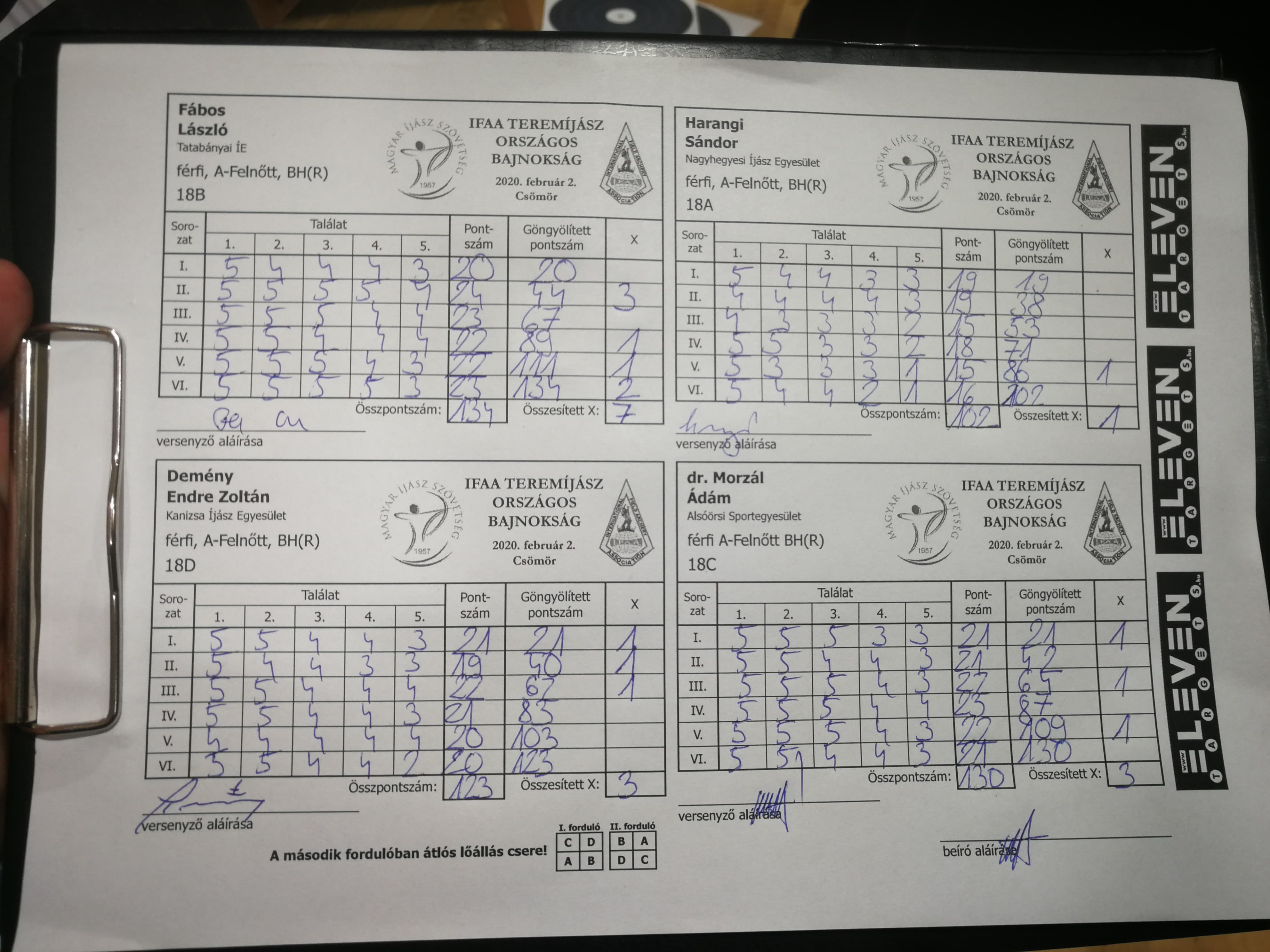 Időrendben az első a február 2-án (vasárnap) Csömörön rendezett IFAA Terem OB volt. Ezen mindketten indultunk. Én a vadászreflex felnőtt – AMBH(R) – Ernő a vadászreflex veterán – VMBH(R) – kategóriában, illetve korosztályban.