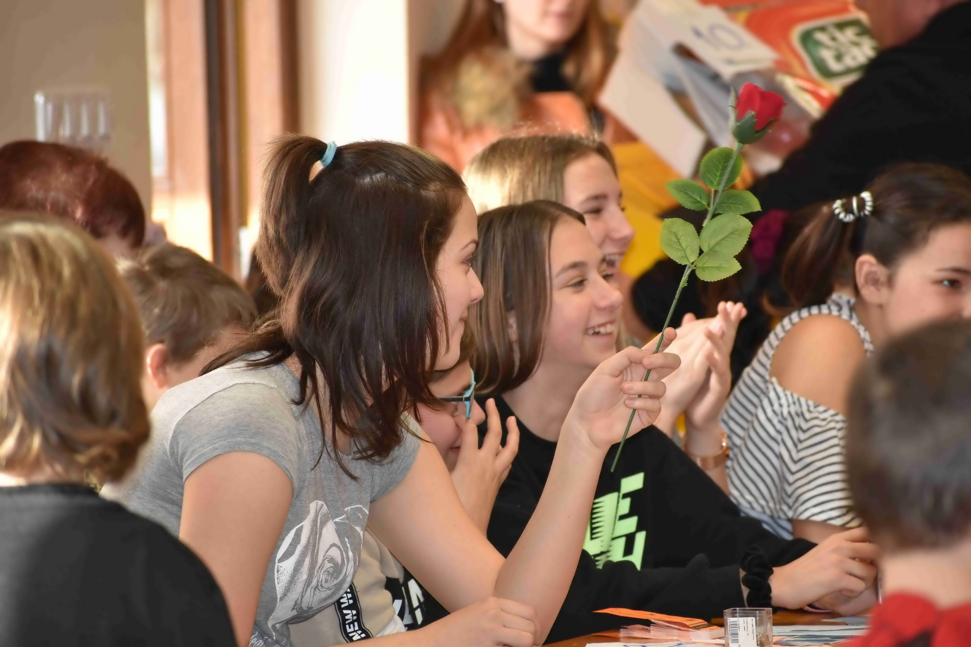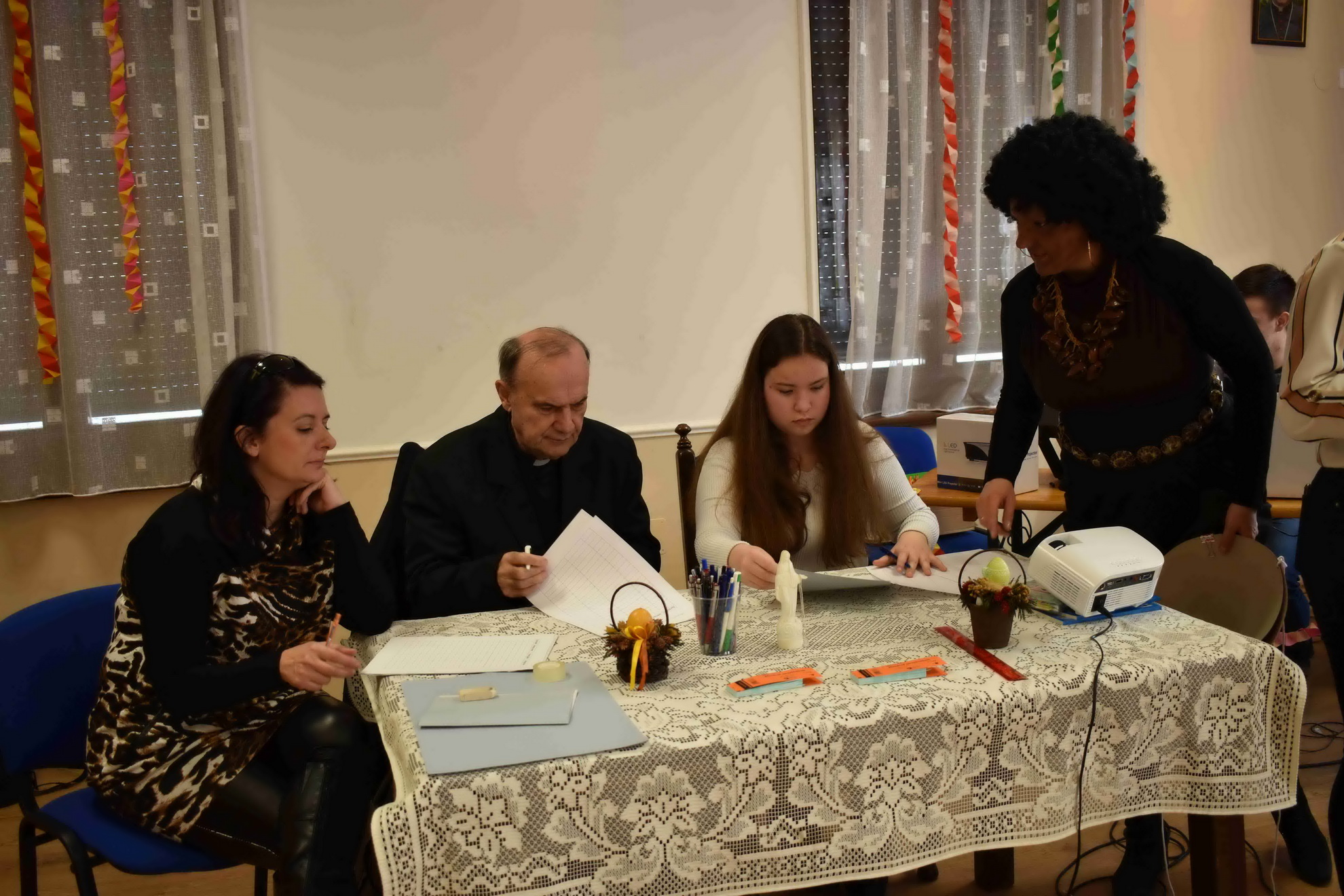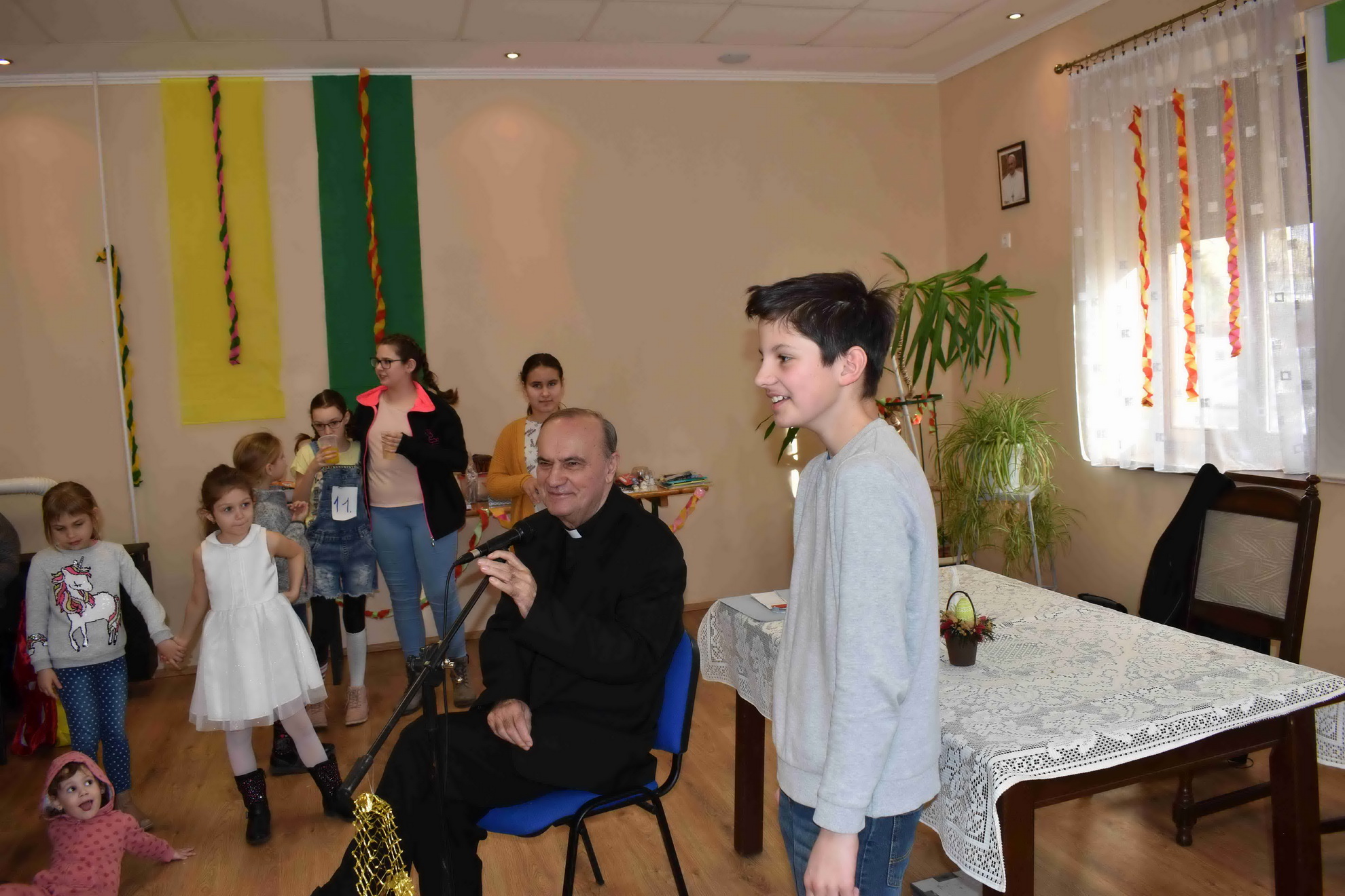 Az eredményhirdetés és a nyeremények átadása után különféle kérdéseket tehettek fel a gyermekek Iván atyának: „Szólj be a papnak” című nyilvános beszélgetés formájában. Majd székfoglalóval,fánkevő-versennyel, zenével, tánccal fokozódott tovább a hangulat. Végül tombolasorsolással zárult a rendezvény, melyen különféle ajándékok, köztük édességek, írószerek, füzetek, játékok, könyvek leltek gazdára.
