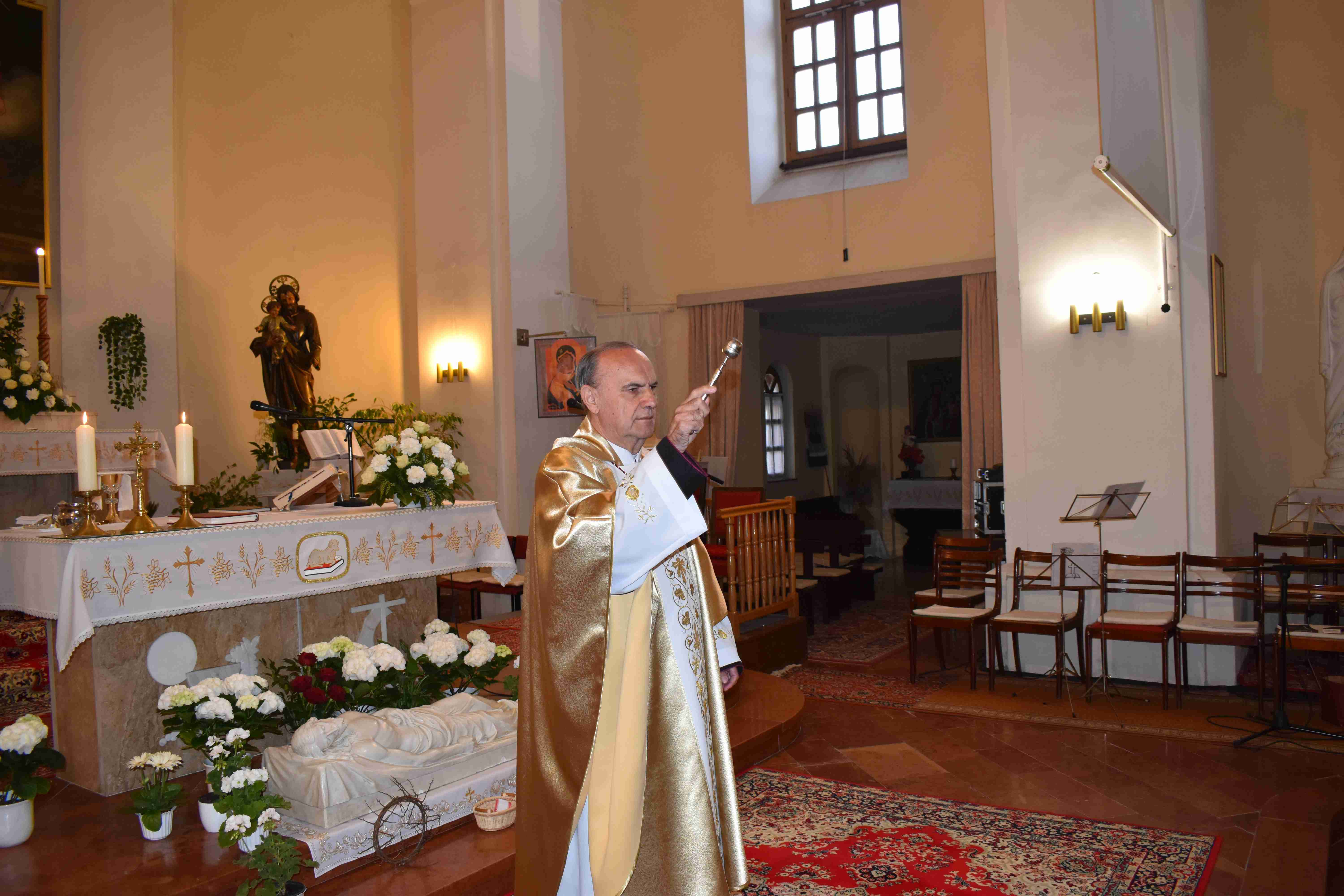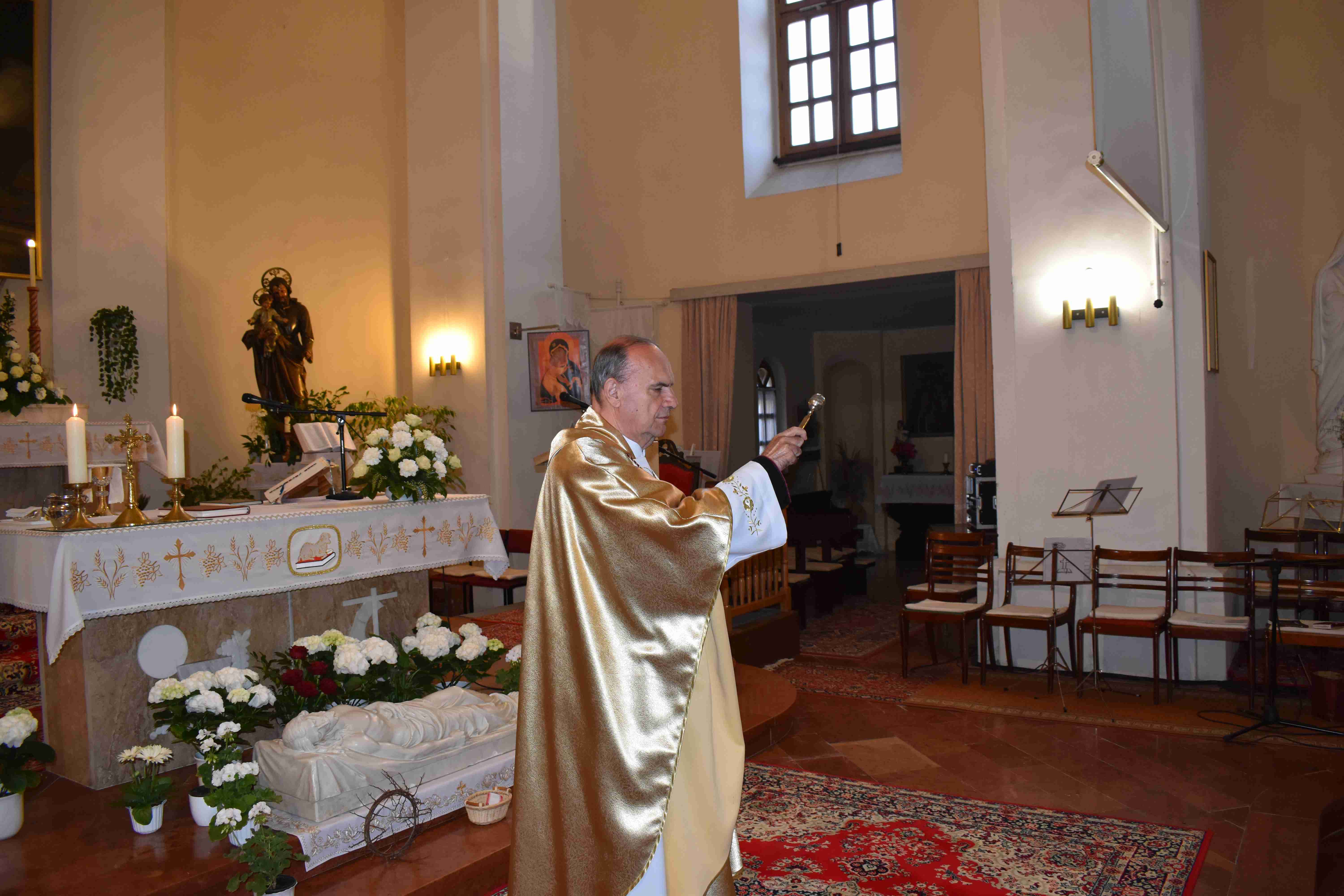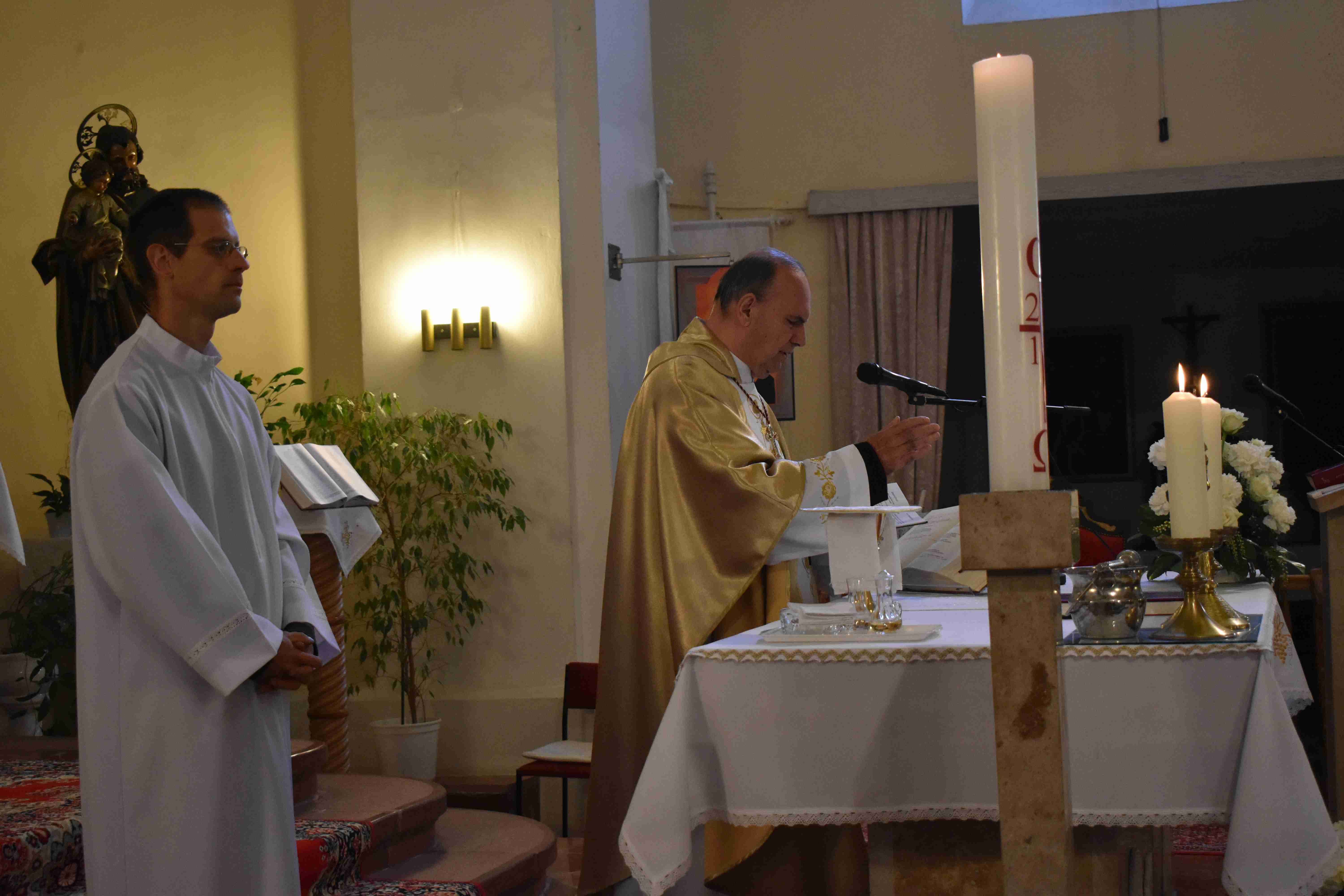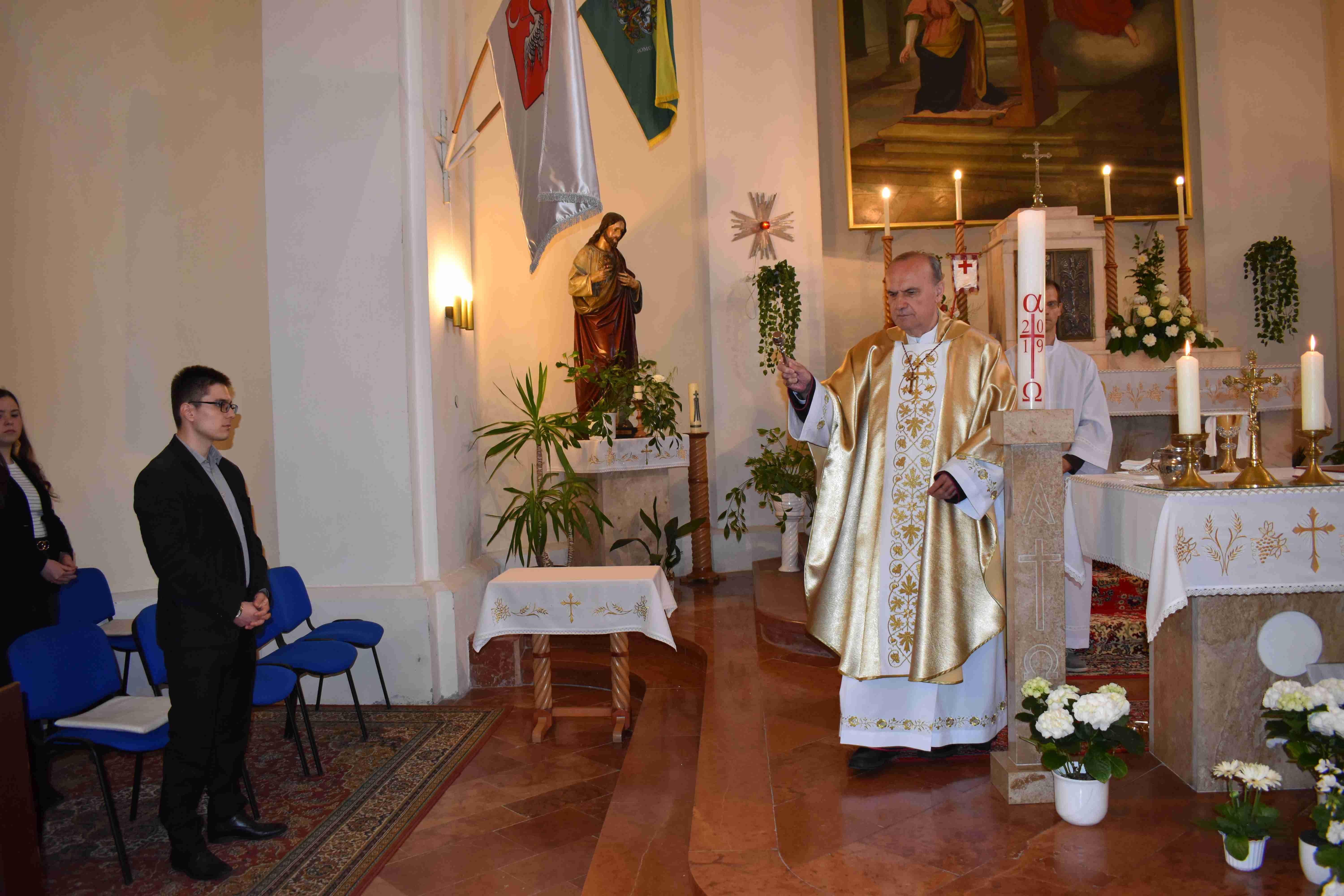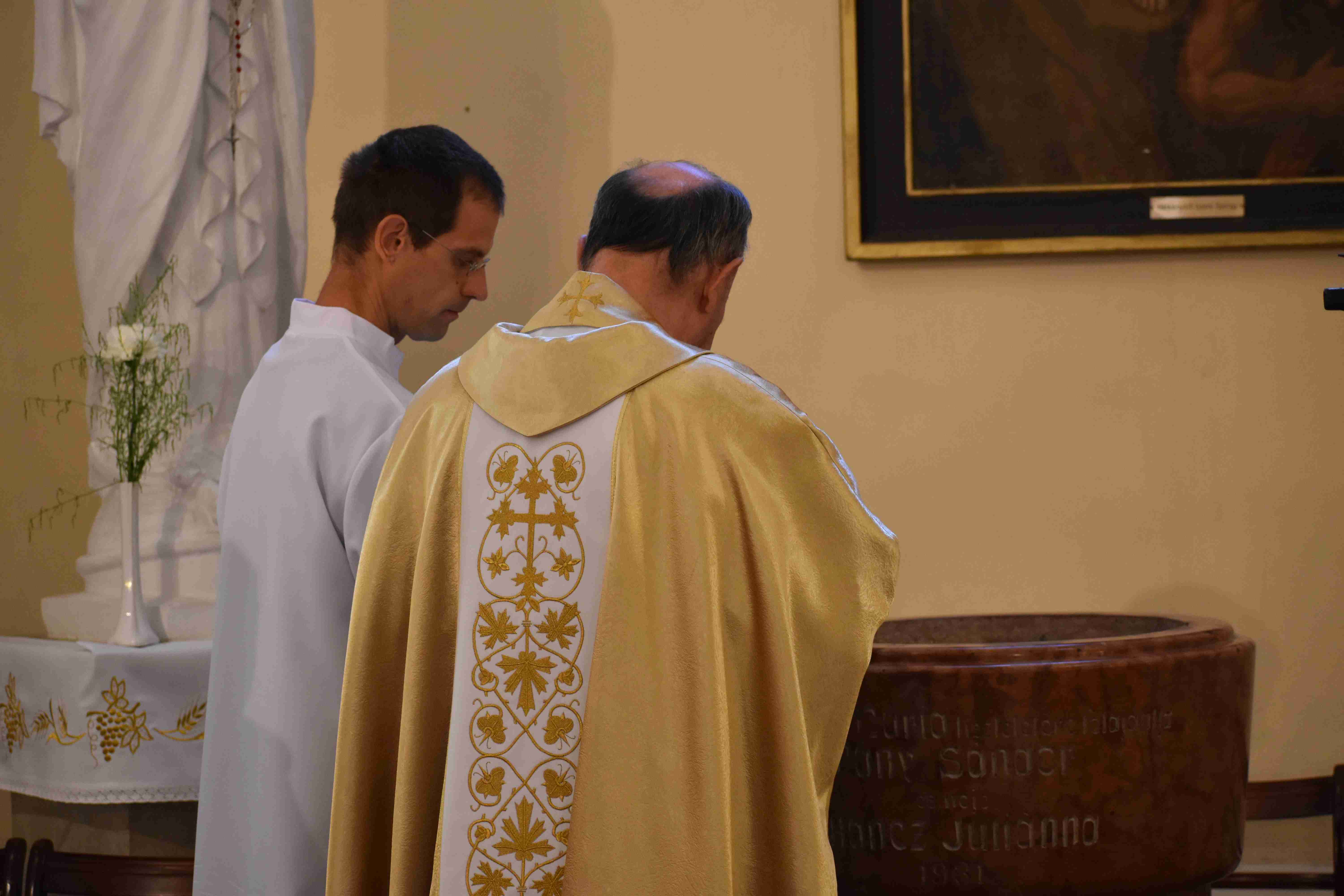 A szentmise alatt elhangzott a keresztségi fogadalom megújítása is, majd Iván atya elvégezte a vízszentelési szertartást is dr. Gyulai Botond akolitus közreműködésével.