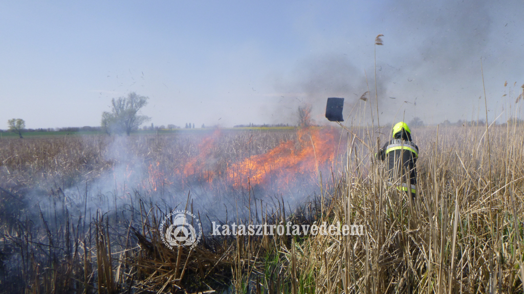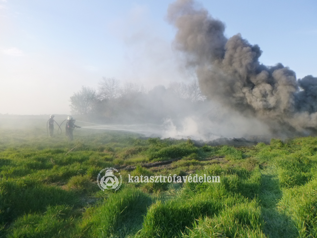A délutáni órákban Somogyszentpálon a marcali hivatásos és somogyszentpáli önkéntes tűzoltók oltották el a mintegy fél hektáron lángoló nádast.