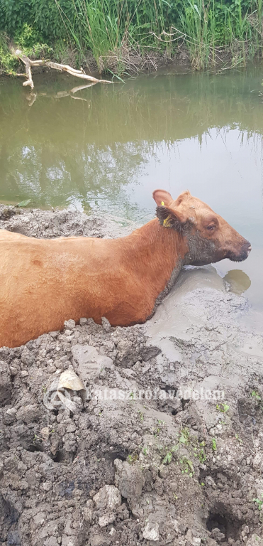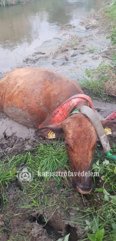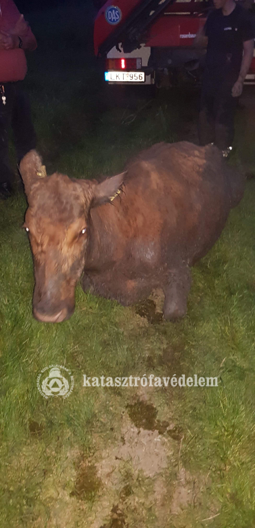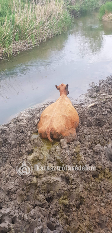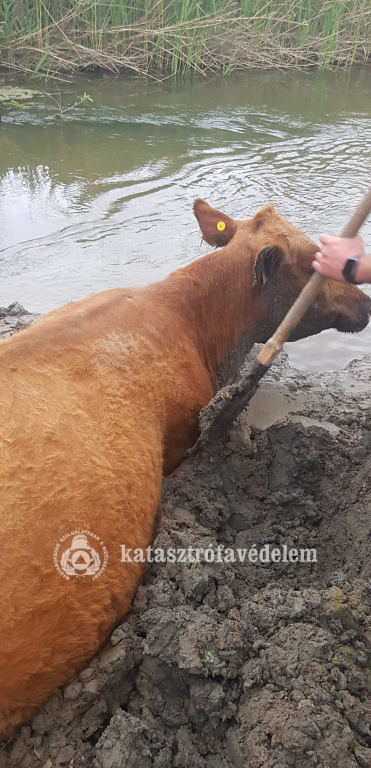 Egy körülbelül négy mázsás, vemhes szarvasmarha az iszapos területen megsüllyedt és önerőből nem tudott kiszabadulni szerda este Kaposhomok külterületén.