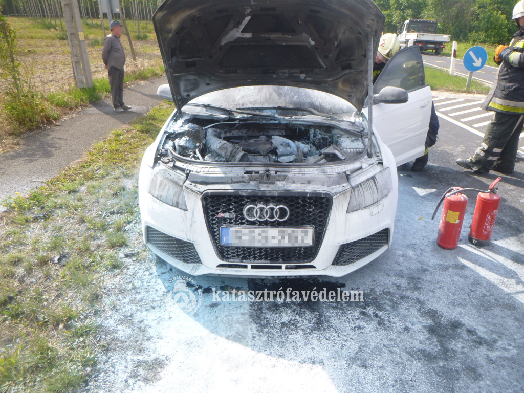 Kigyulladt egy személyautó a 61-es főút Nagybajom és Kiskorpád közötti szakaszán pénteken. Egy nagybajomi önkéntes tűzoltó három porral oltó készülékkel a kaposvári hivatásos egység kiérkezése előtt eloltotta a tüzet.