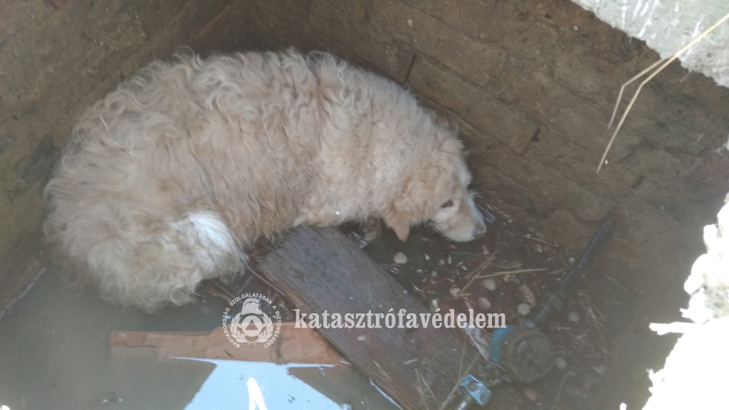 Vízóra aknába esett egy kutya pénteken Marcaliban, a Templom utcában.