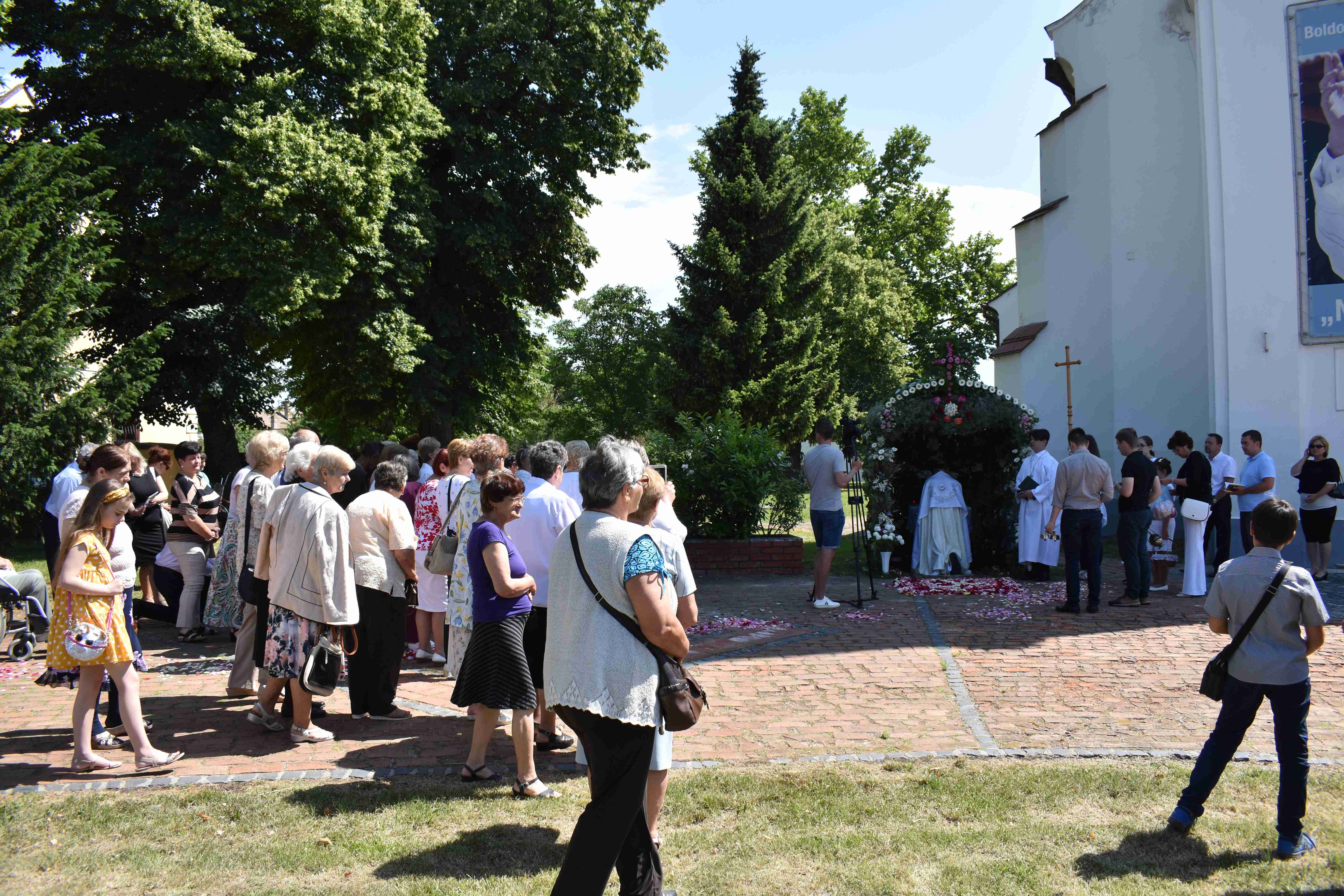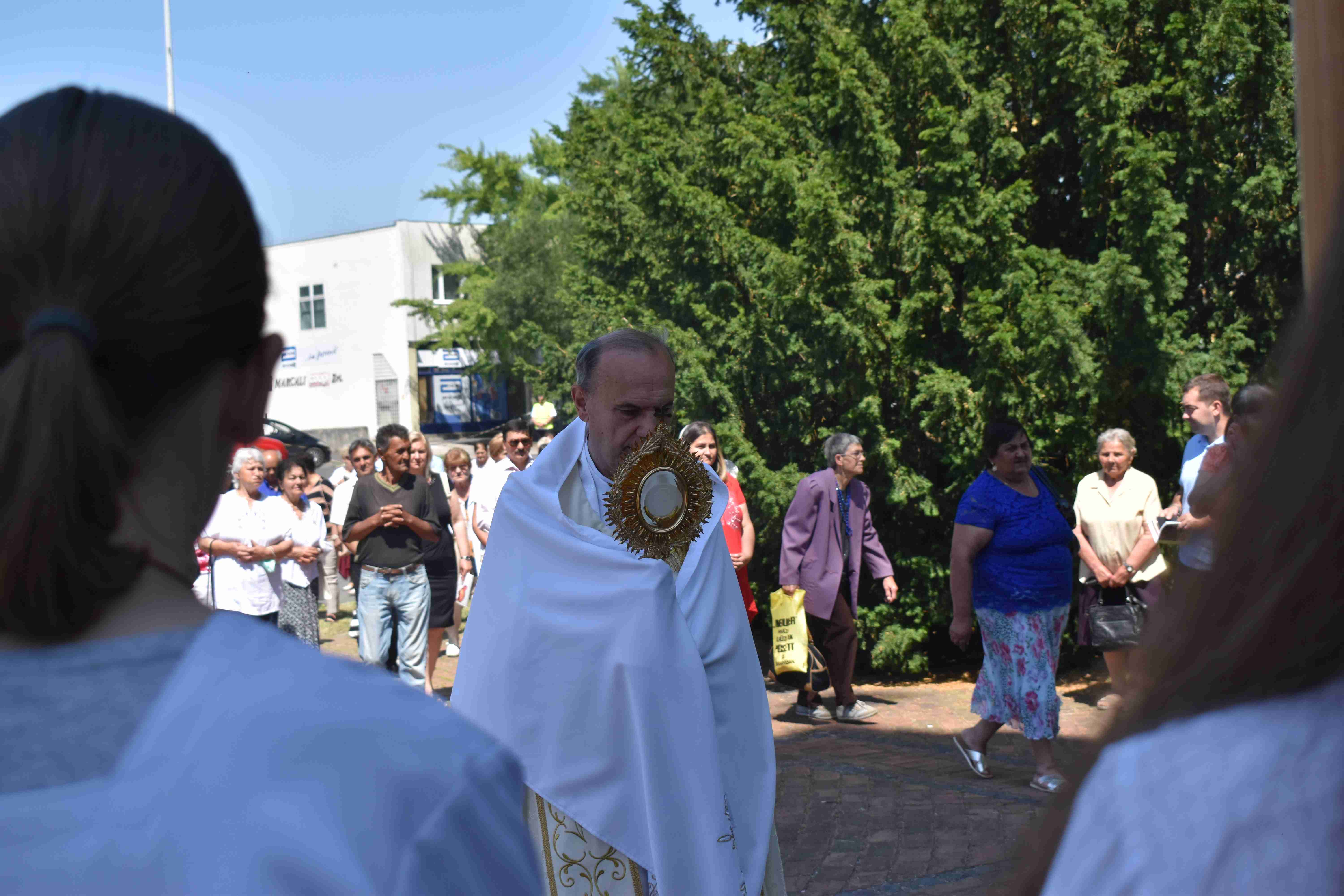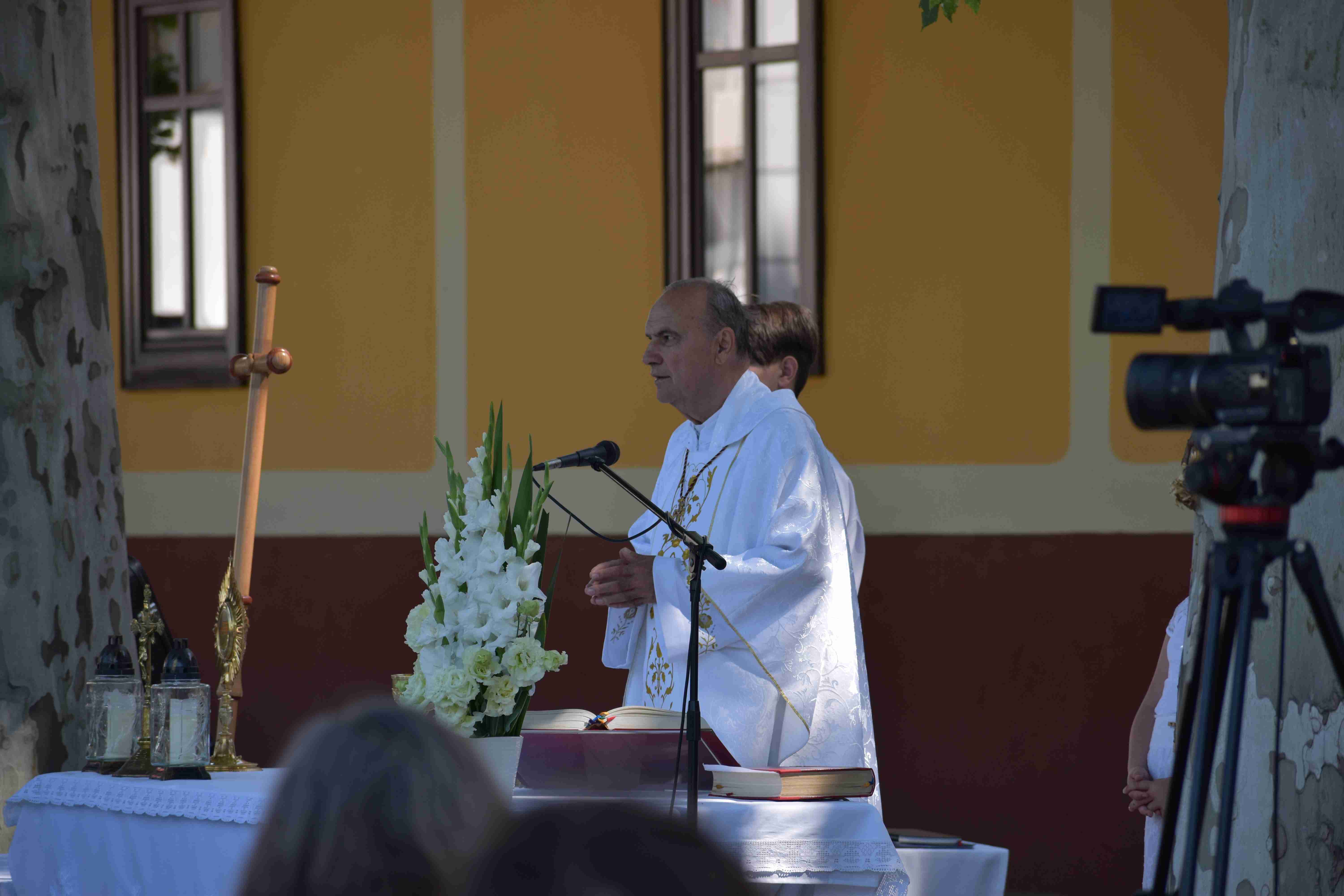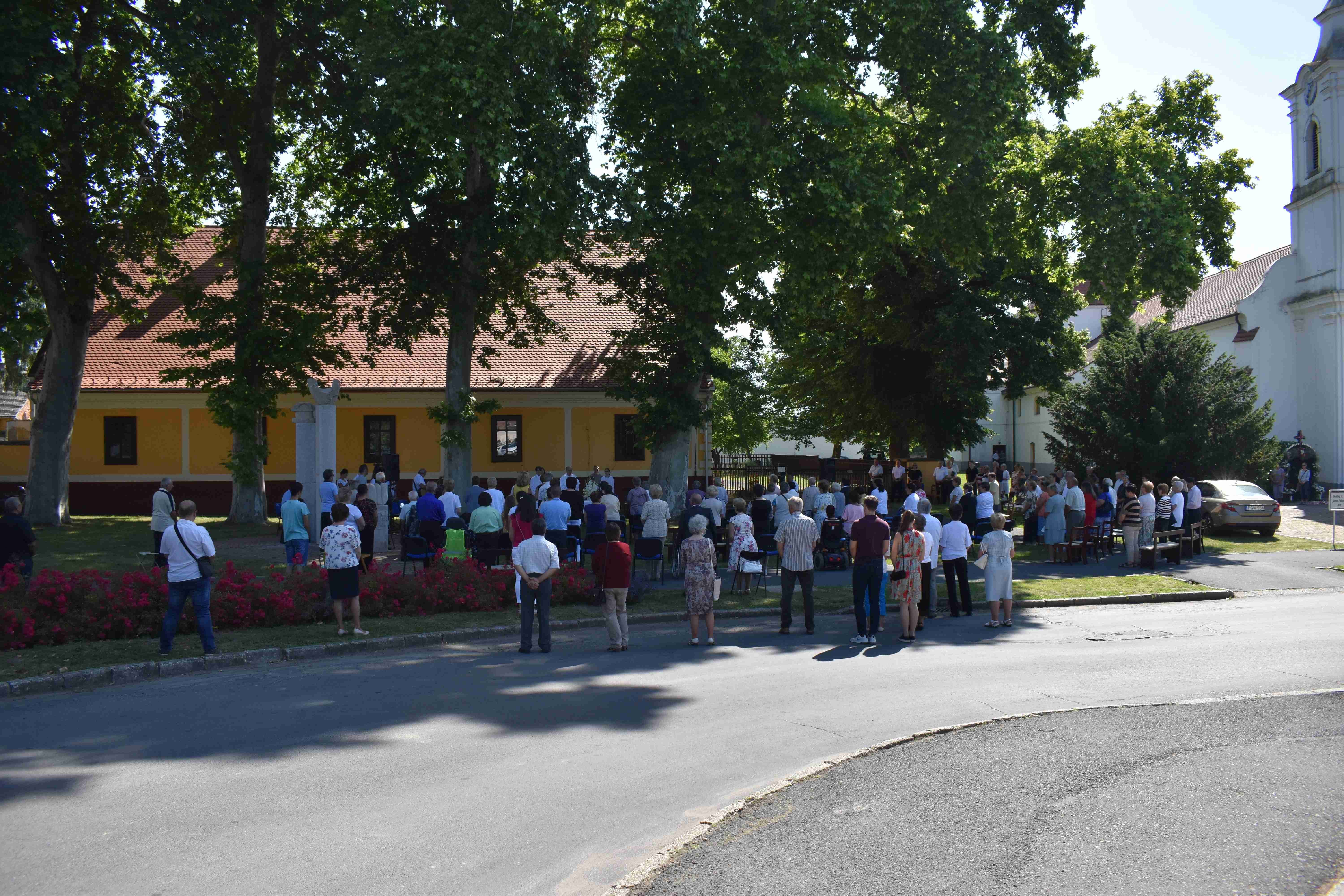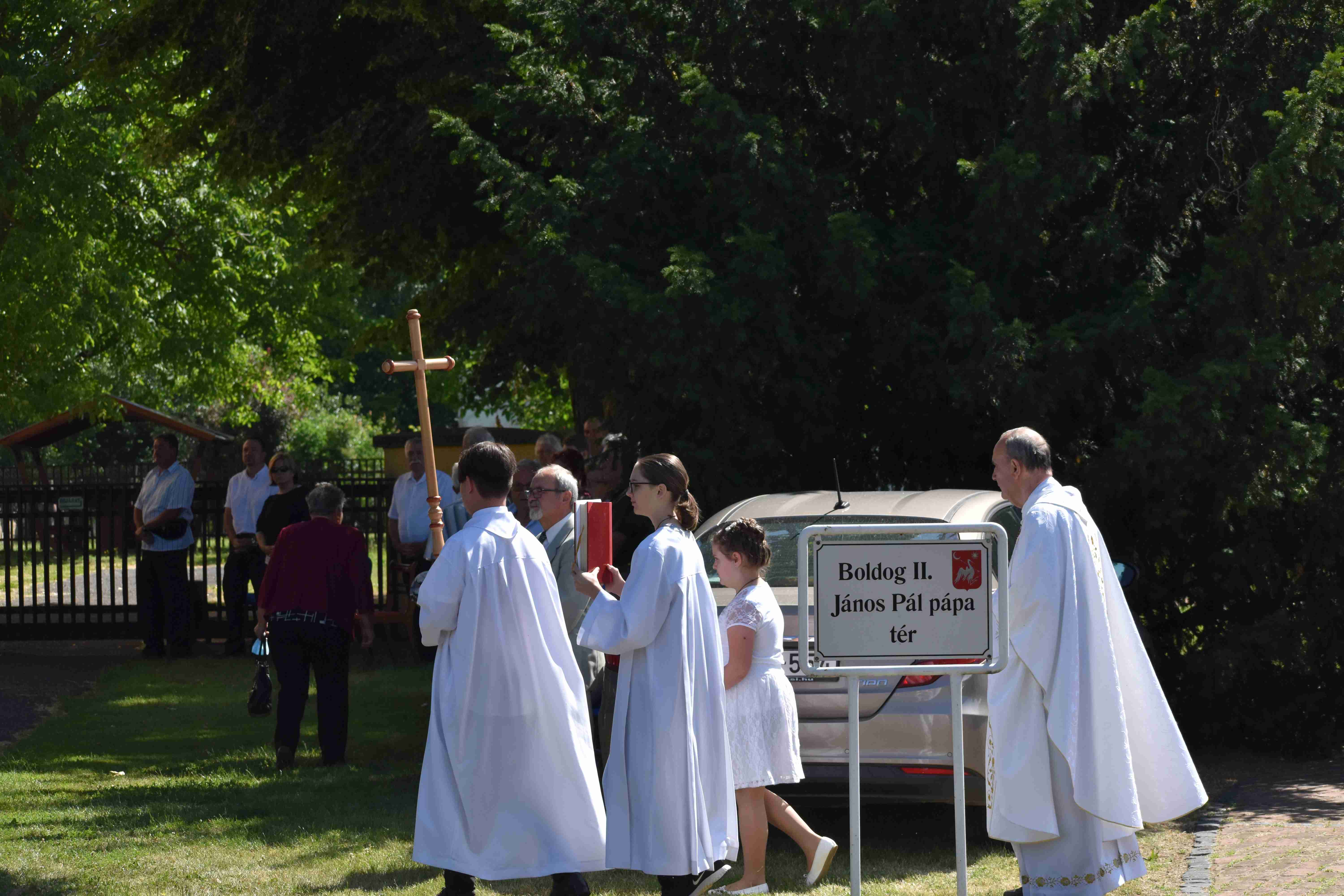 Az ünnepi szentmisét ezúttal a Római KatolikusPlébániahivatalelőtt tartották meg a Hősök terén és Boldog II. János Pál pápa téren az öreg fák árnyékában. Kiss Iván c. prépost, esperes-plébános szentbeszédében az utolsó vacsorán Jézus által alapított Oltáriszentségről beszélt, amikor Jézus a kenyeret az ő testének, a bort pedig az ő vérének nevezte. Az Oltáriszentség a szentmisében jön létre, ahol Krisztus valóságosan van jelen. Úrnapján mindig kiviszik az Oltáriszentséget az utcákra és a terekre, hogy áldást adjanak vele.