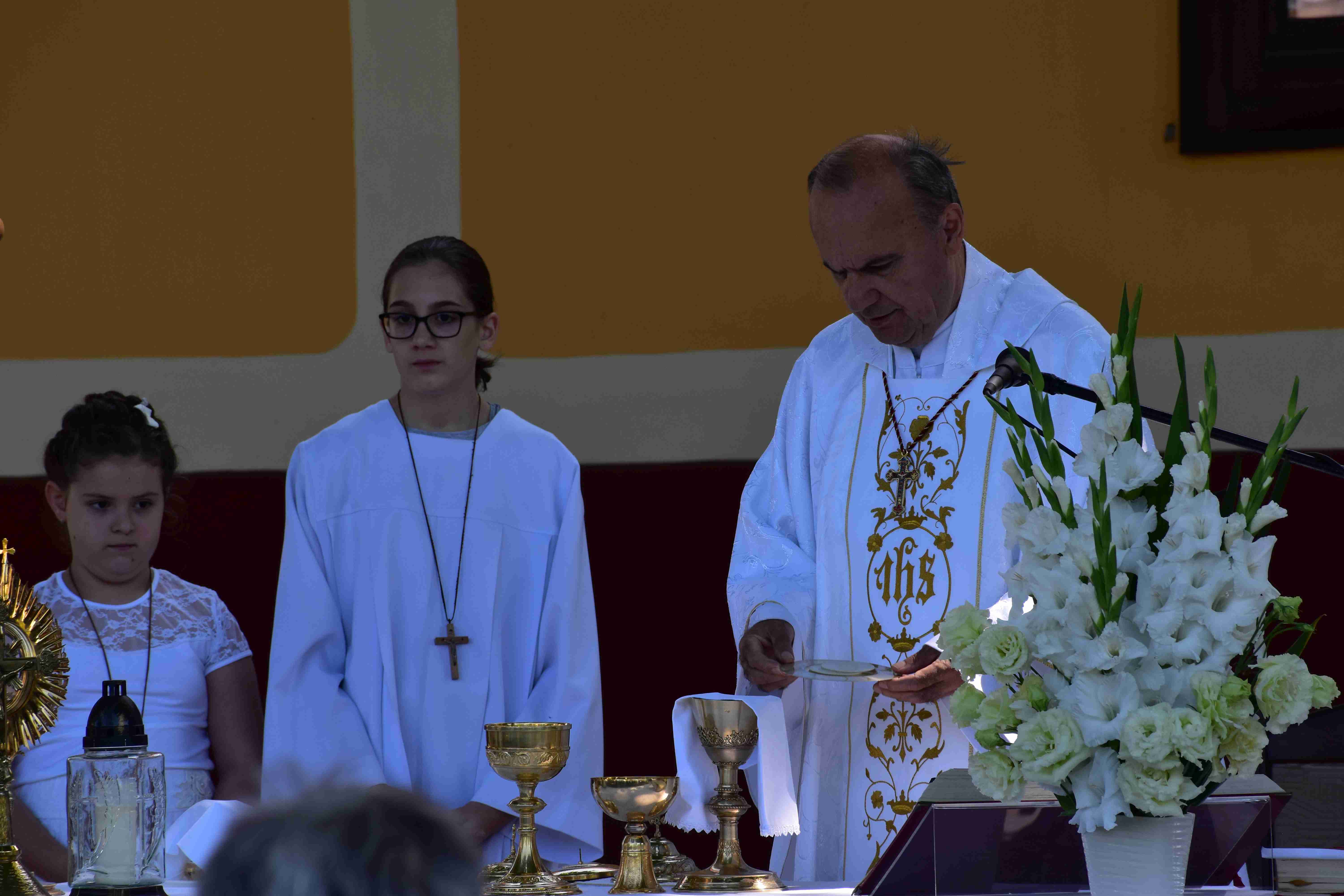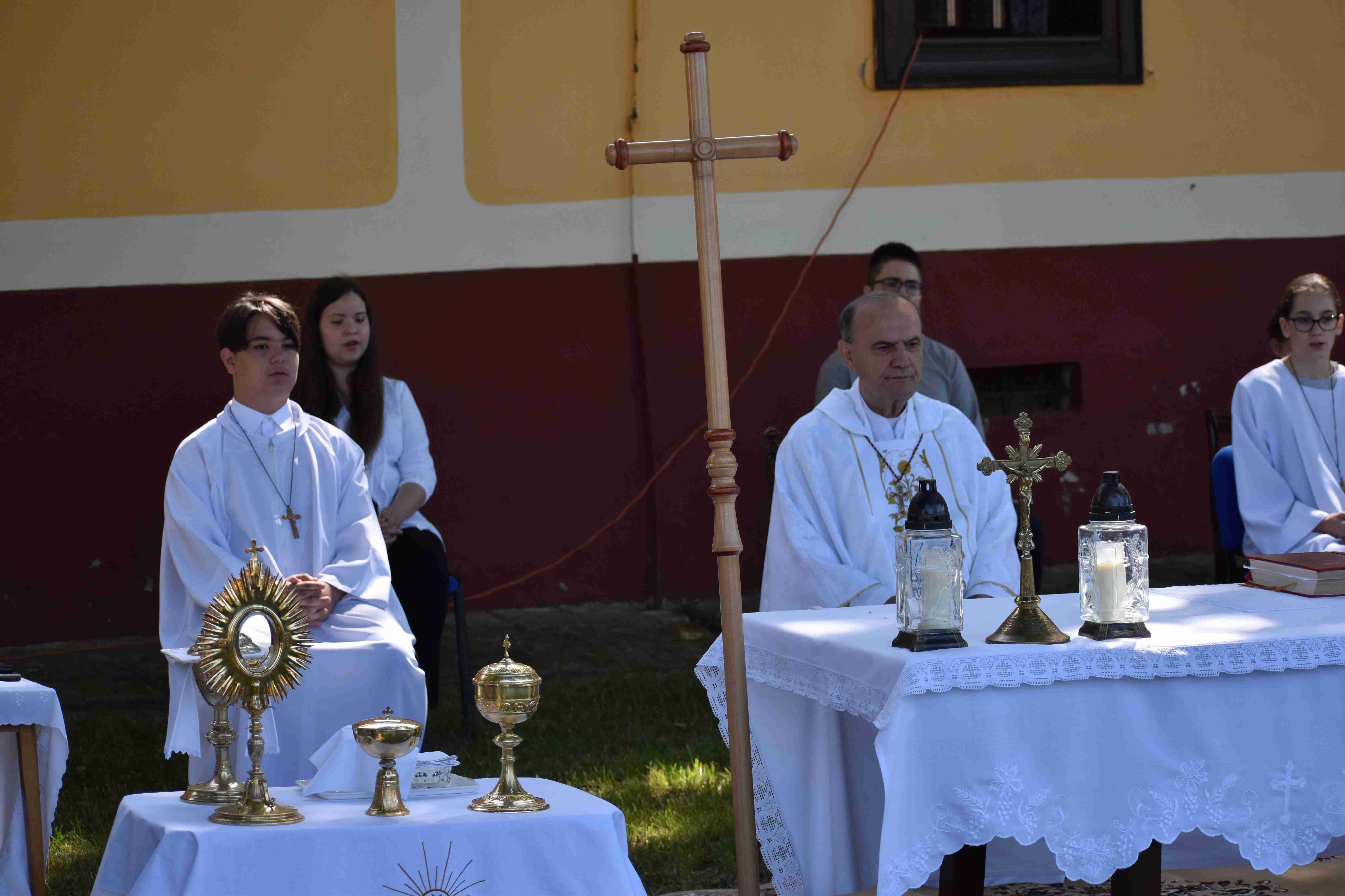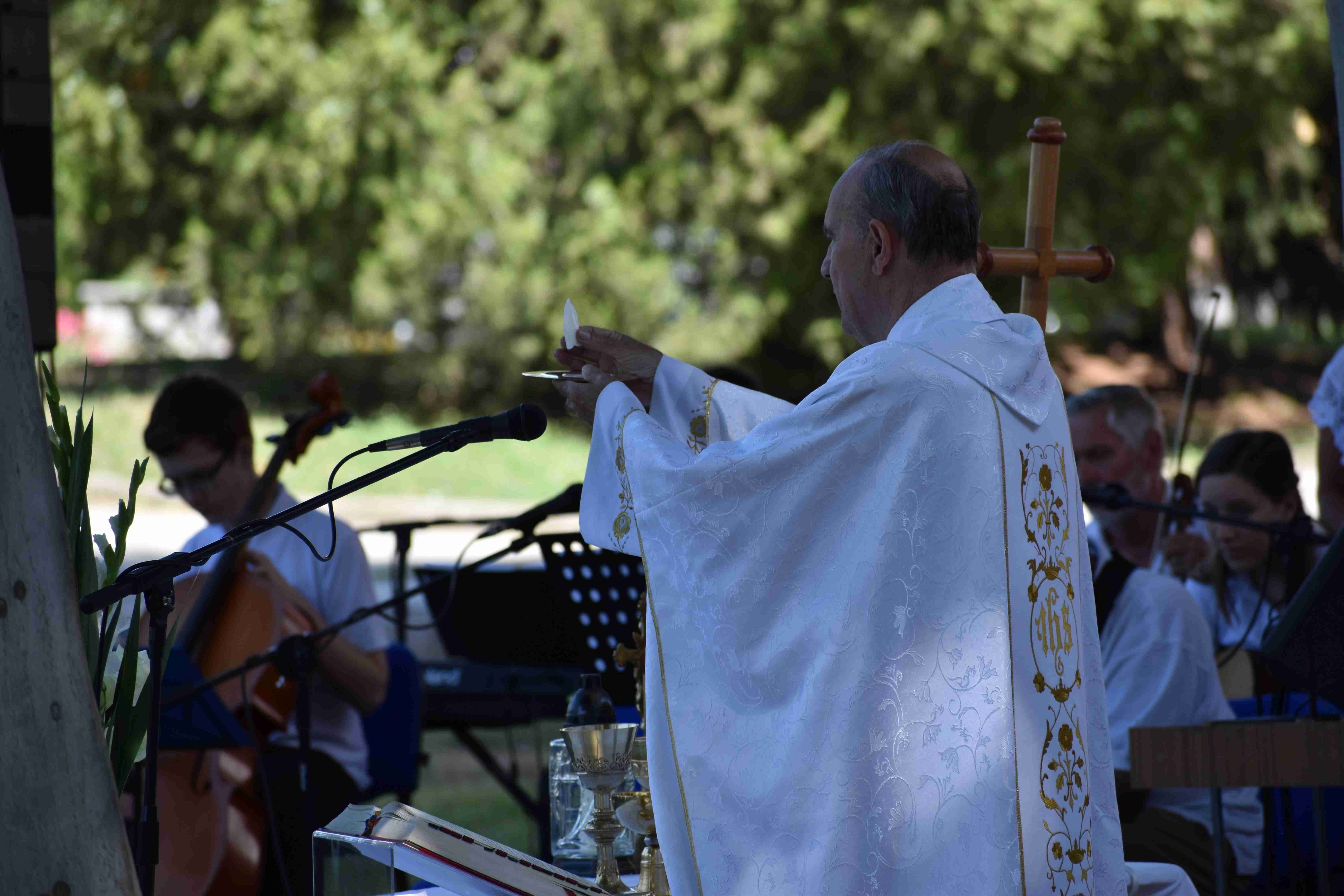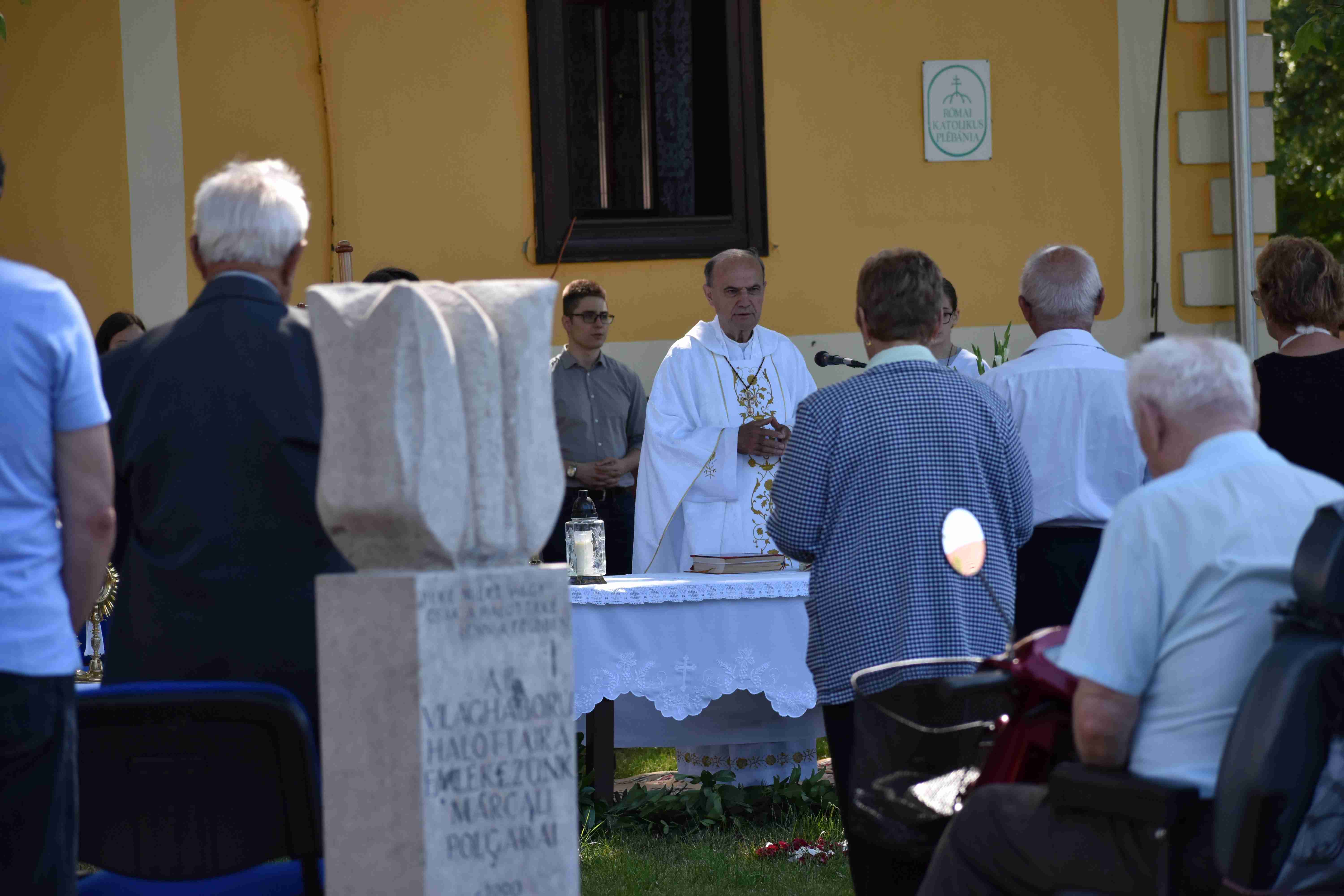 Az ünnepi szentmisét ezúttal a Római KatolikusPlébániahivatalelőtt tartották meg a Hősök terén és Boldog II. János Pál pápa téren az öreg fák árnyékában. Kiss Iván c. prépost, esperes-plébános szentbeszédében az utolsó vacsorán Jézus által alapított Oltáriszentségről beszélt, amikor Jézus a kenyeret az ő testének, a bort pedig az ő vérének nevezte. Az Oltáriszentség a szentmisében jön létre, ahol Krisztus valóságosan van jelen. Úrnapján mindig kiviszik az Oltáriszentséget az utcákra és a terekre, hogy áldást adjanak vele.