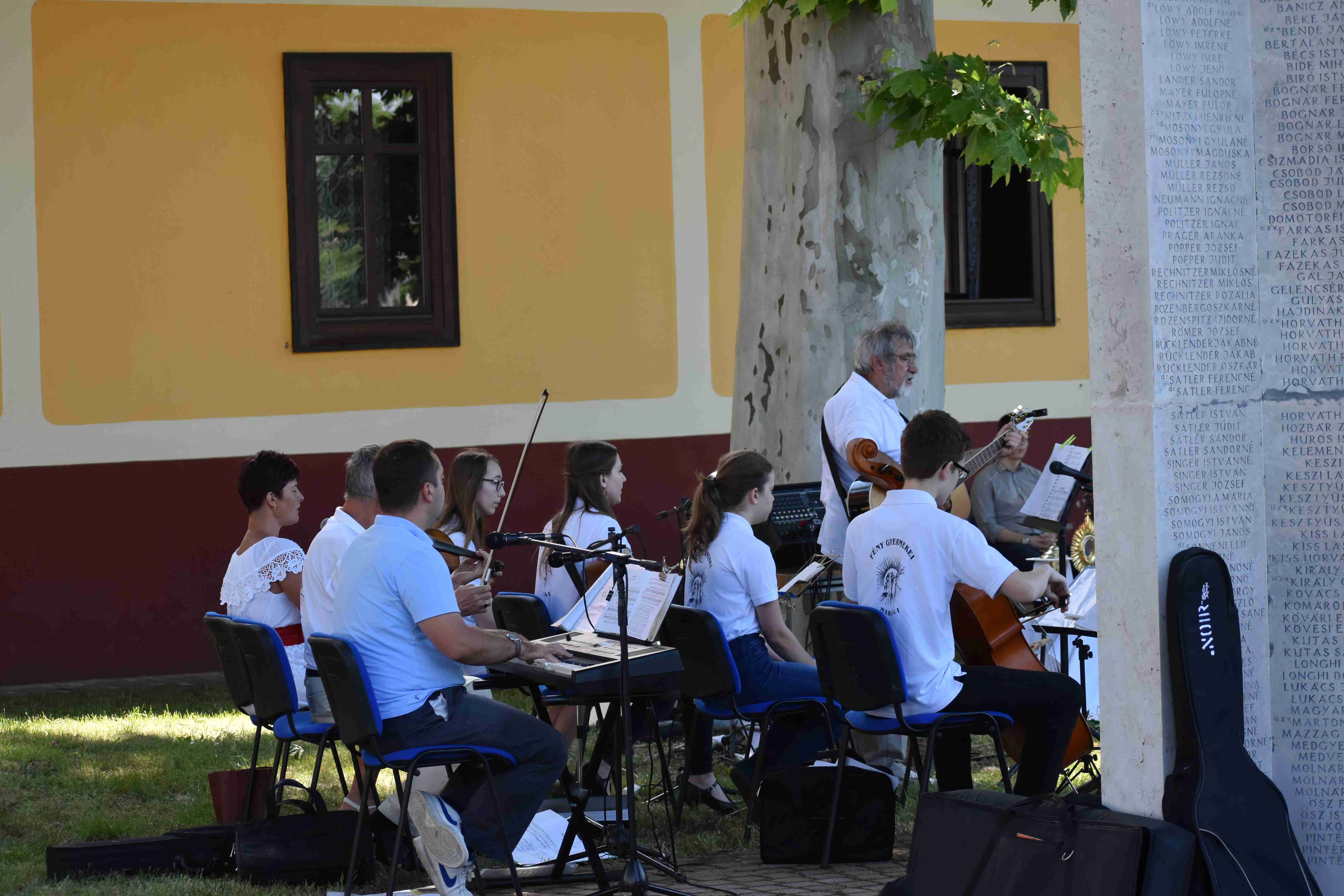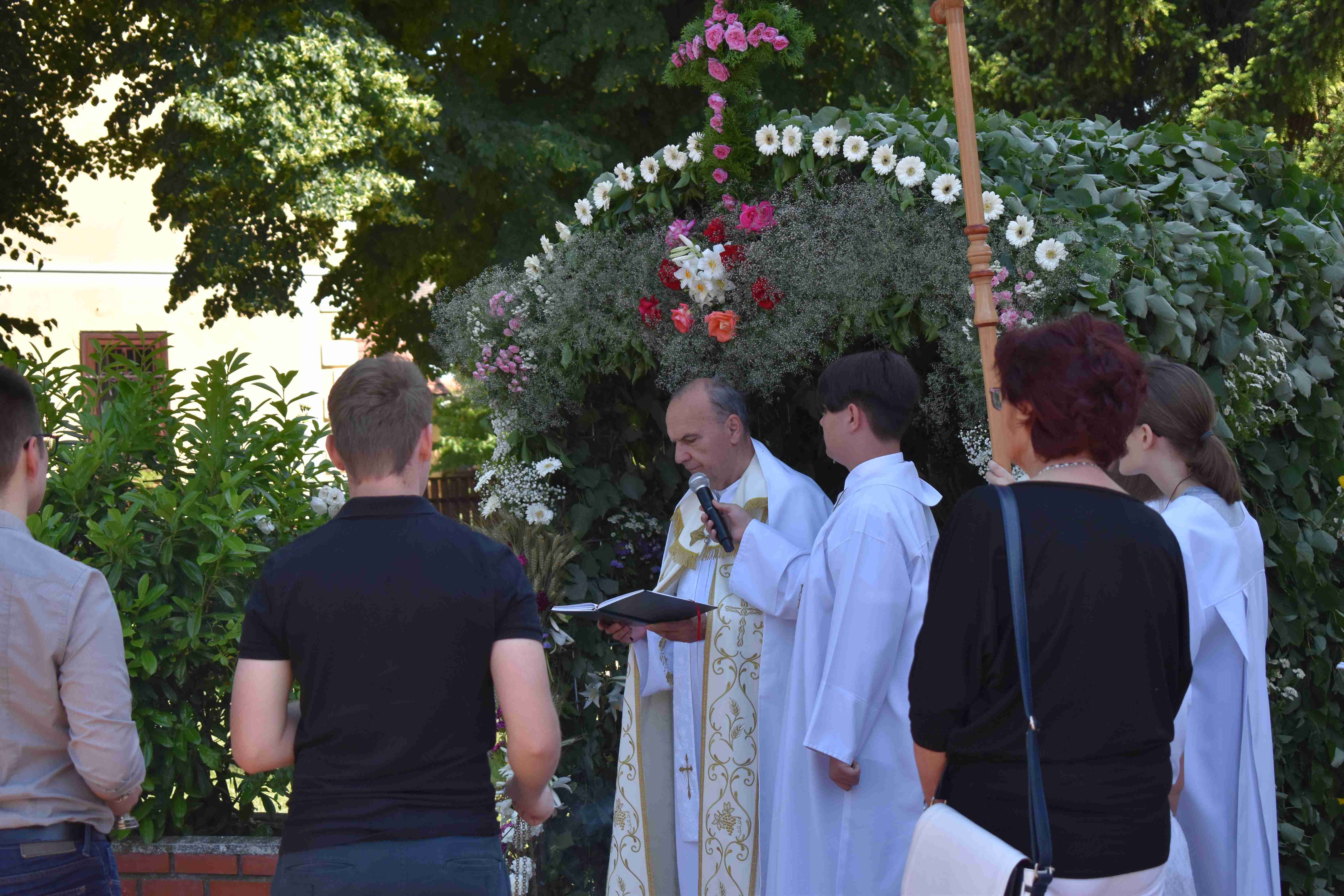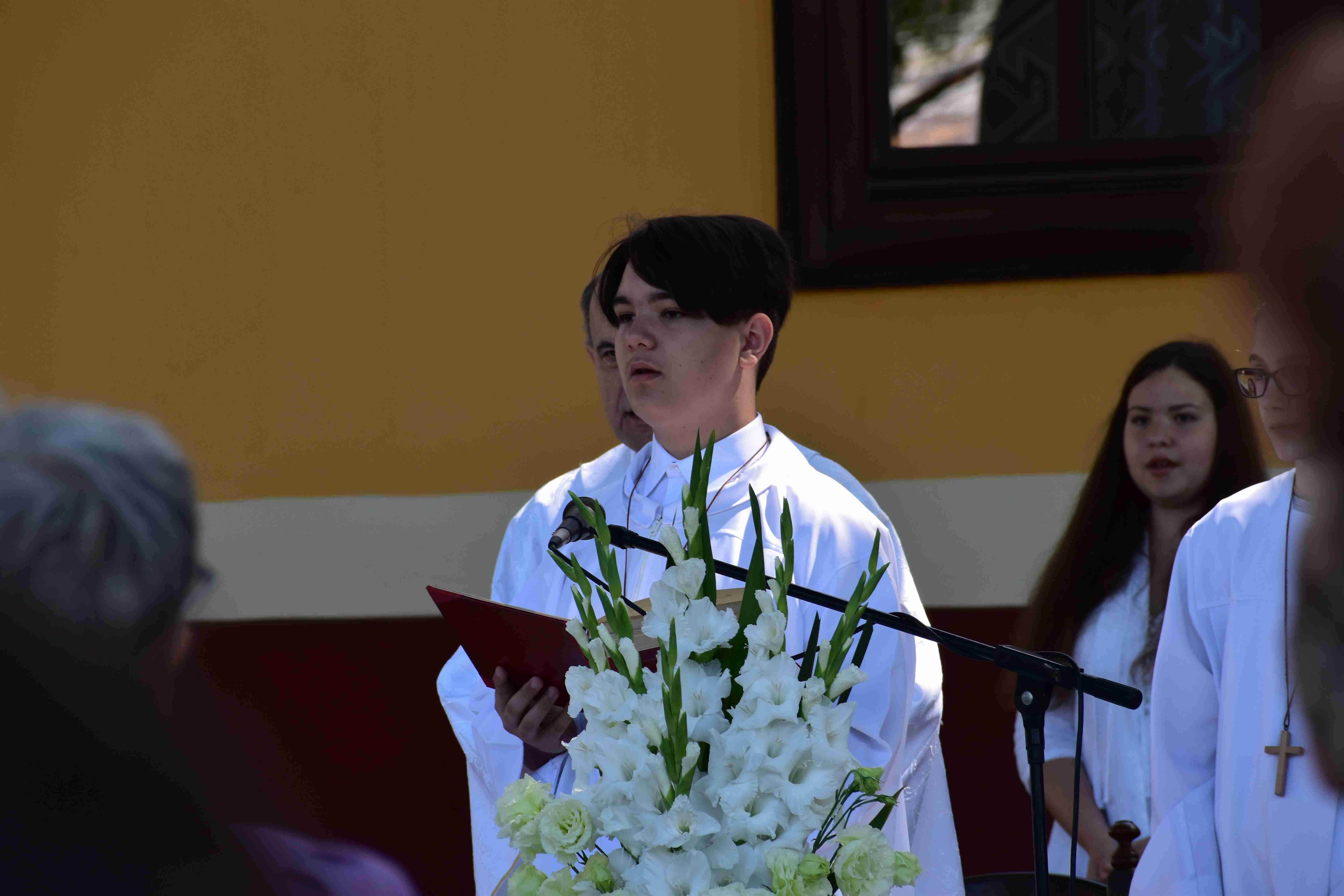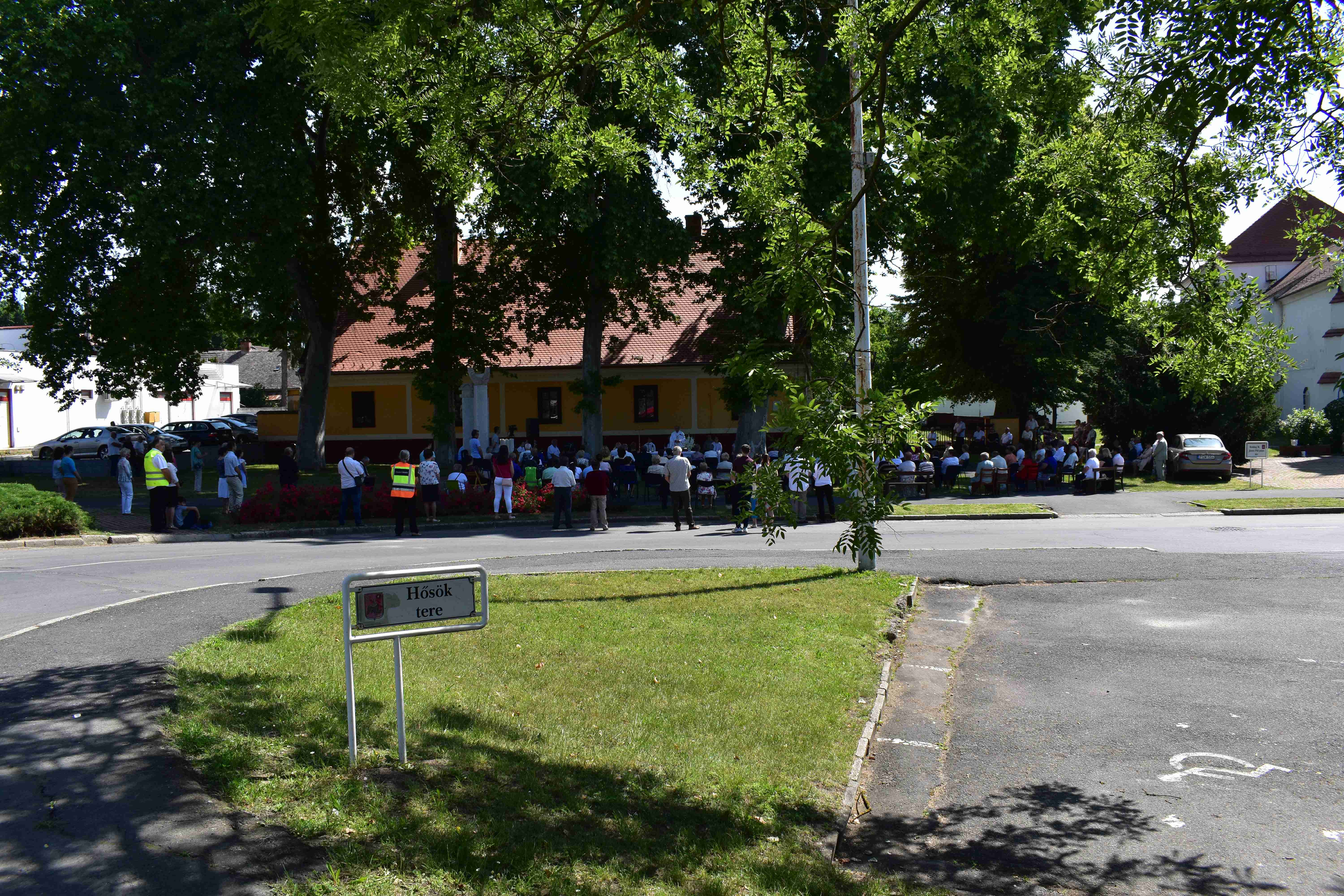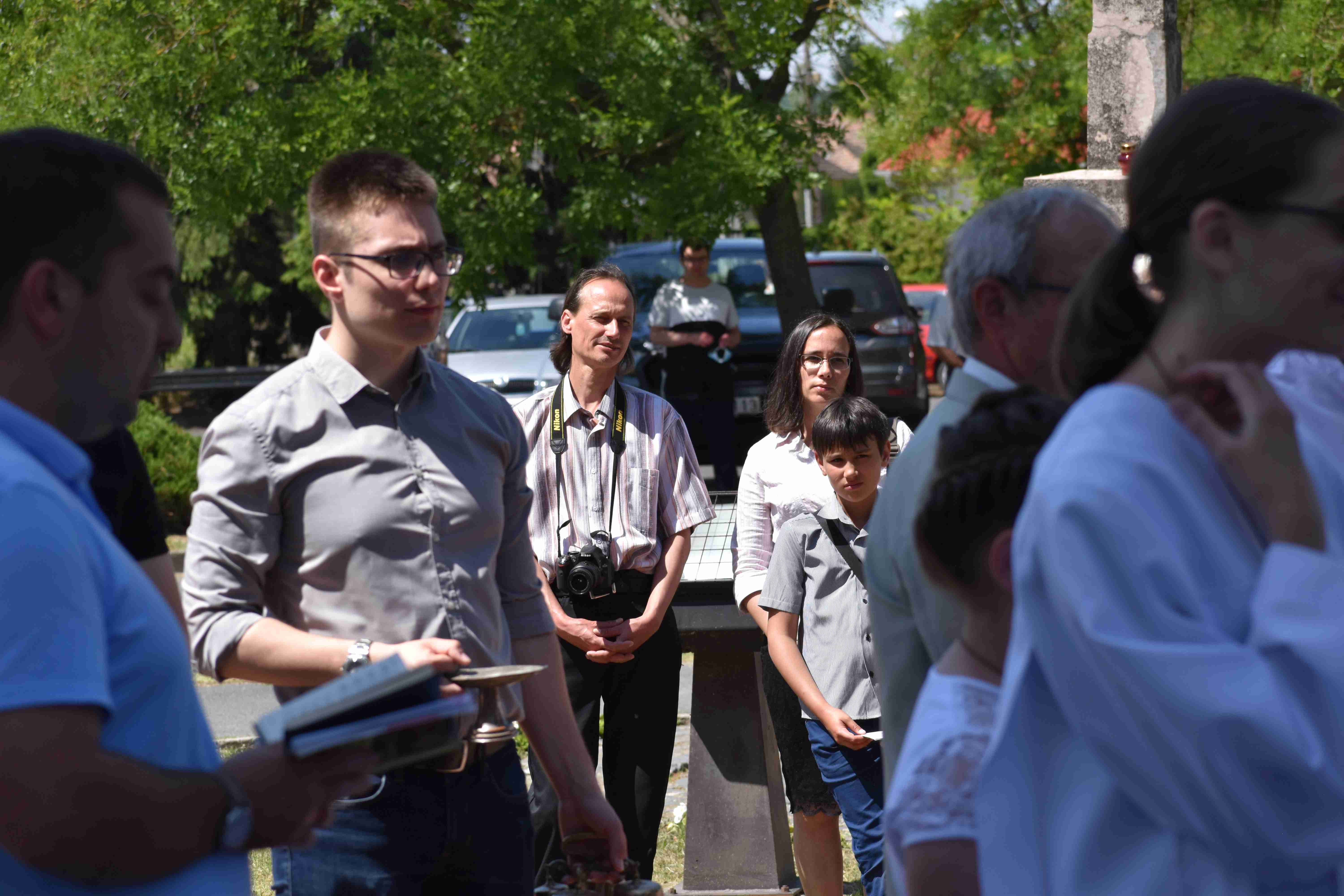 Az idén – a koronavírus-járványra való tekintettel – mindössze egyetlen lombsátrat készítettek el az egyházközség közösségeinek tagjai és díszítettek fel, majd Iván atya egy rövid körmenettel végezte el a liturgiát, s adott áldást a nagy számban megjelent hívekre.