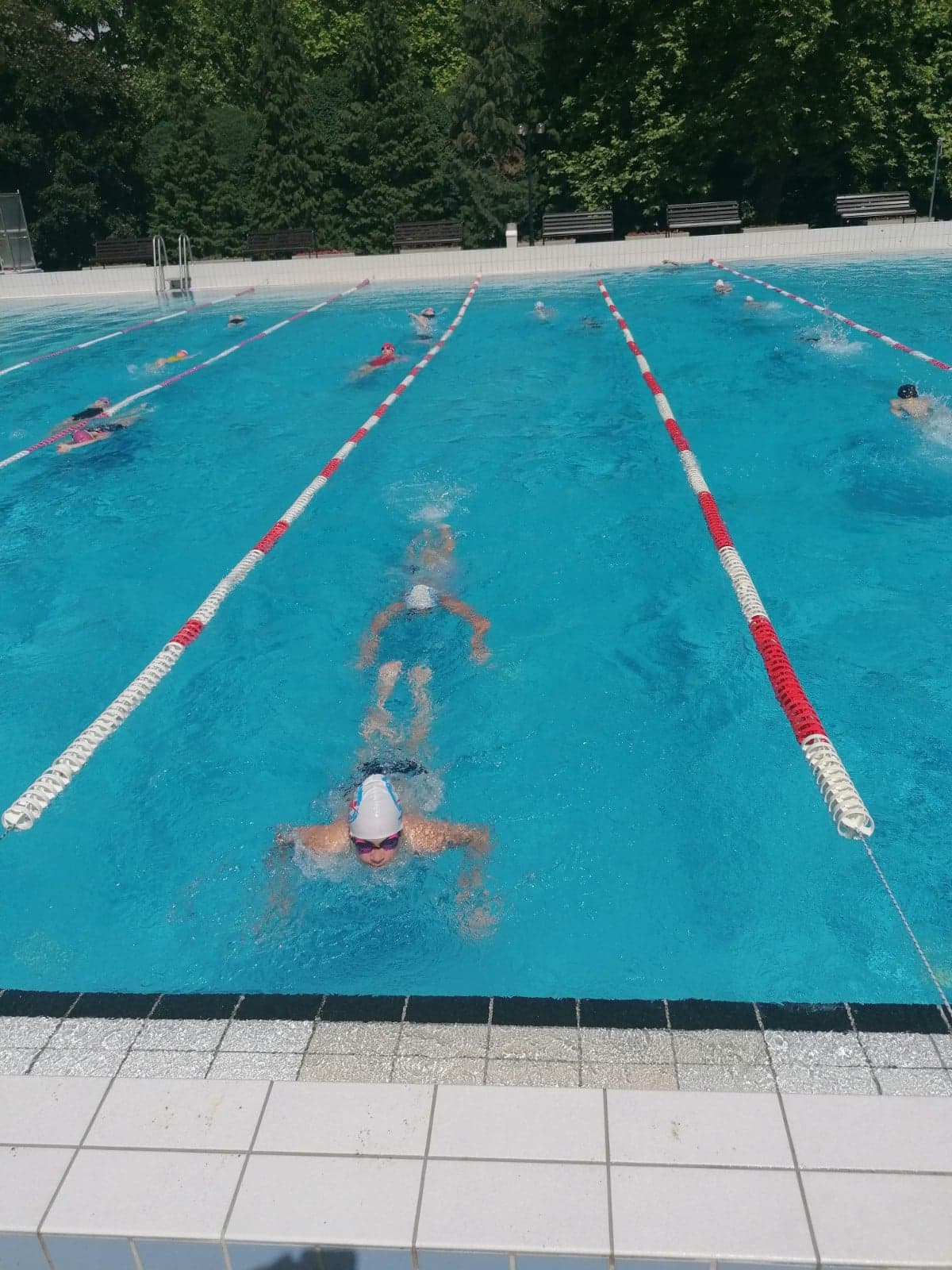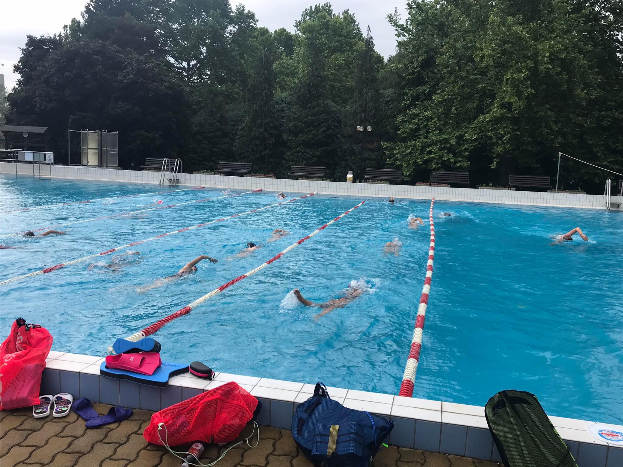 A fürdő zavartalan nyugalmát minden héten 20-22 fő Marcali gyermek törte meg immáron negyedik hete. A sportolókat edzőik Francsics Nikoletta és Sárvári József koordinálta a tábor ideje alatt, valamint minden héten egy önkéntes szülő (felnőtt) vállalta a kihívásokkal teli felügyelői feladatot. Az úszók a kinti 50 méteres medencét használhatták. A folyamatos közös edzéseknek köszönhetően ott folytathatták a felkészülésüket a nagyobb megmérettetésekre, ahol márciusban a kényszerpihenő miatt abbahagyták. Az egyesület edzői által összeállított napirendben a reggeli- és délutáni úszó illetve szárazföldi edzések mellett helyet kapott egy multimédiás képzés is, ahol a helyes technika elsajátítása kapta a főszerepet. A kőkemény edzésmunkát az edzők minden héten szabadprogrammal is jutalmazták, mely az önfeledt játékról szólt (csúszdázás, strandfoci). Az utolsó héten a szerda délutáni szabadprogram alkalmával a gyerekek egy biciklis kiránduláson vettek részt, Zalaszabarba bicajoztak, ahol egy egész délután állt rendelkezésükre, hogy a Zobori Élménypark minden játékát kipróbálhassák.