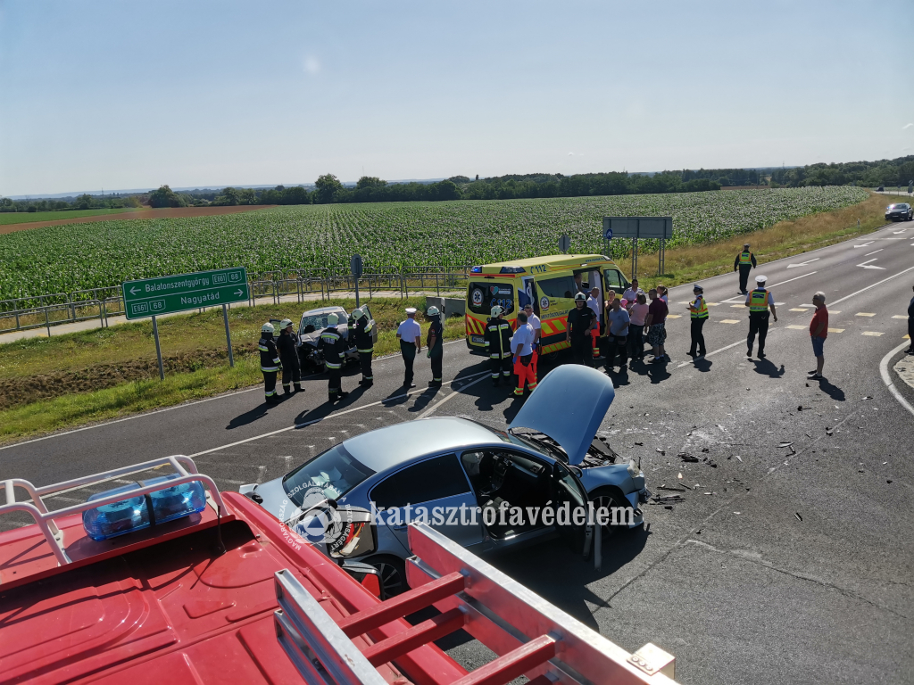 Két személyautó ütközött össze a 68-as úton, Marcali térségében.
