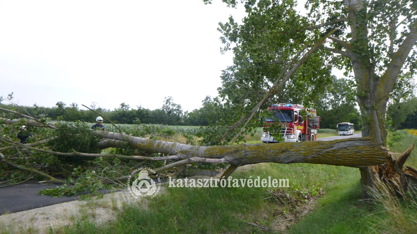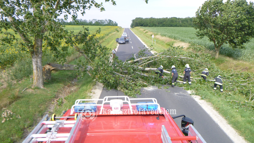 Szombat délután egy csaknem 30 méter magas fa dőlt az útra Pusztakovácsi külterületén, teljesen elzárva az utat a forgalom elől. A marcali hivatásos tűzoltók két motorfűrésszel feldarabolták és eltávolították a fát.