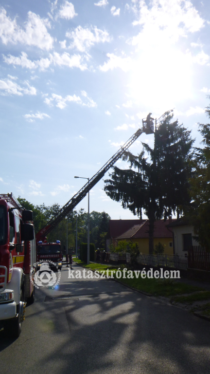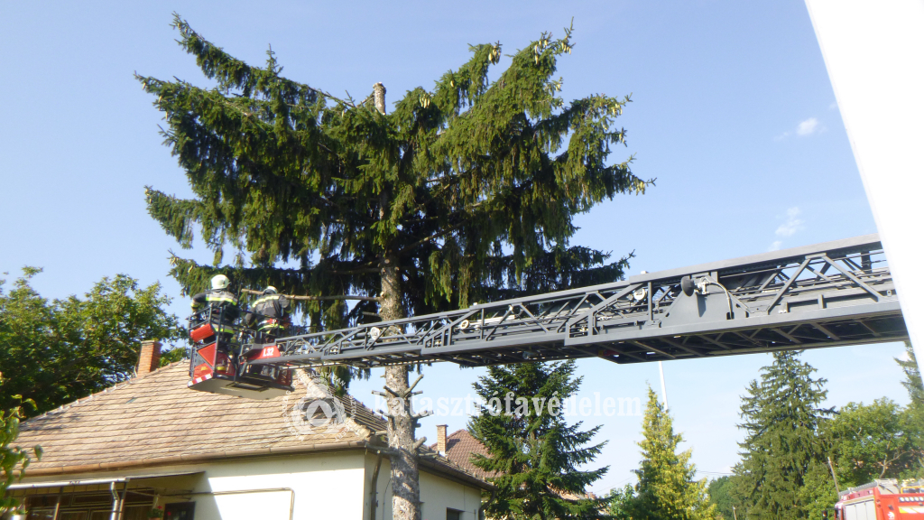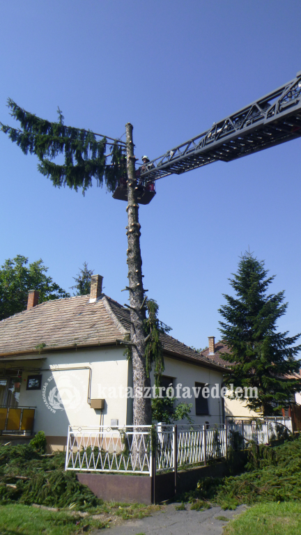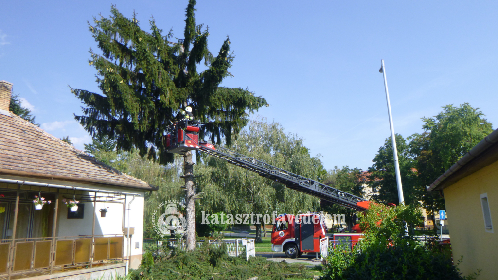 Marcaliban, a Vereckei utcában megdőlt egy csaknem húsz méter magas fenyőfa a viharos időjárás következtében. A helyi hivatásos tűzoltók pénteken magasból mentő segítségével, motorfűrésszel a fát eltávolították és a veszélyeztetést megszüntették.