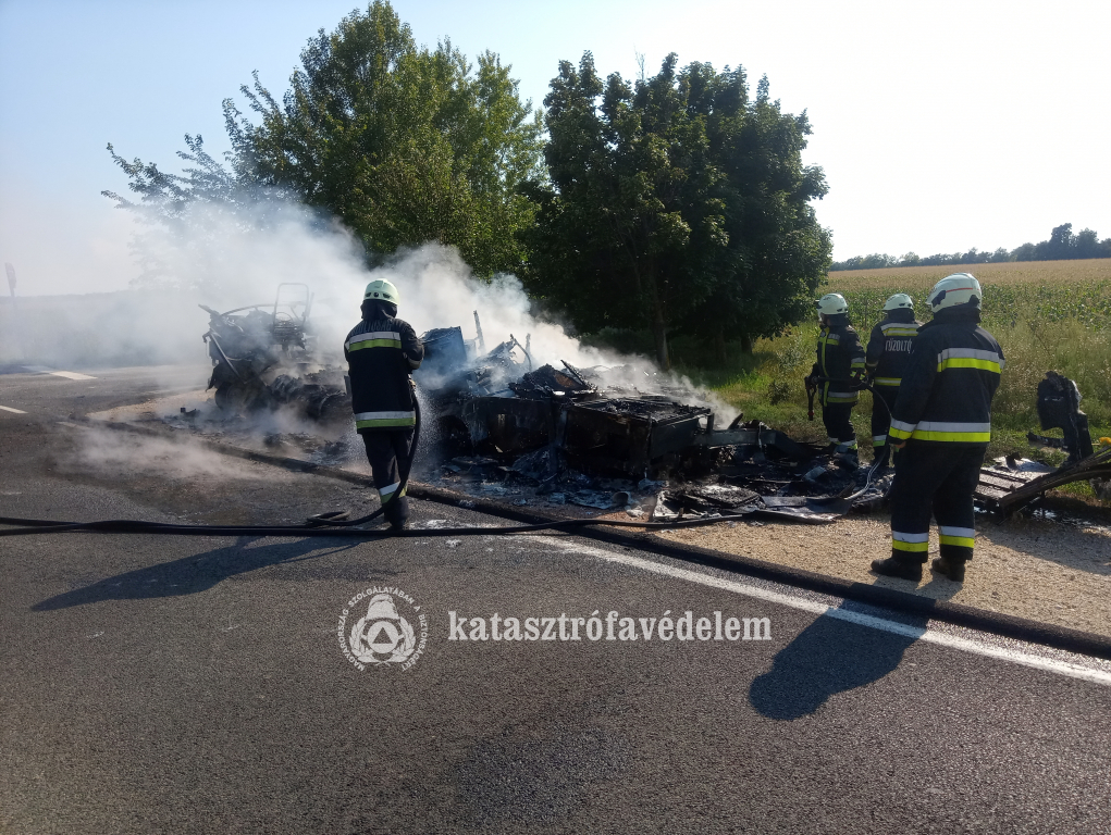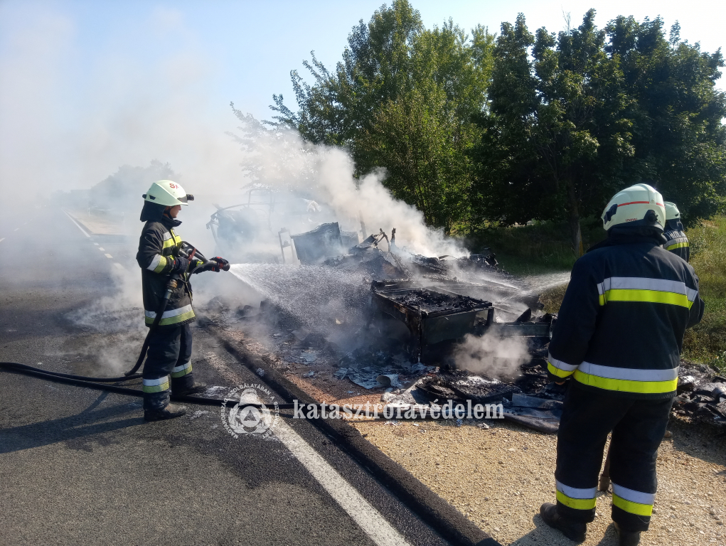 Teljes terjedelmében égett egy lakóbusz Balatonszárszón, vasárnap délután. A tűzesethez a siófoki hivatásos és a balatonboglári önkormányzati tűzoltókat riasztották, akik eloltották a lángokat. A járműben utazó három ember épségben elhagyta a lakóbuszt.
