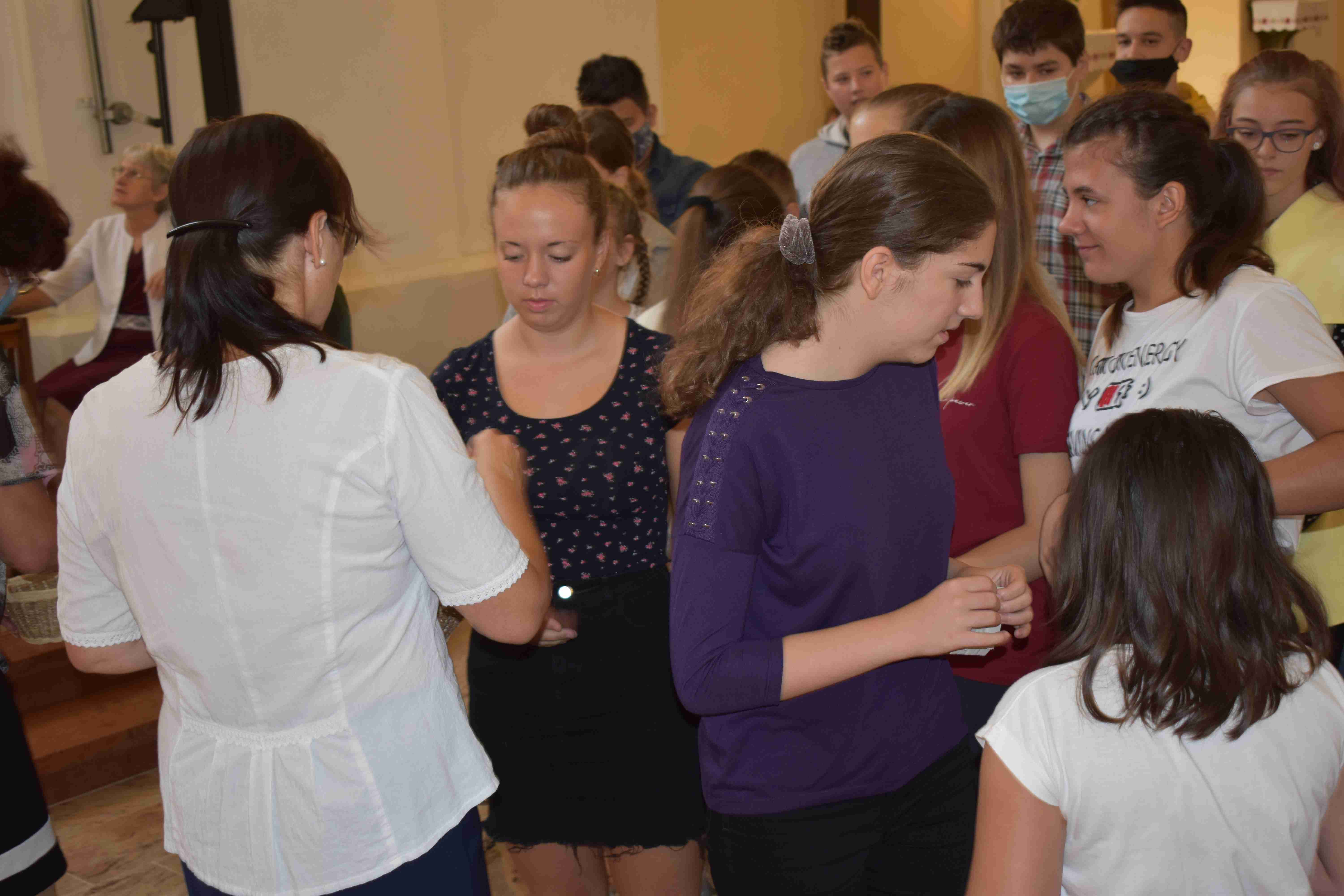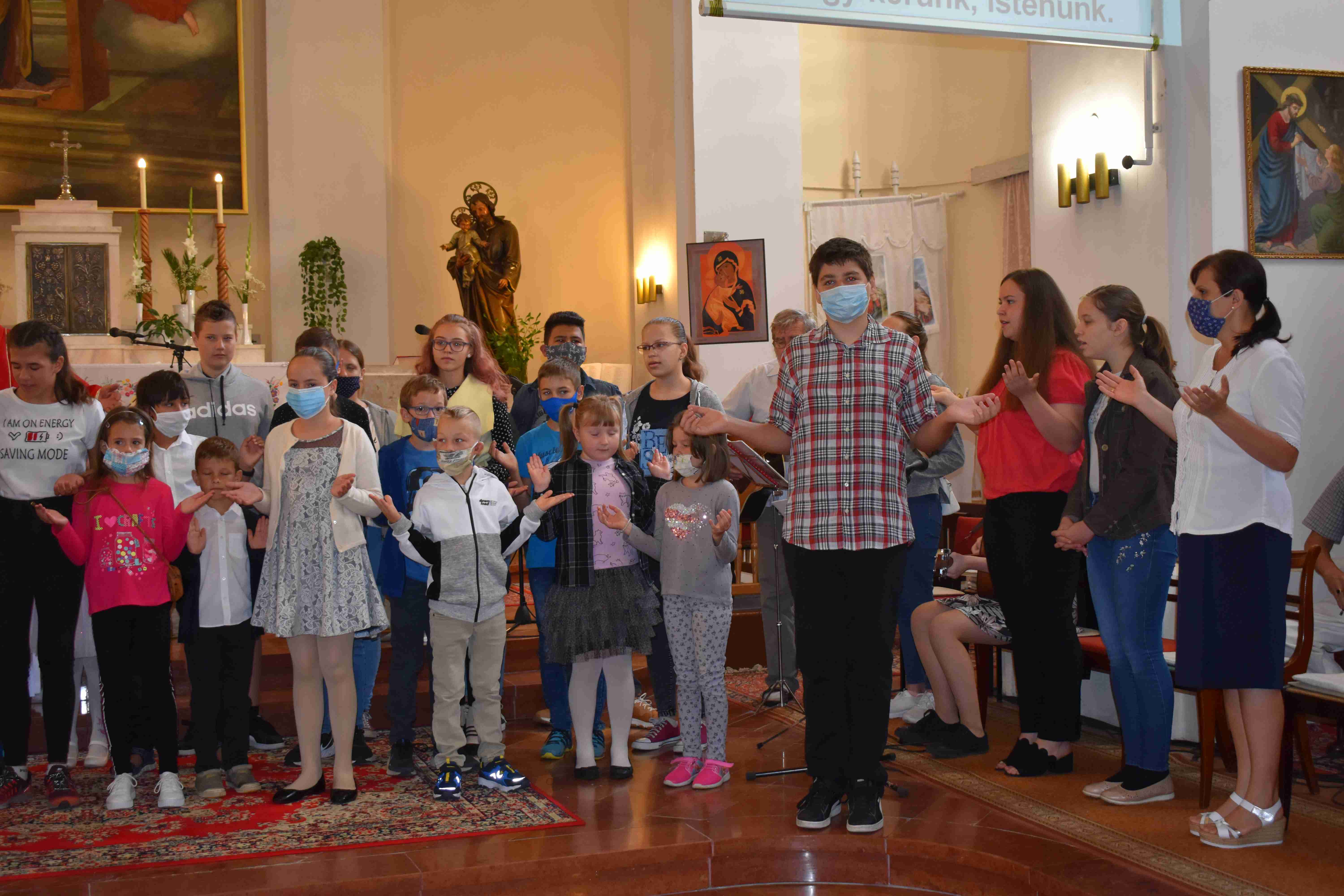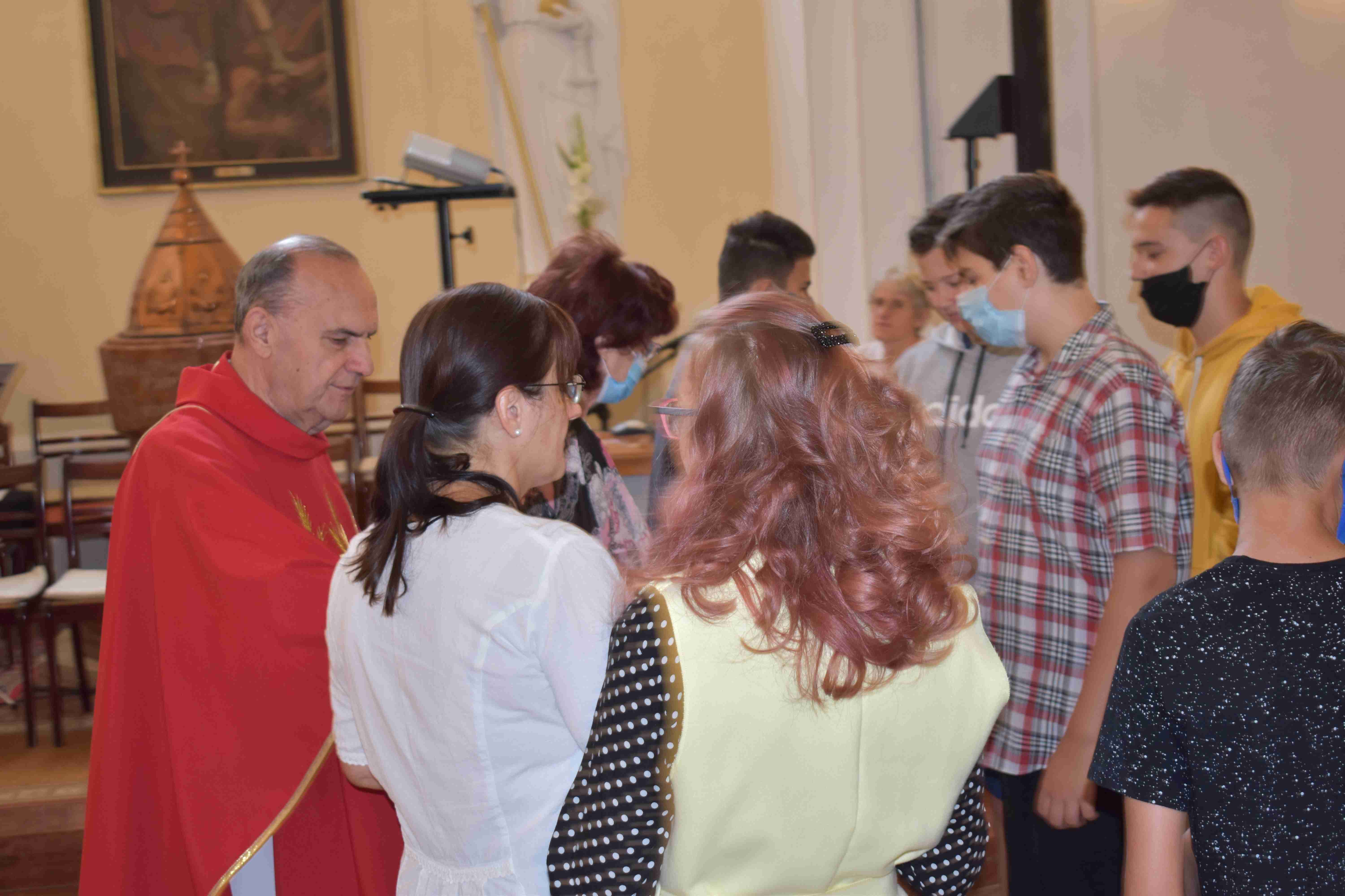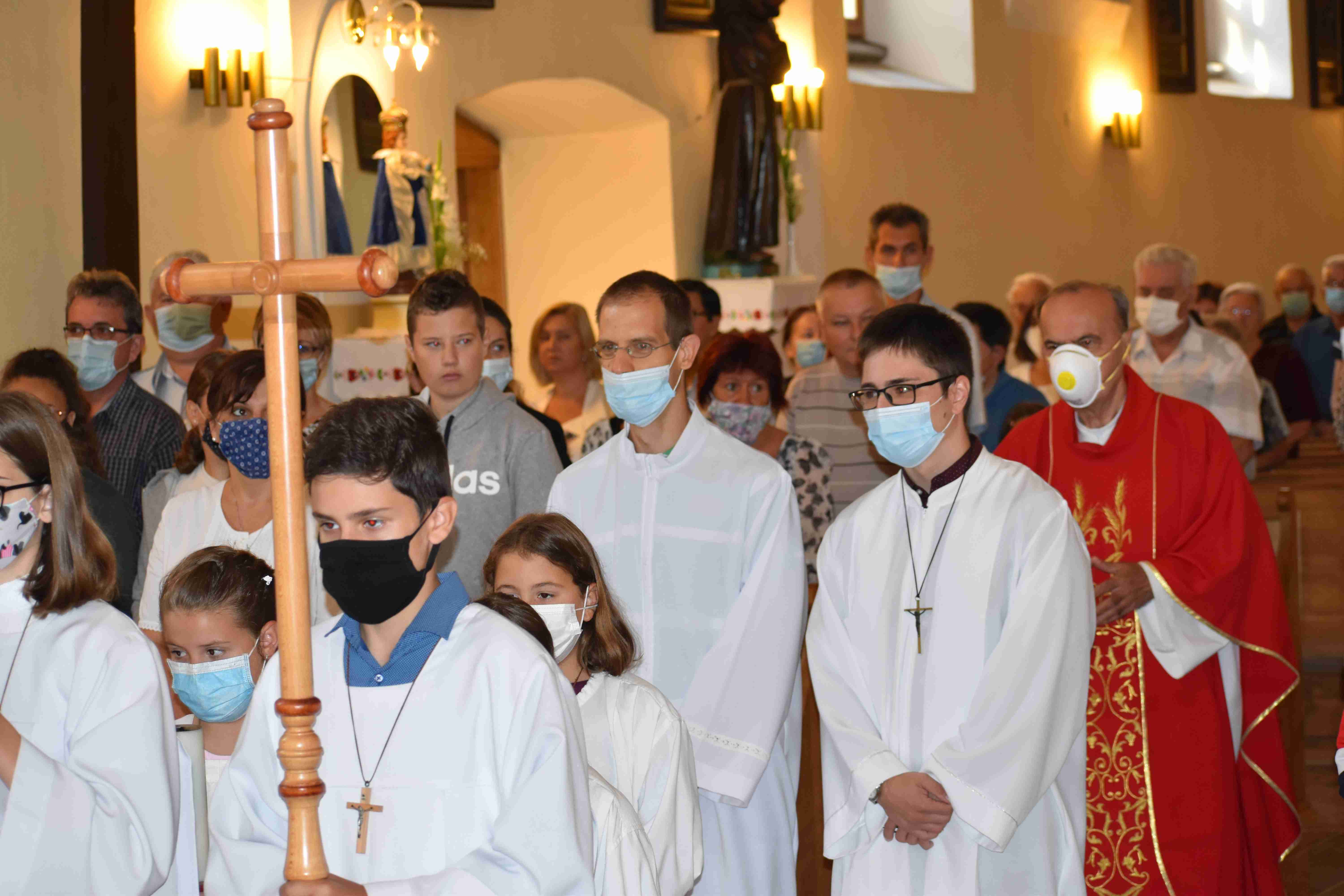 A plébániatemplomban együtt imádkoztak és kérték a Szentlélek és Szűz Mária közbenjárását erre az új tanévre, a hittanos diákokra és tanáraikra egyaránt, hogy türelemmel viseltessenek egymás iránt a különböző generációk. A szentmisén egy imával közreműködött Tóth Eszter Ágnes gimnazista. Majd Kozma Krisztián, Kazinczy-díjas versmondó pedig a megbocsátásról olvasott fel egy szép történetet. Rajtuk kívül Balogh Bálint kántor és a Fény Gyermekei Zenekar emelte a tanévkezdő szentmise ünnepélyes hangulatát. Az istentisztelet végén a gyermekek Iván atyától és a hitoktatóktól egy kis búzaszemekből álló tasakot kaptak, hogy azokat elültessék, valamint gondoskodjanak róluk, és a kis növényekhez hasonlóan ők is növekedjenek a hit és a tudás elsajátításában.