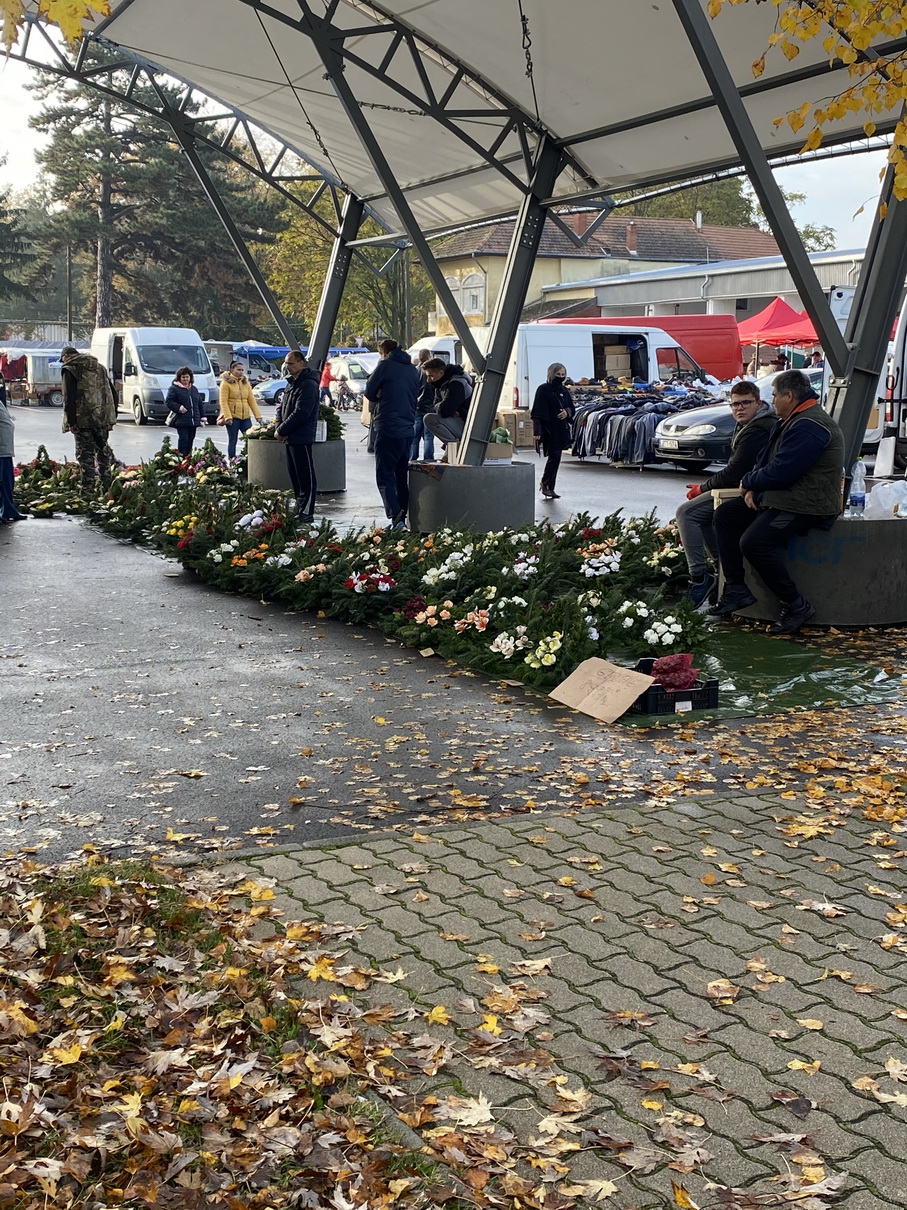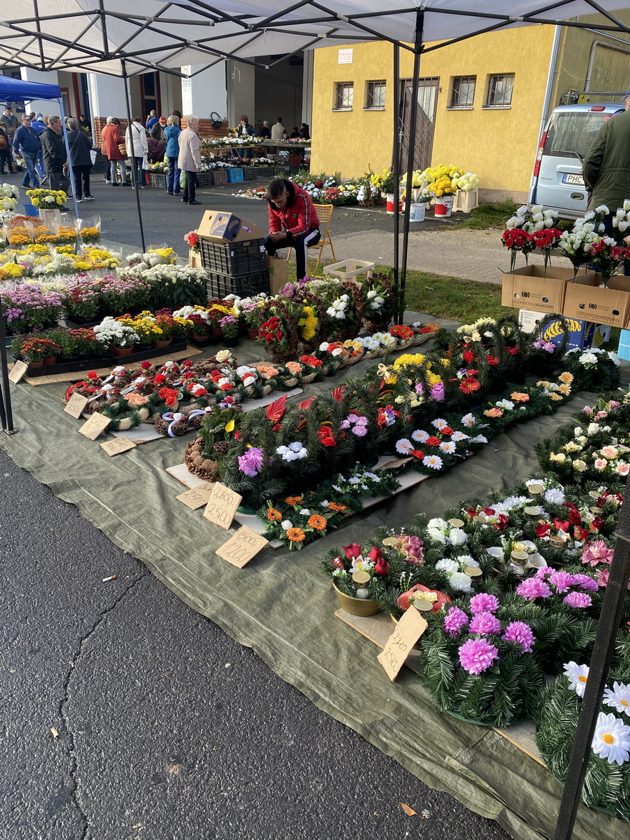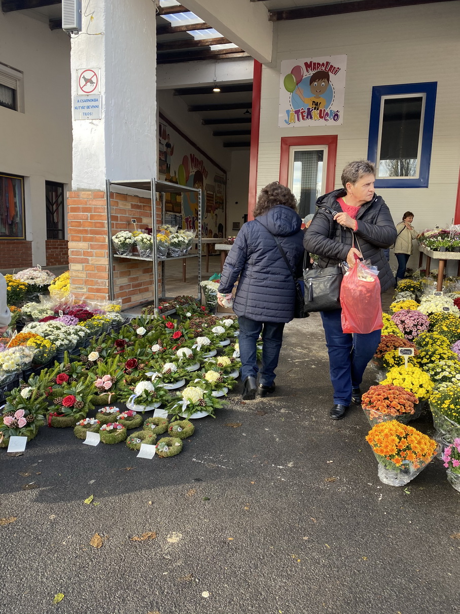 Több árus kínálatából válogathattak a vásárlók a marcali piacon. A száraz- vagy selyemvirággal készített koszorúk mellett az élővirágokra és mécsesekre is nagy volt a kereslet. A ruhaneműket, zöldséget és gyümölcsöt és igazi marcali mézet is vásárolhattak a piacra érkezők.