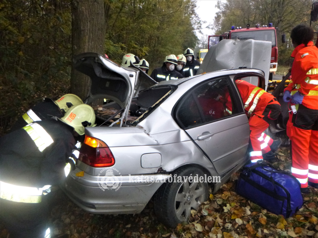 Pénteken letért az úttestről és fának ütközött egy személyautó Kutas külterületén. A balesethez a nagyatádi és a kaposvári hivatásos, valamint a nagybajomi önkéntes tűzoltókat riasztották. Az egységek áramtalanították a járművet és feszítő-vágó segítségével kiszabadították a sofőrt a gépkocsiból, aki életveszélyes sérüléseket szenvedett. Az autó másik utasa az ütközés következtében kirepült a gépjárműből és súlyosan megsérült.