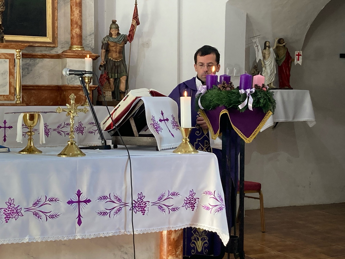 A mai szentmisén a templomban is felragyogott az adventi koszorú első gyertyája. Németh József atya elmondta, hogy az adventi időszakban a hétről hétre meggyújtott gyertyák jelzik az karácsony közeledtét és beszélt az advent fontosságáról is.