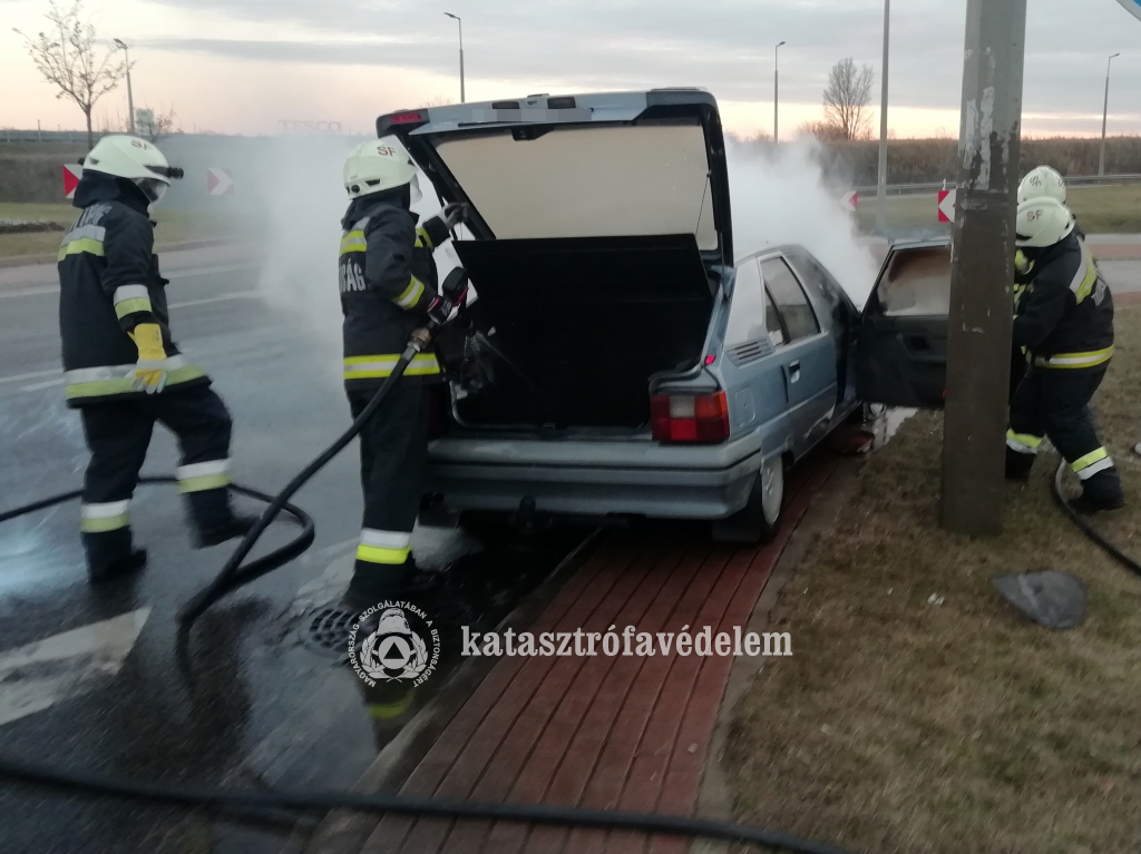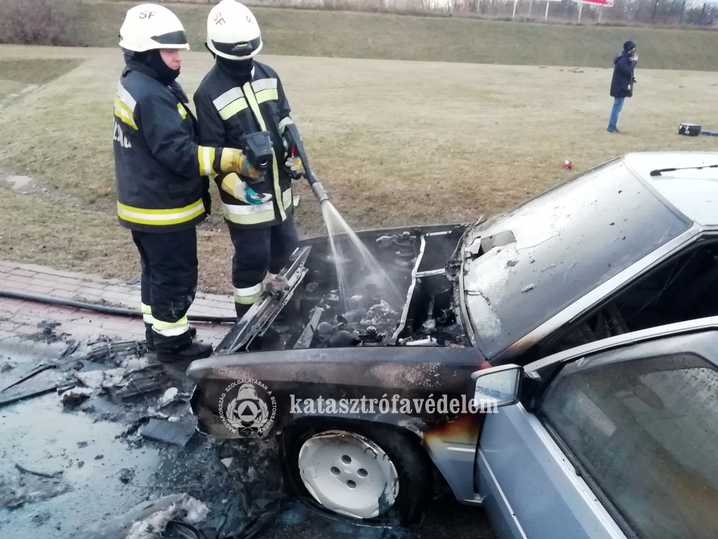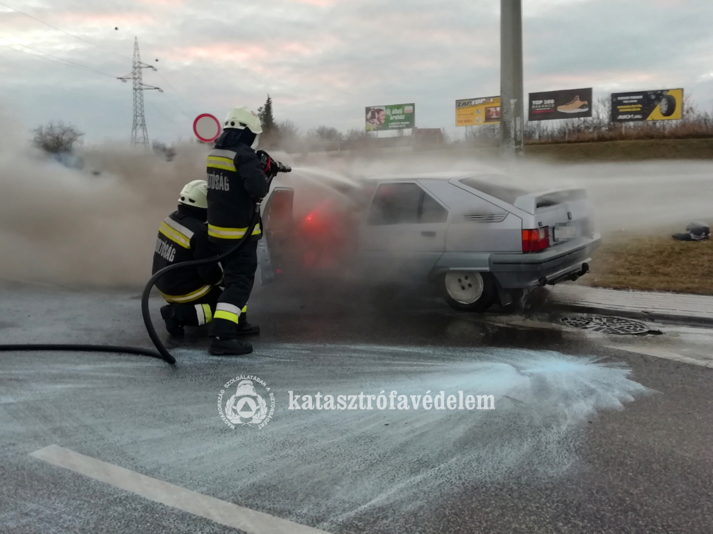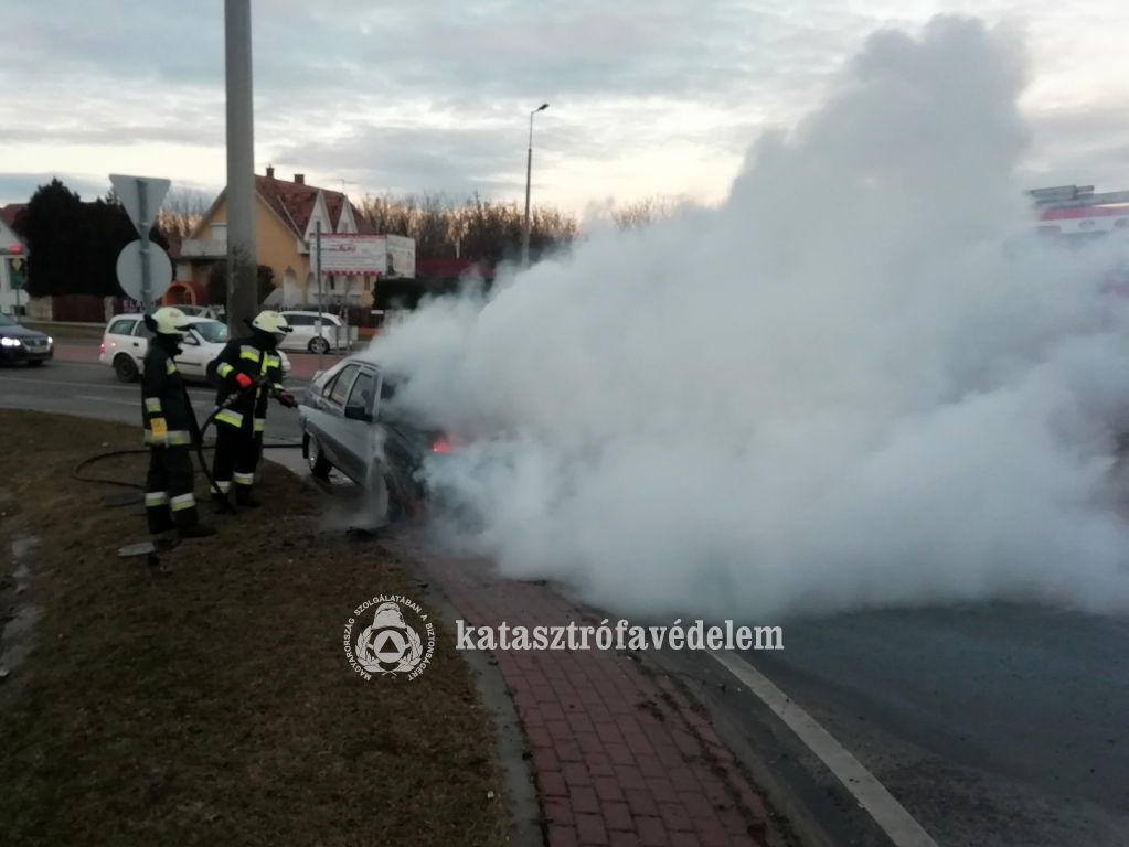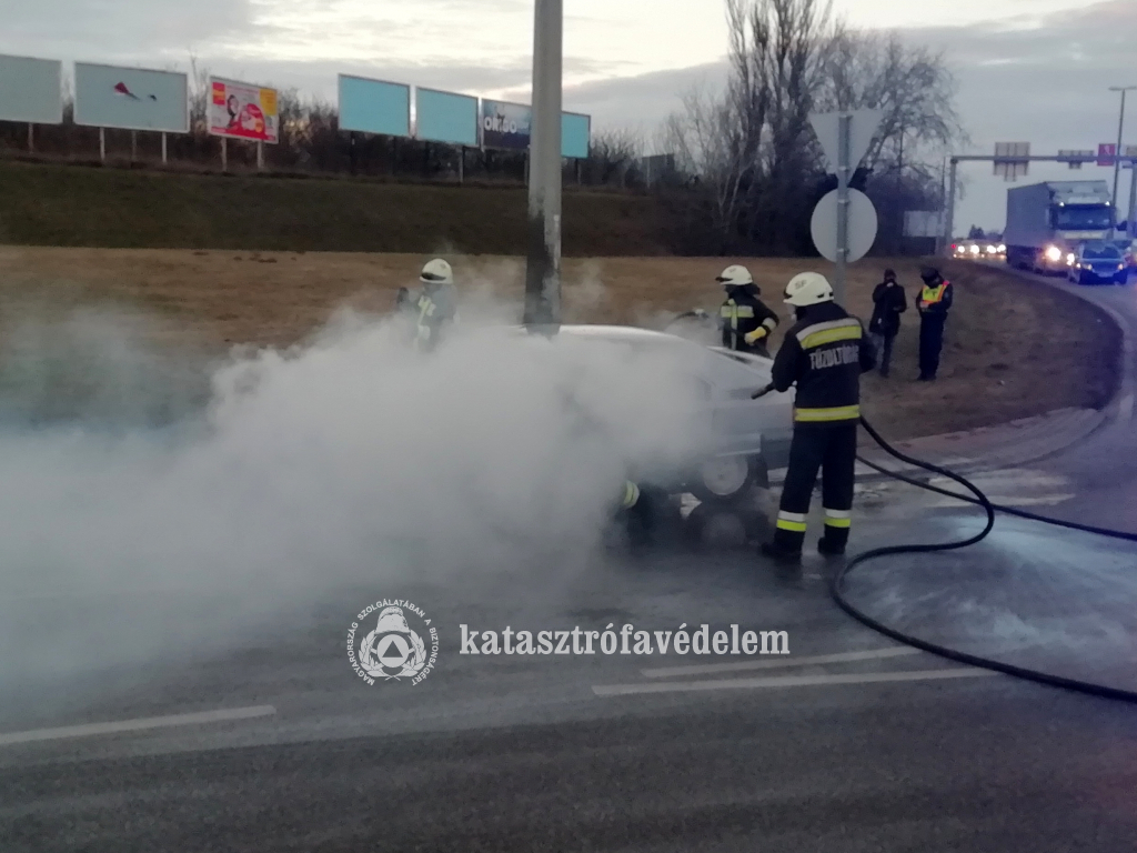 Pénteken délután kigyulladt egy személyautó motortere Siófokon, az M7-es autópálya és a 65-ös főút csomópontjánál lévő körforgalomban. Az esethez a város hivatásos tűzoltóit riasztották, akik két vízsugárral rövid időn belül eloltották a lángokat. Az egységek ezután hőkamerával átvizsgálták és visszahűtötték a gépkocsi még izzó részeit. A beavatkozás ideje alatt teljes útzár volt a helyszínen. Személyi sérülés nem történt az eset során.