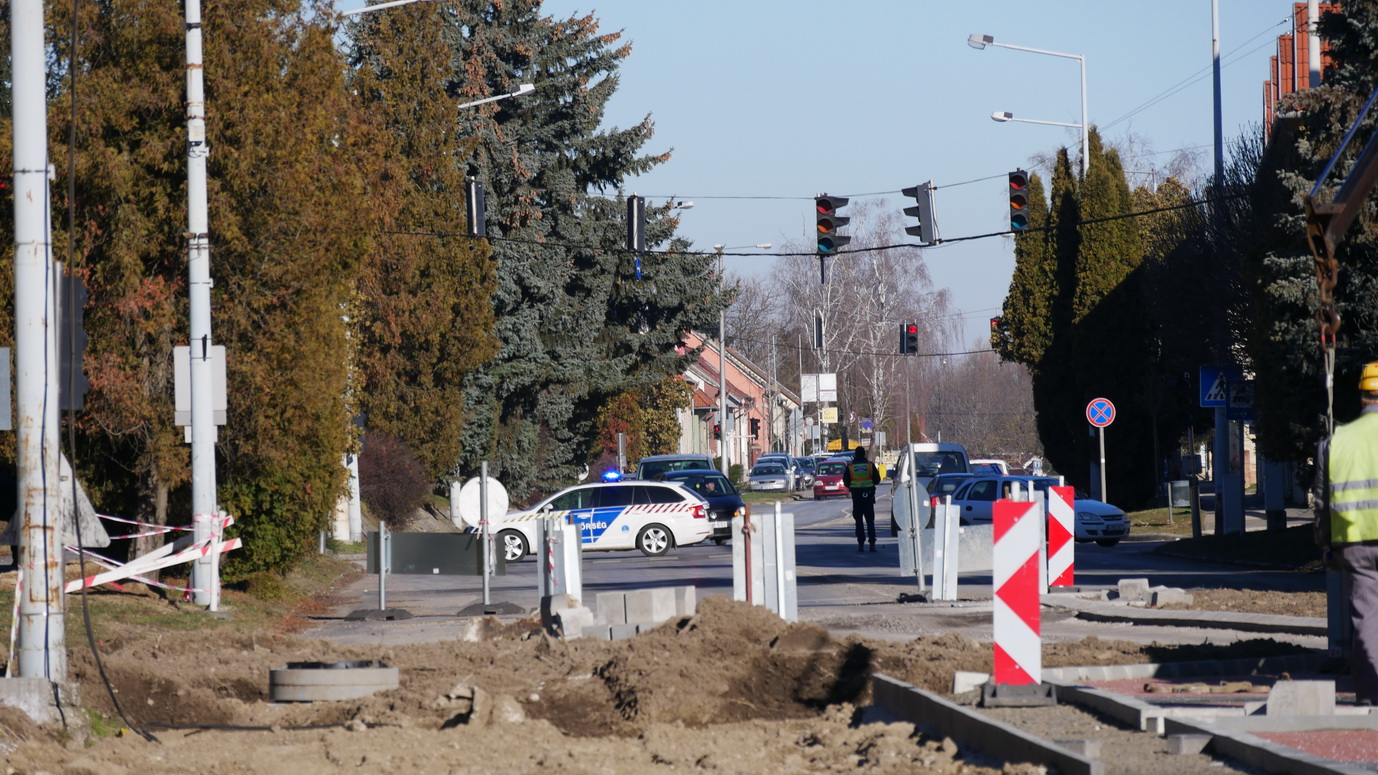 A Postánál lévő gyalogátkelőhely közlekedési jelzőlámpáit bontják el. A zárás a Kossuth Lajos utcától a Széchenyi utcáig tart.  Várhatóan délután 2 óra körül ismét be lehet hajtani a Rákóczi utcába.
