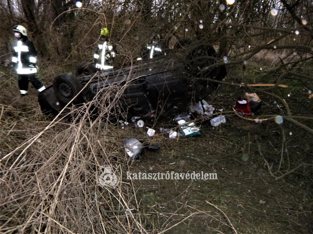 Pénteken megcsúszott a nedves úton és tetejével az árokba borult egy gépkocsi a 68-as főúton, Mesztegnyő térségében. A két utas el tudta hagyni a járművet. A kiérkező marcali hivatásos tűzoltók a kerekeire állították az autót és áramtalanították azt.