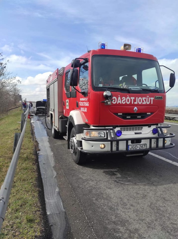 Szombat délelőtt az M7-es autópályán, Balatonszemes térségében egy gépjármű motortere égett, amelyben összesen öten utaztak. A tüzet a balatonboglári önkormányzati tűzoltók kiérkezése előtt a helyszínen tartózkodók egy porral oltóval eloltották. A tűzoltók az autó motorterét visszahűtötték, majd átvizsgálták, de további izzó gócokat már nem találtak.