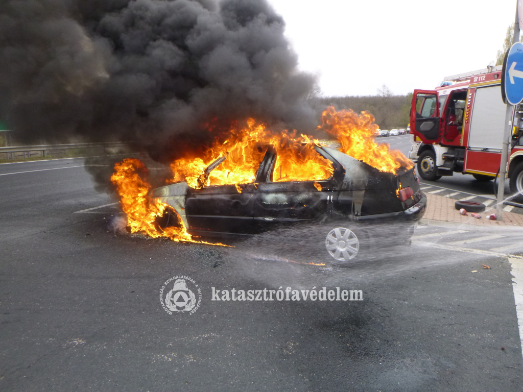 Kigyulladt és teljes terjedelmében égett egy személygépkocsi szombat délután a 68-as főút 93-as kilométerénél, Balatonújlak térségében. Az esethez a marcali hivatásos tűzoltókat riasztották, akik két vízsugárral eloltották a tüzet.