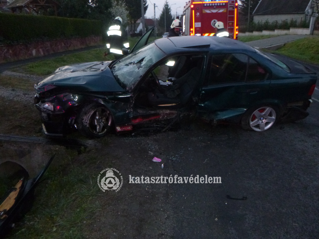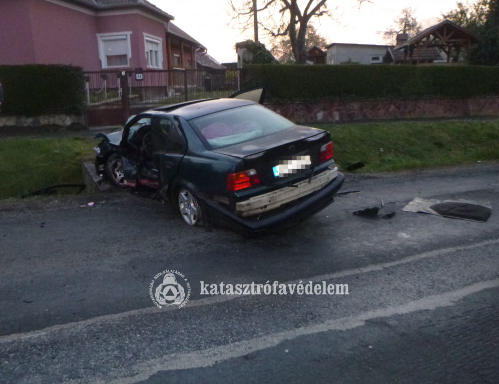 Egy személyautó árokba hajtott, hídfőnek ütközött, majd az úttestre csapódott szerda reggel Marcaliban, a Bizei utcában.