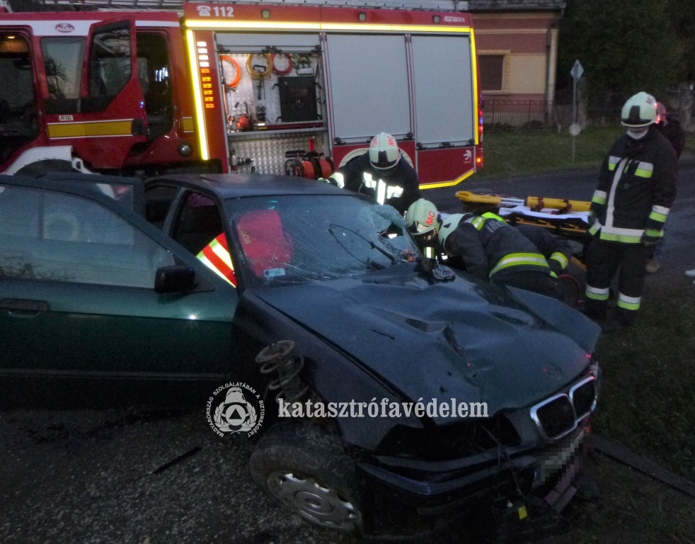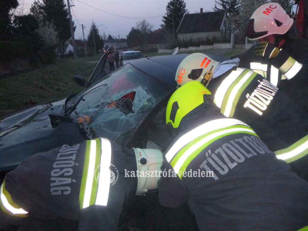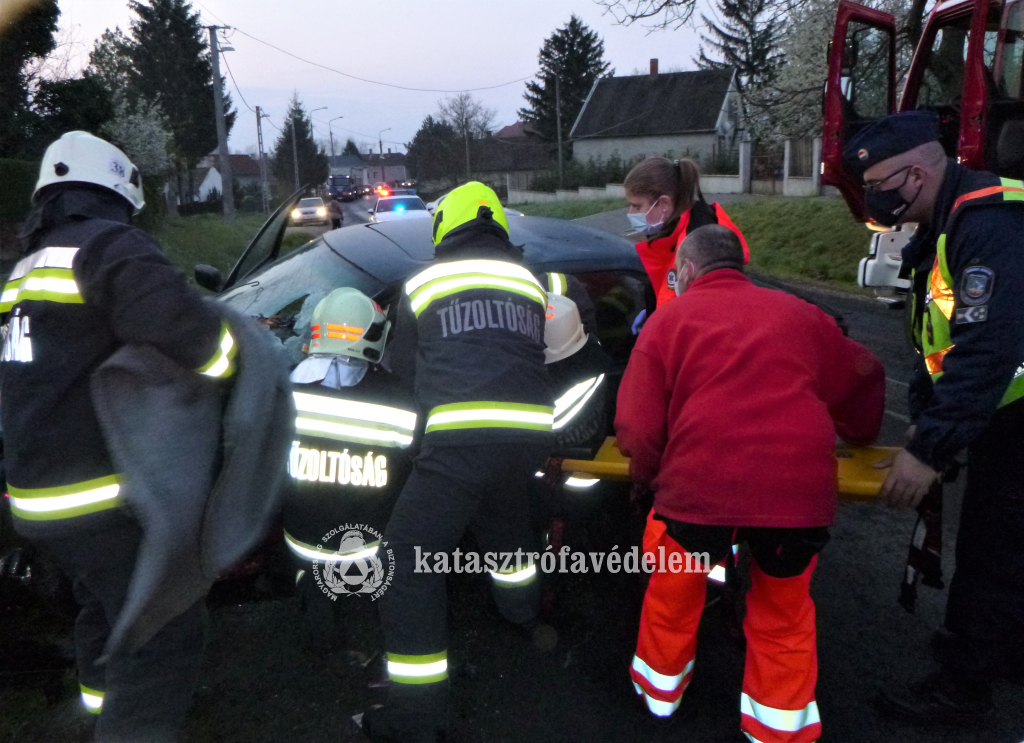 A város hivatásos tűzoltói az autó vezetőjét feszítővágóval és kéziszerszámokkal kiszabadították, áramtalanították a járművet és közreműködtek a forgalmi akadály megszüntetésében. A sofőrt a mentők kórházba szállítottak.