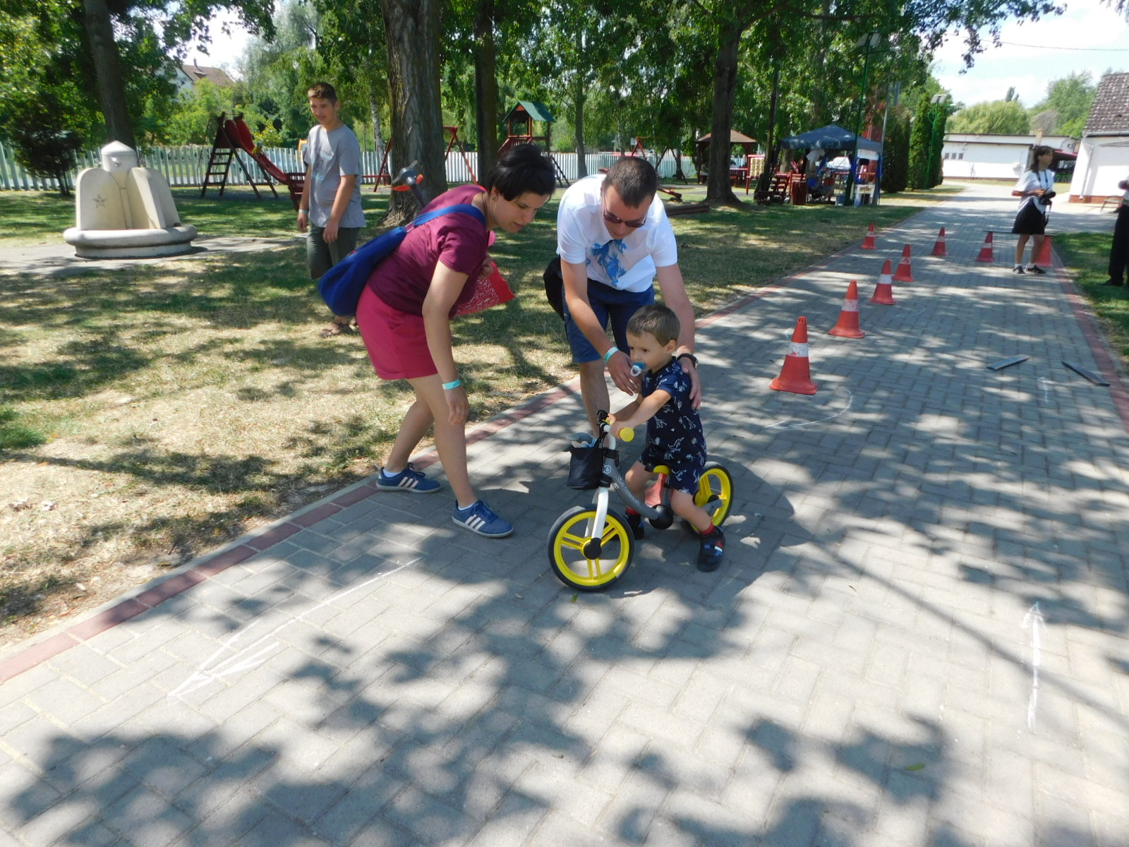 A gyermekek kerékpáros ügyességi versenyen vehettek részt, a legkisebbek pedig kocka-kirakóval játszhattak, és beülhettek a rendőrautóba is.
