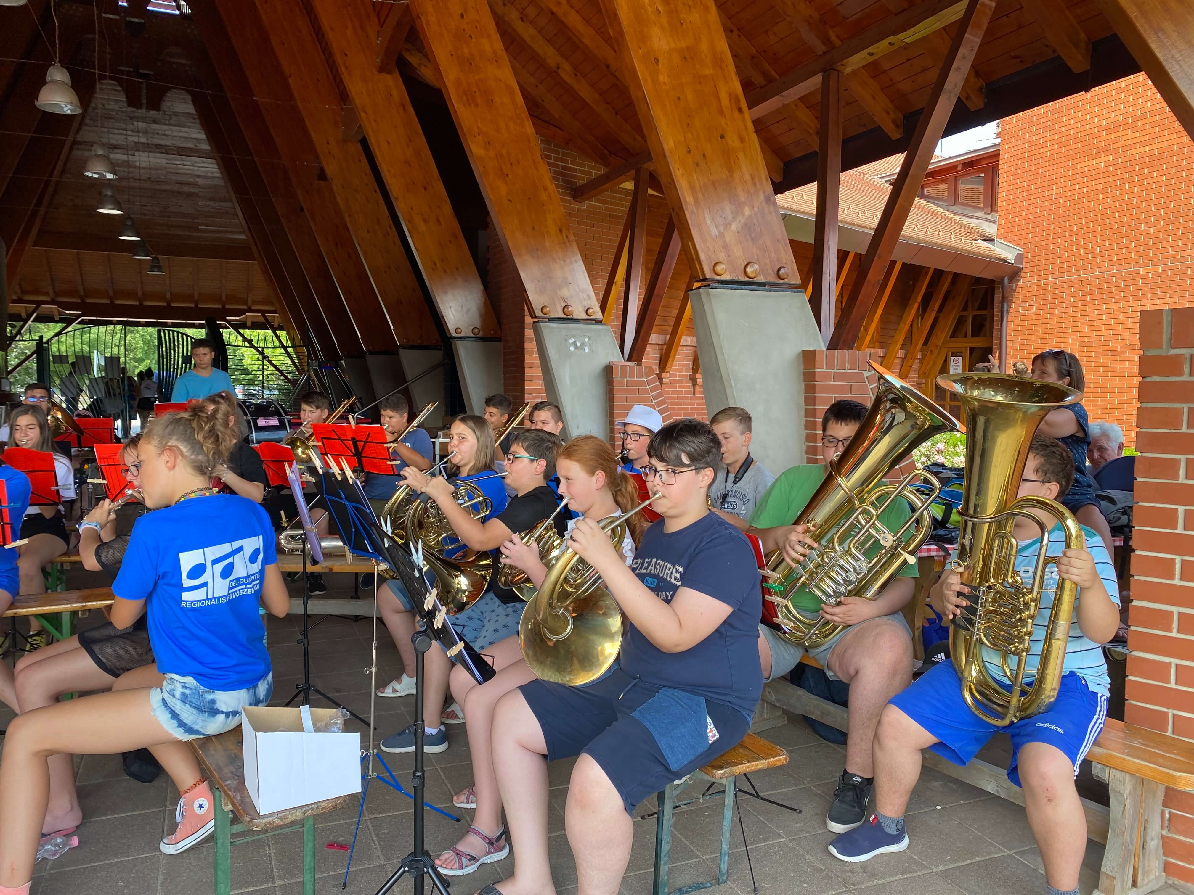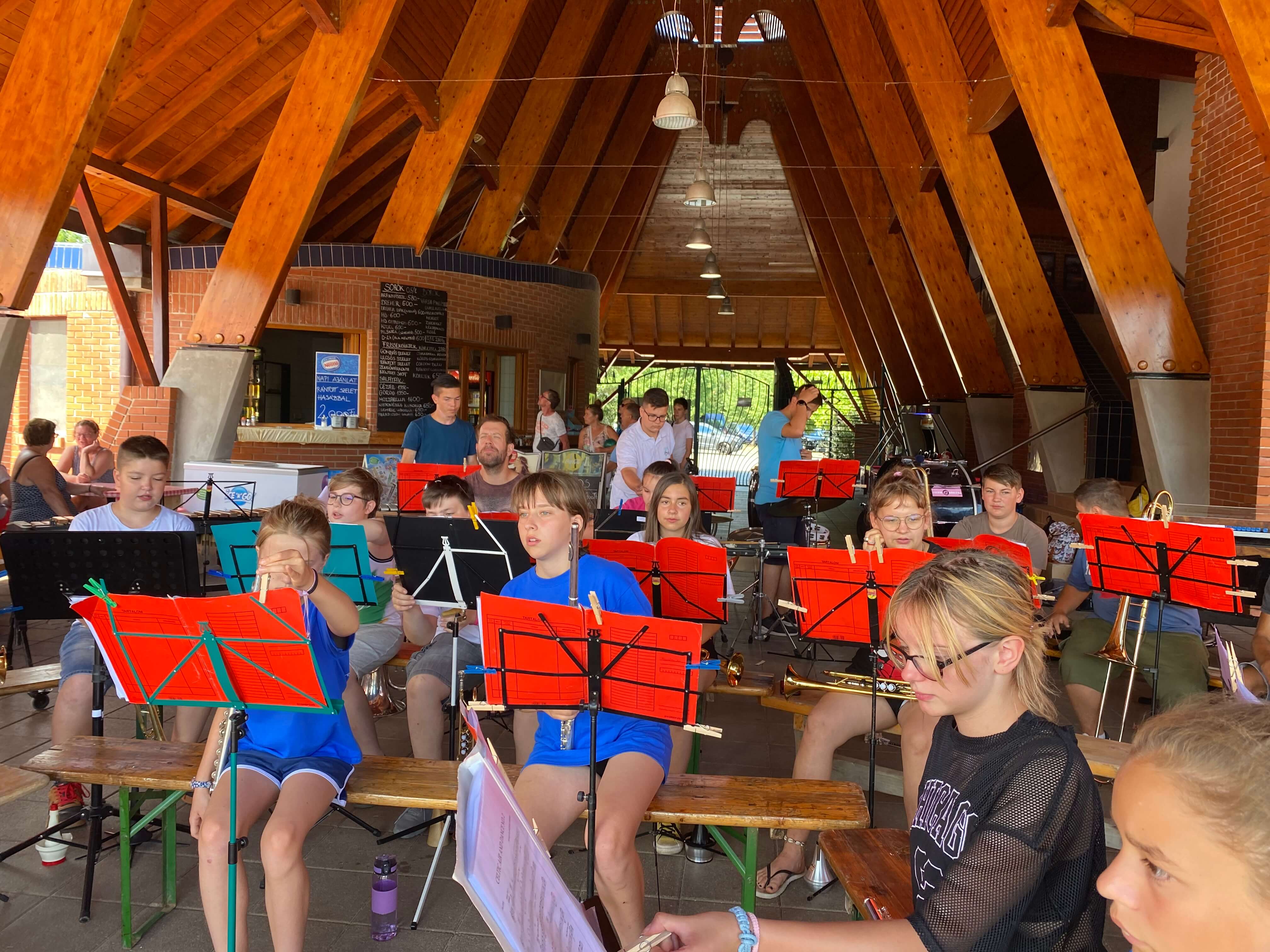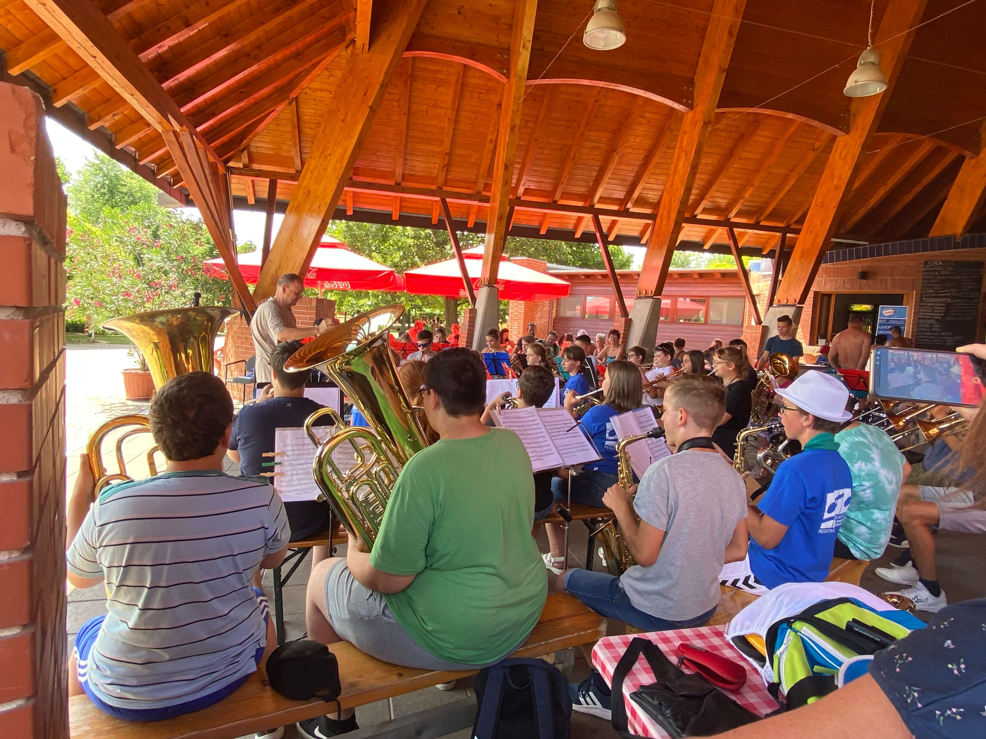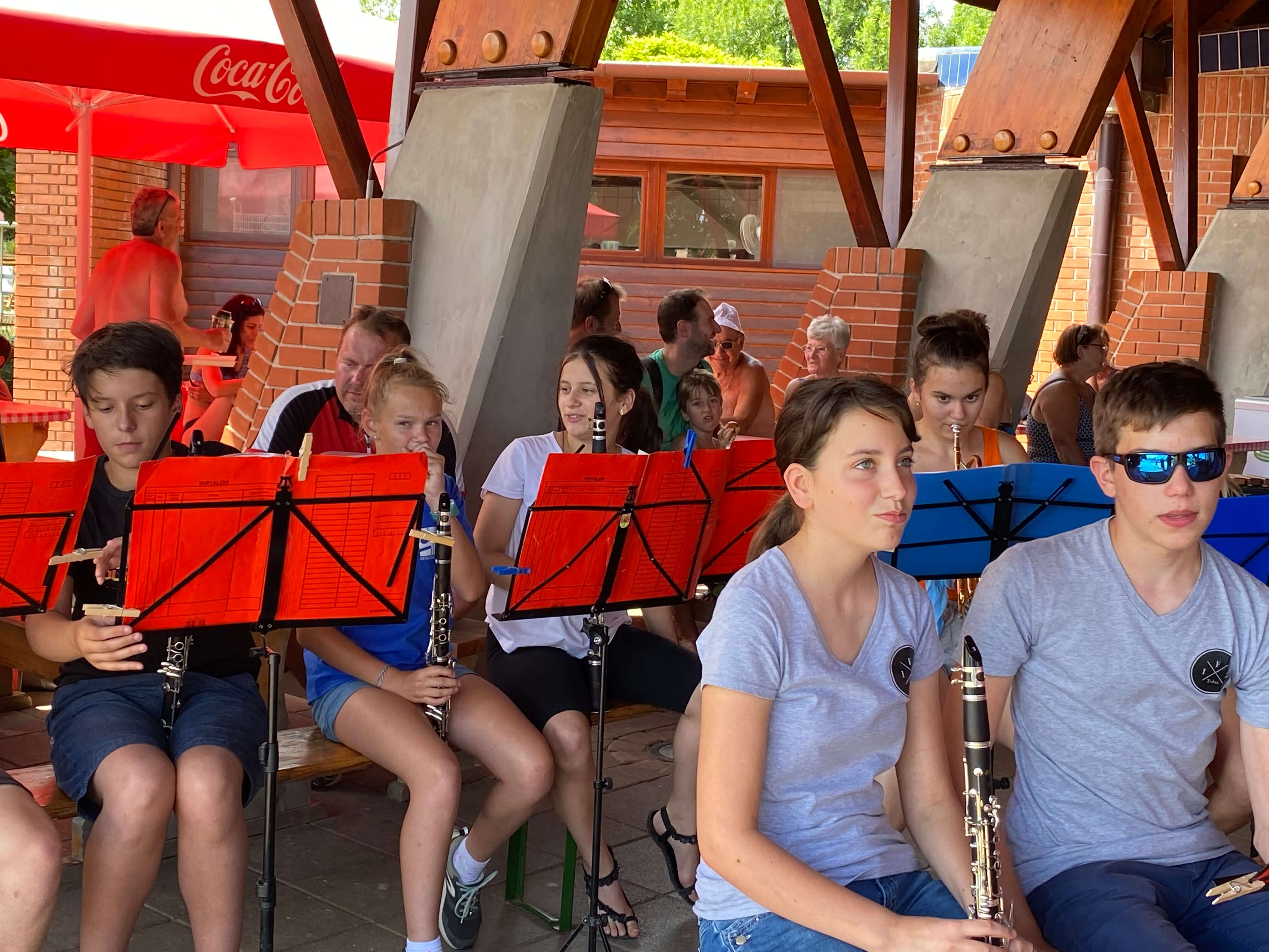 Július 15-én délután a Dél-dunántúli Regionális Mini Fúvószenekar adott koncertet a Marcali Városi Fürdő és Szabadidőközpontban.