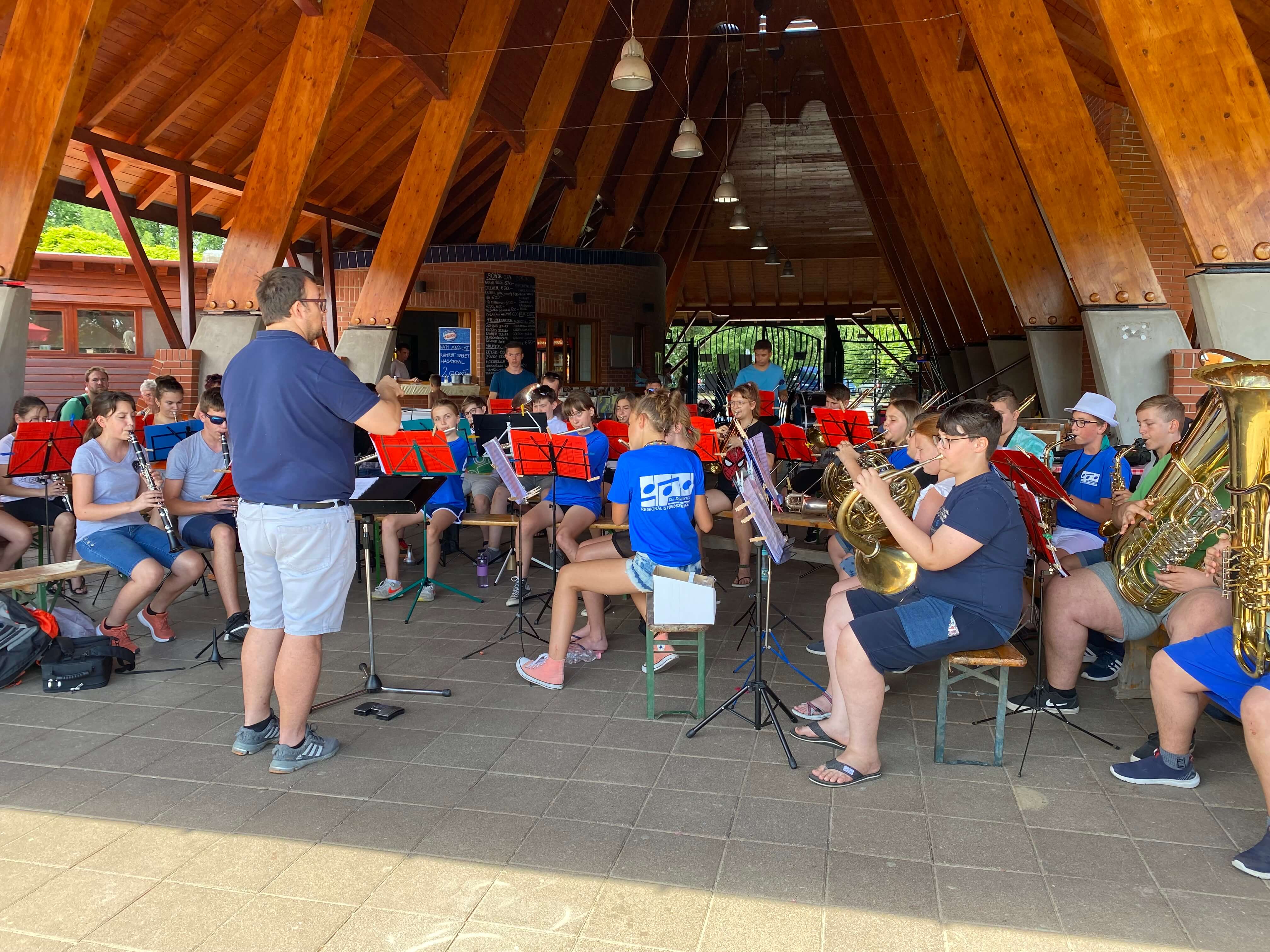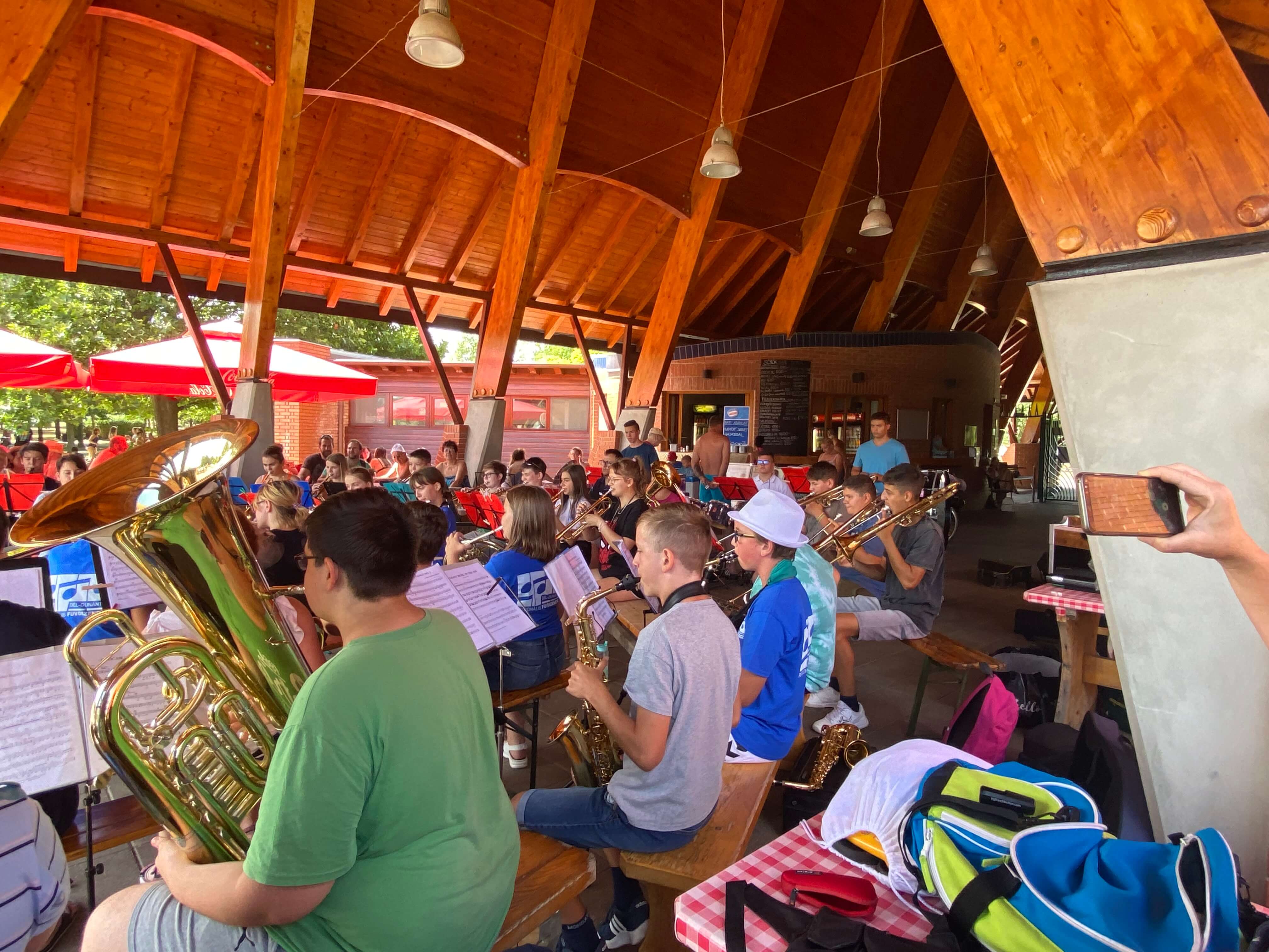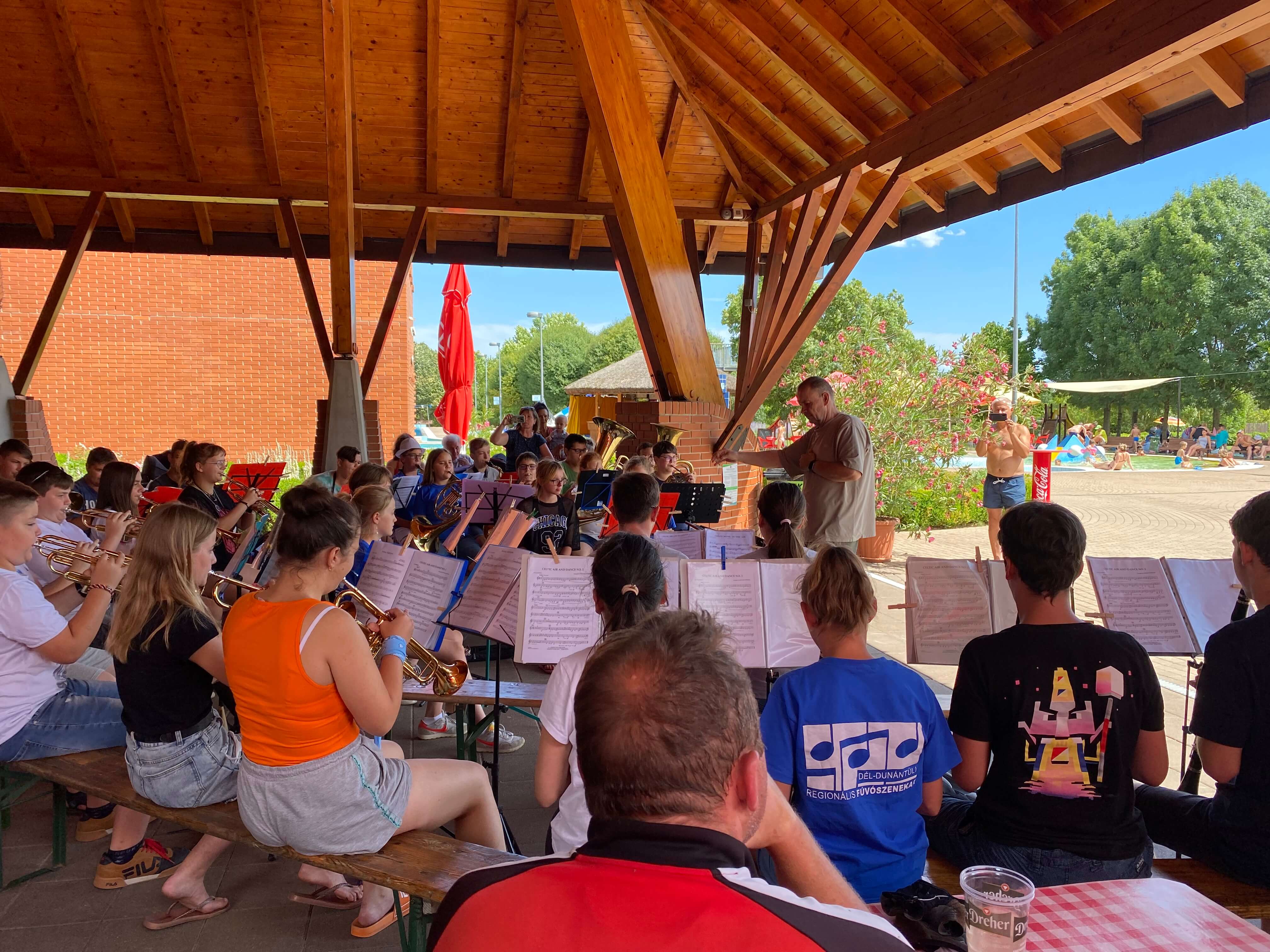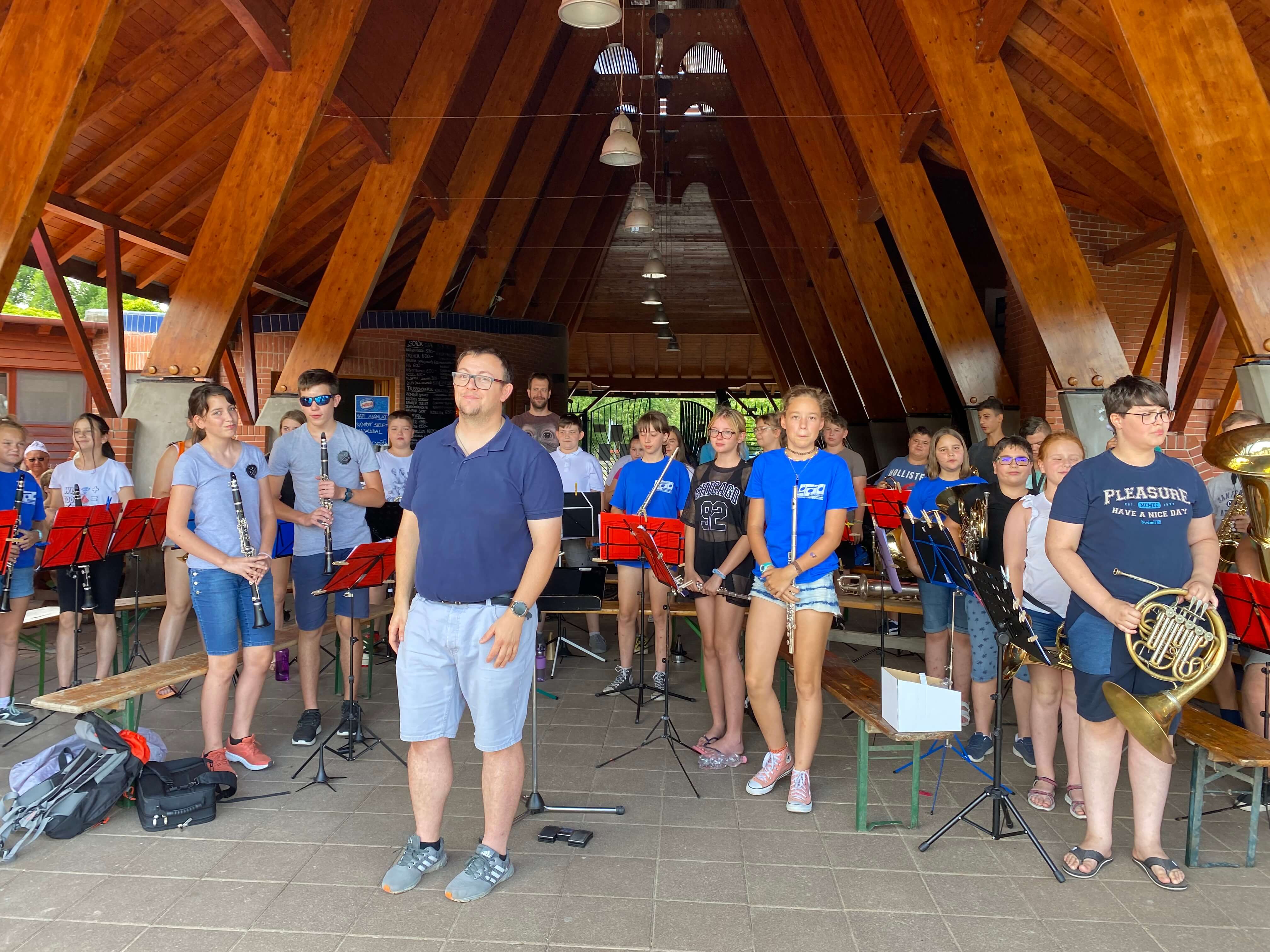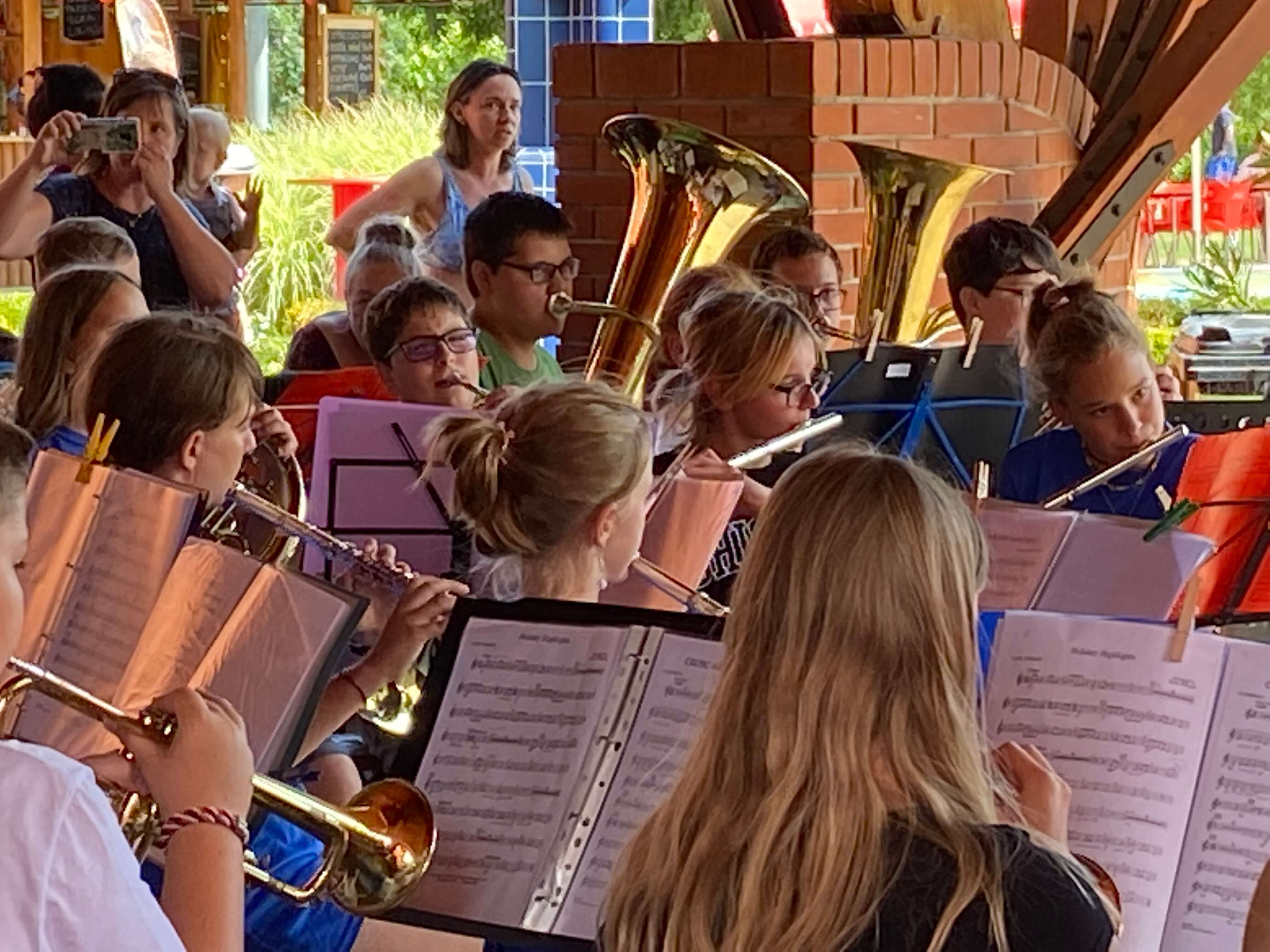 Július 15-én délután a Dél-dunántúli Regionális Mini Fúvószenekar adott koncertet a Marcali Városi Fürdő és Szabadidőközpontban.