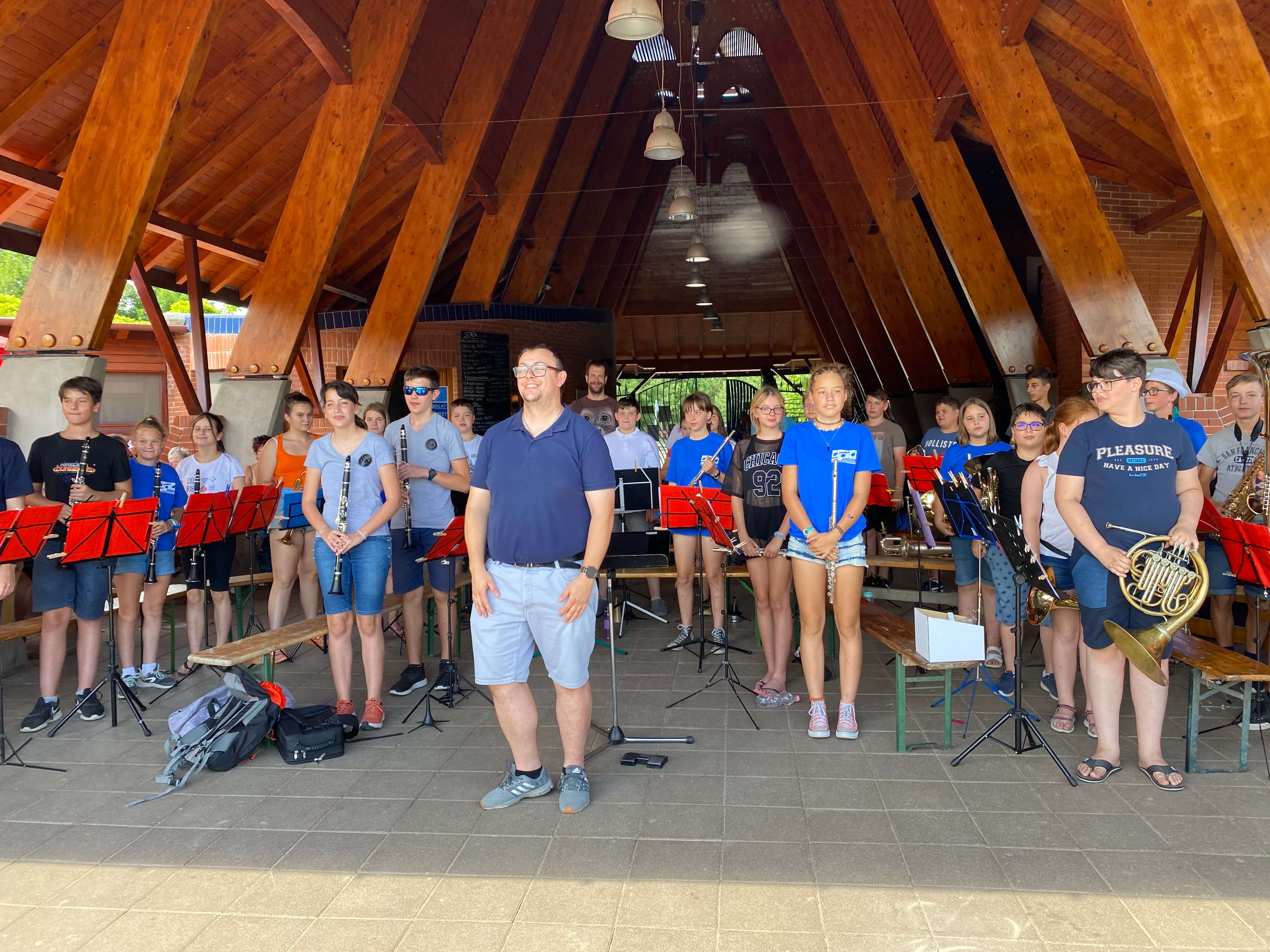 Július 15-én délután a Dél-dunántúli Regionális Mini Fúvószenekar adott koncertet a Marcali Városi Fürdő és Szabadidőközpontban.