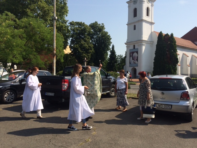 Kiss Iván c. prépost-plébános betegsége miatt a szertartást ezúttal Galambos Ferenc mesztegnyői plébános tartotta, aki a hívekkel együtt imádkozott az úton lévőkért és a balesetmentes közlekedésért.
