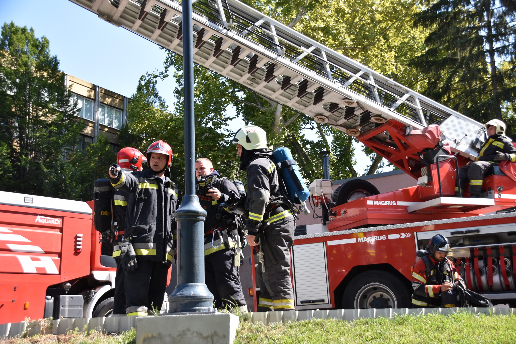 A kaposvári színházban gyakorlatoztak a tűzoltók