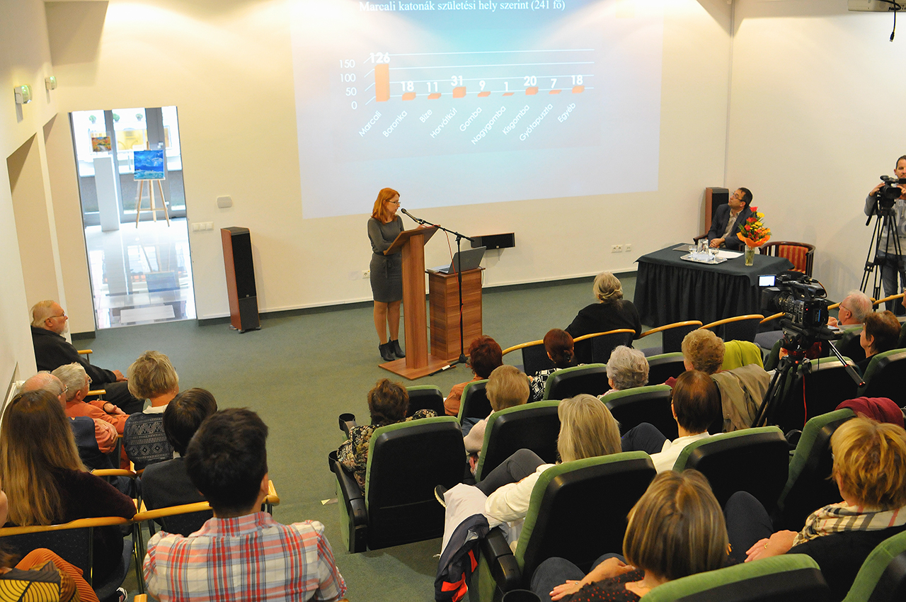 A Marcalihoz és településrészeihez kötődő (itt született vagy itt élt) katonák életútjait több éves kutatással igyekezett feltárni a két szakember. Eredményeikről prezentációjukban számoltak be. Elsőként Németh Ildikó a háborús veszteség településrészekre vetített arányait, valamint szociológiai vizsgálatainak eredményeit mutatta be. Azt követően Huszár Mihály több, az első világháborúban harcoló személy egyedi sorsát tárta a hallgatóság elé.