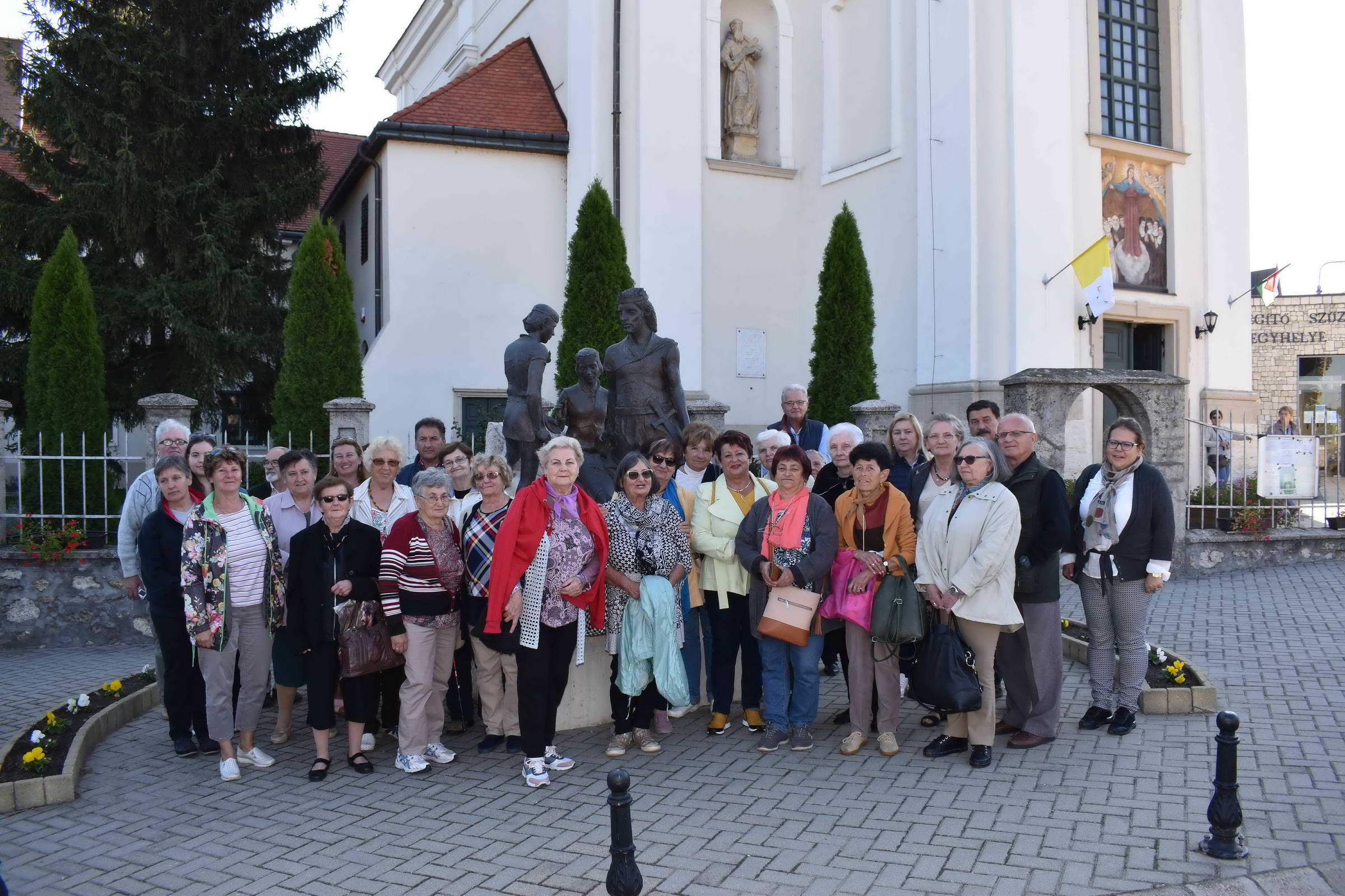 Az autóbuszos utazás első állomásaBodajk volt, ahol a Mindenkor Segítő Szűz Mária Kegyhelyen egy helyi idegenvezető-nő adott tájékoztatást a település történetéről. A csoport résztvevői megtudták, hogy már Szent István király is látogattaa kegyhelyet, majd a török hódoltság után, az újkori felvirágoztatása, a településen 1695-ben megjelenő kapucinus szerzeteseknek köszönhető. A koldulórendi barátok vélhetően a középkori alapokra építettek kápolnát, amelybe a környékbeli falvakba betelepített német ajkú lakosság körében nagy tiszteletnek örvendő Segítő Szűz Mária kegyképét helyezték el. Ez az 1728 és 1742 között felépült barokk templom látható ma. A plébániaépület 1755-ben épült kapucinus rendházként. A kolostor kertjéből leválasztott szépen felújított zarándokudvart, benne a hűs vizű forrással, valamint a szomszédos Kálvária-hegyre vezető keresztutat szintén a 18. század közepén alakították ki.