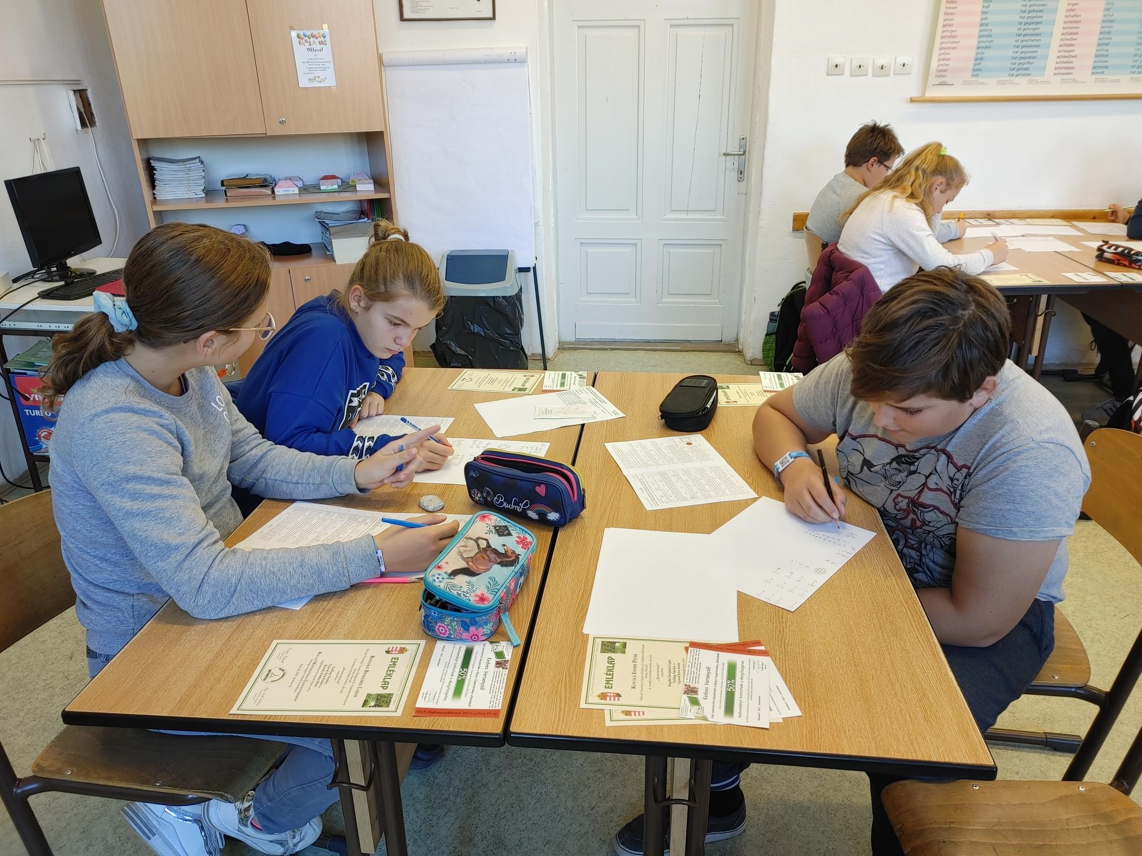 A korábbi évektől eltérően, minden csapat a saját iskolájában oldotta meg a feladatlapot. Az idei tanévben iskolánkból 11 tanulócsoport nevezett, 3 alsós és 8 felsős, hogy összemérhessék tudásukat.