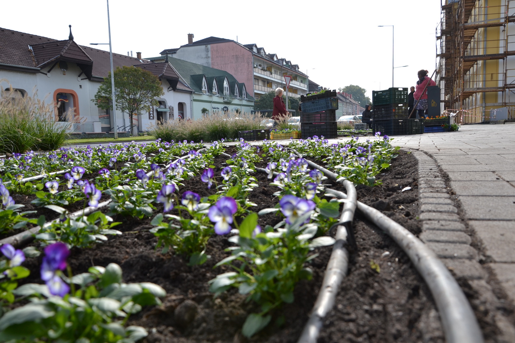 Virágokat ültetnek a Rákóczi utcában