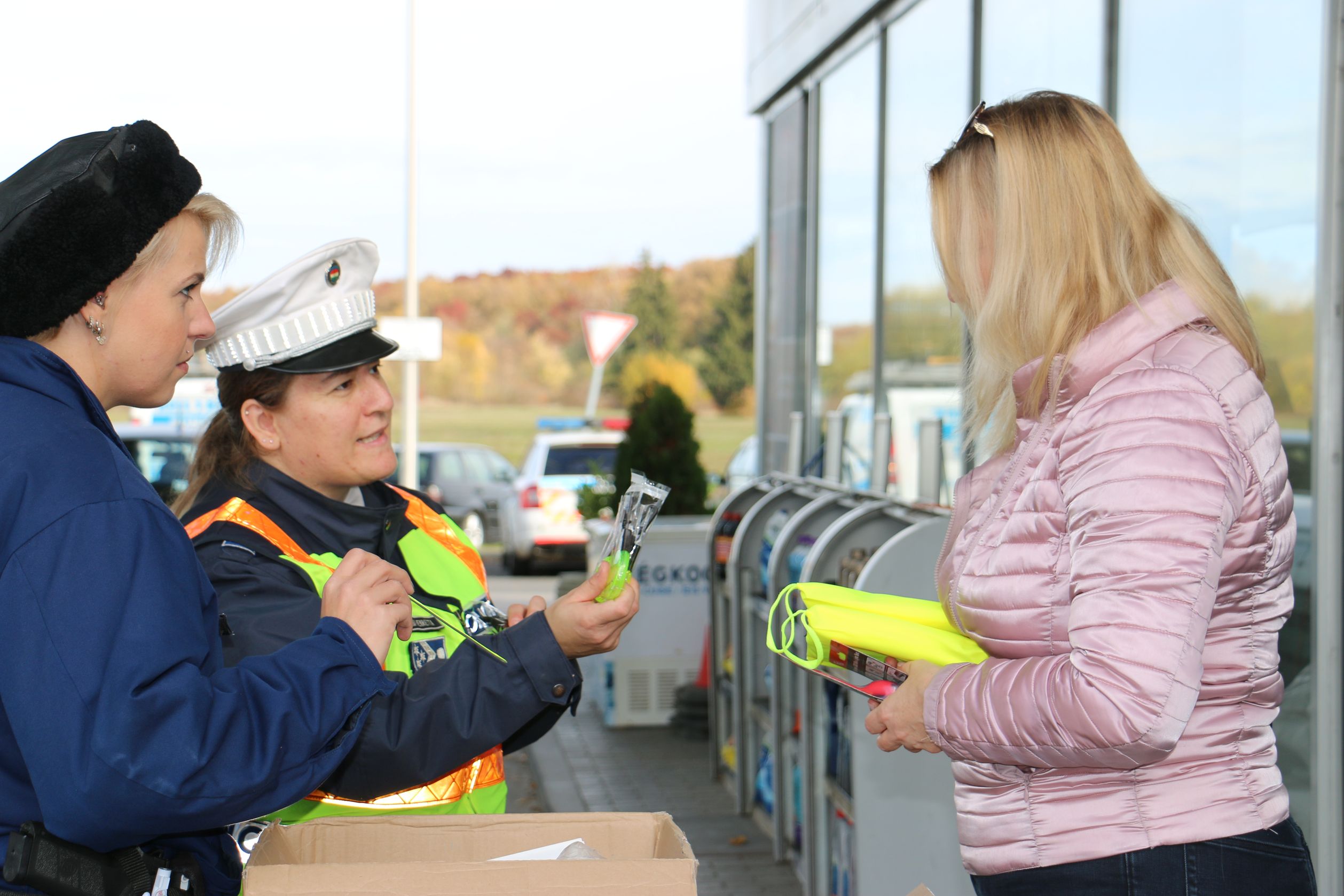 Az egyenruhások láthatóságot elősegítő közbiztonsági kiegészítőket, fényvisszaverő mellényeket, karpántokat, kerékpáros villogókat és matricákat, valamint világító cipőfűzőt adtak ajándékba az érdeklődőknek. A szakemberek felhívták a figyelmet a biztonságos közlekedés és a szabálykövető magatartás fontosságára, valamint hangsúlyozták, hogy a balesetek megelőzése érdekében fontos a láthatóság és az észlelhetőség fokozása.