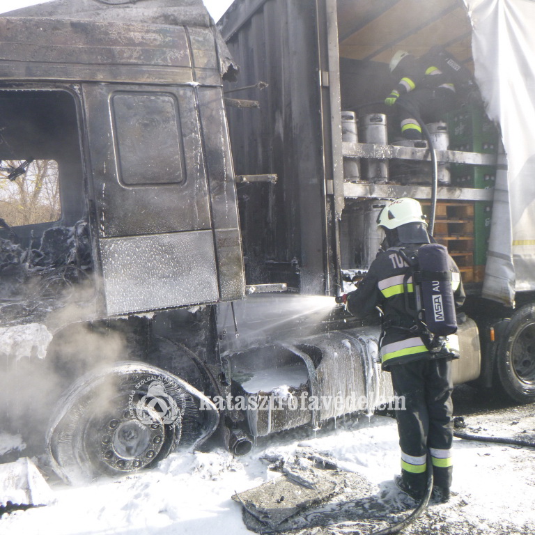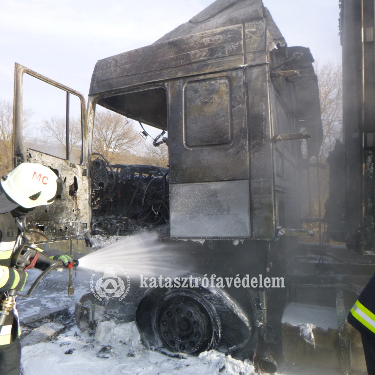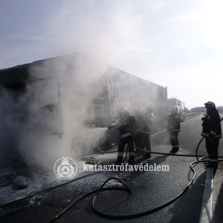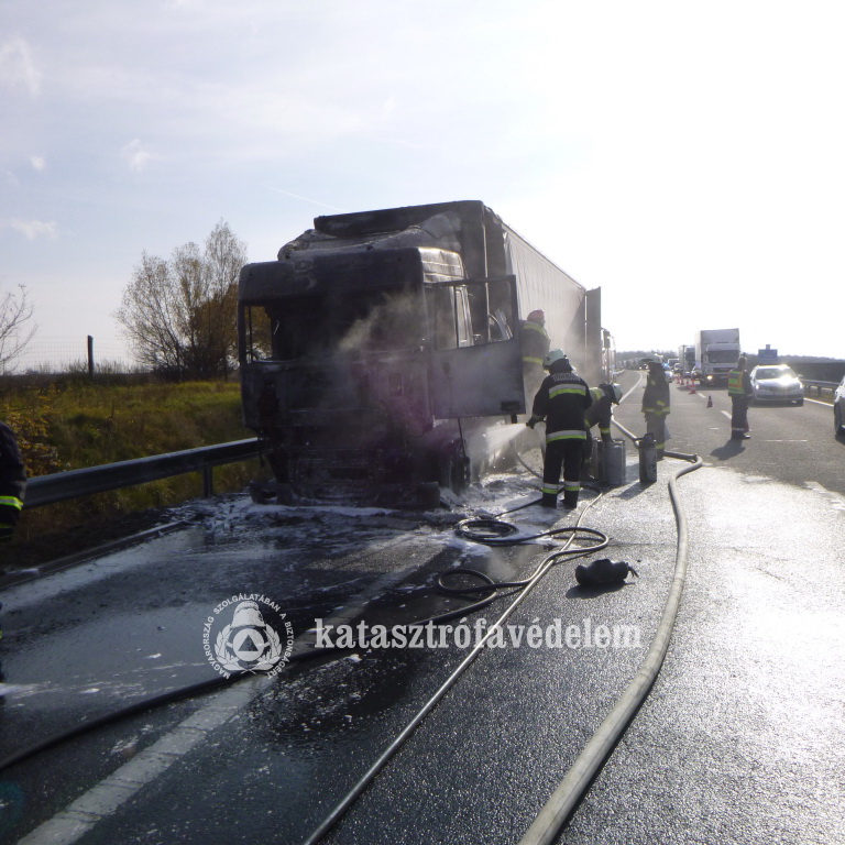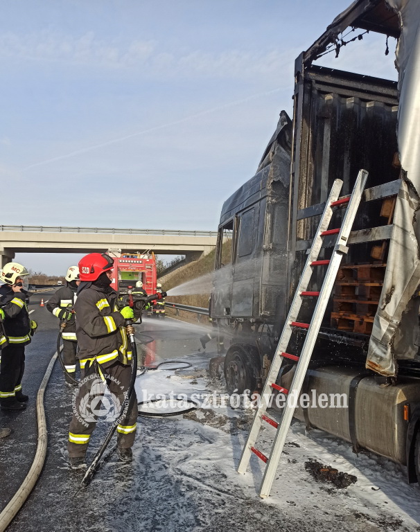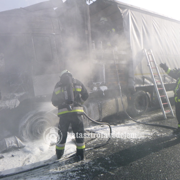 Kedd délelőtt érkezett a jelzés, miszerint teljes terjedelmében ég egy kamion fülkéje és rakományának egy része az M7-es autópálya Budapest felé vezető oldalán, Sávoly térségében.