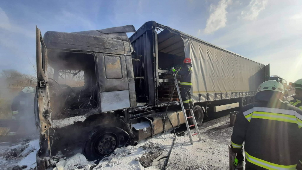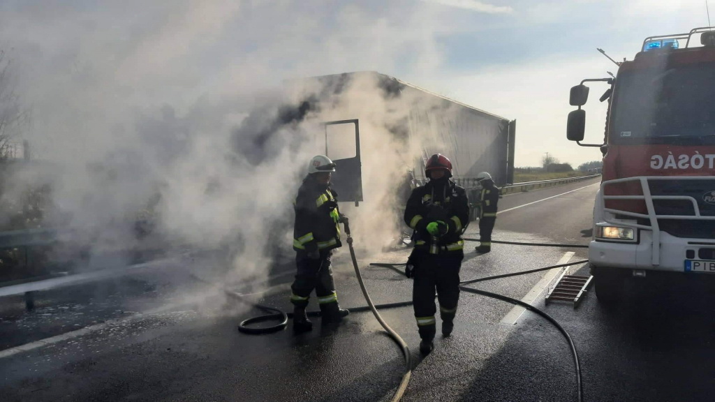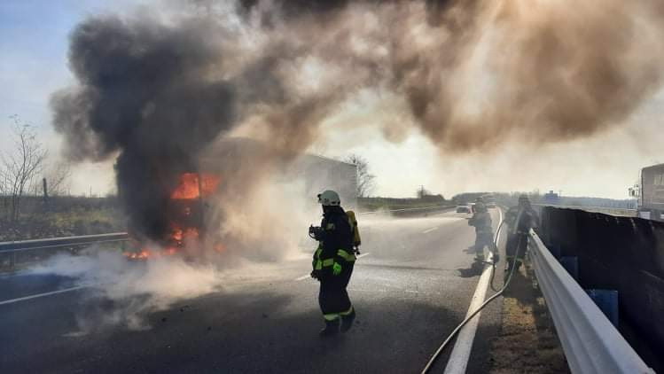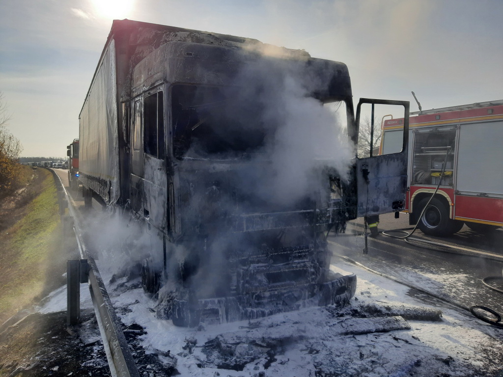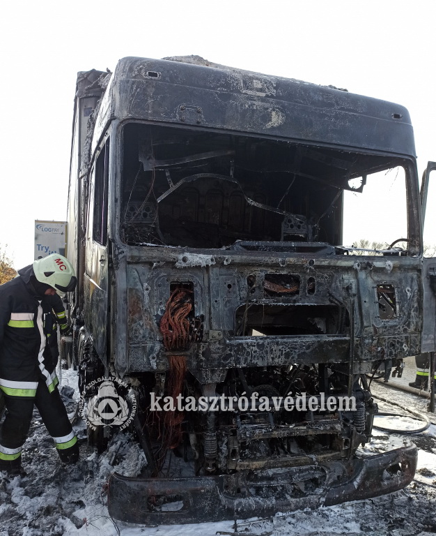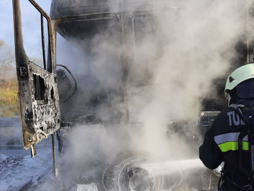Lángoló kamion az autópályán